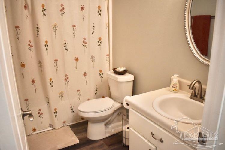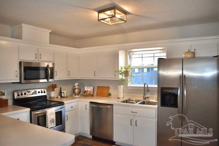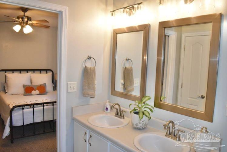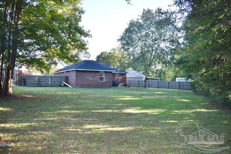 Beautiful home in Pace! Convenient to schools & shopping. Wood-look vinyl plank flooring in main living areas with carpet in bedrooms. Living room with cathedral ceiling, ceiling fan & plant ledge. Separate dining area plus breakfast bar. Fully equipped kitchen with pantry. Split floor plan. Main suite features a ceiling fan, oversized closet, barn door to bathroom, double vanity & garden tub. Inside laundry. Ceiling fans in all bedrooms. One car garage. Fenced backyard with open patio. Dogs considered with owner approval. No smokers.