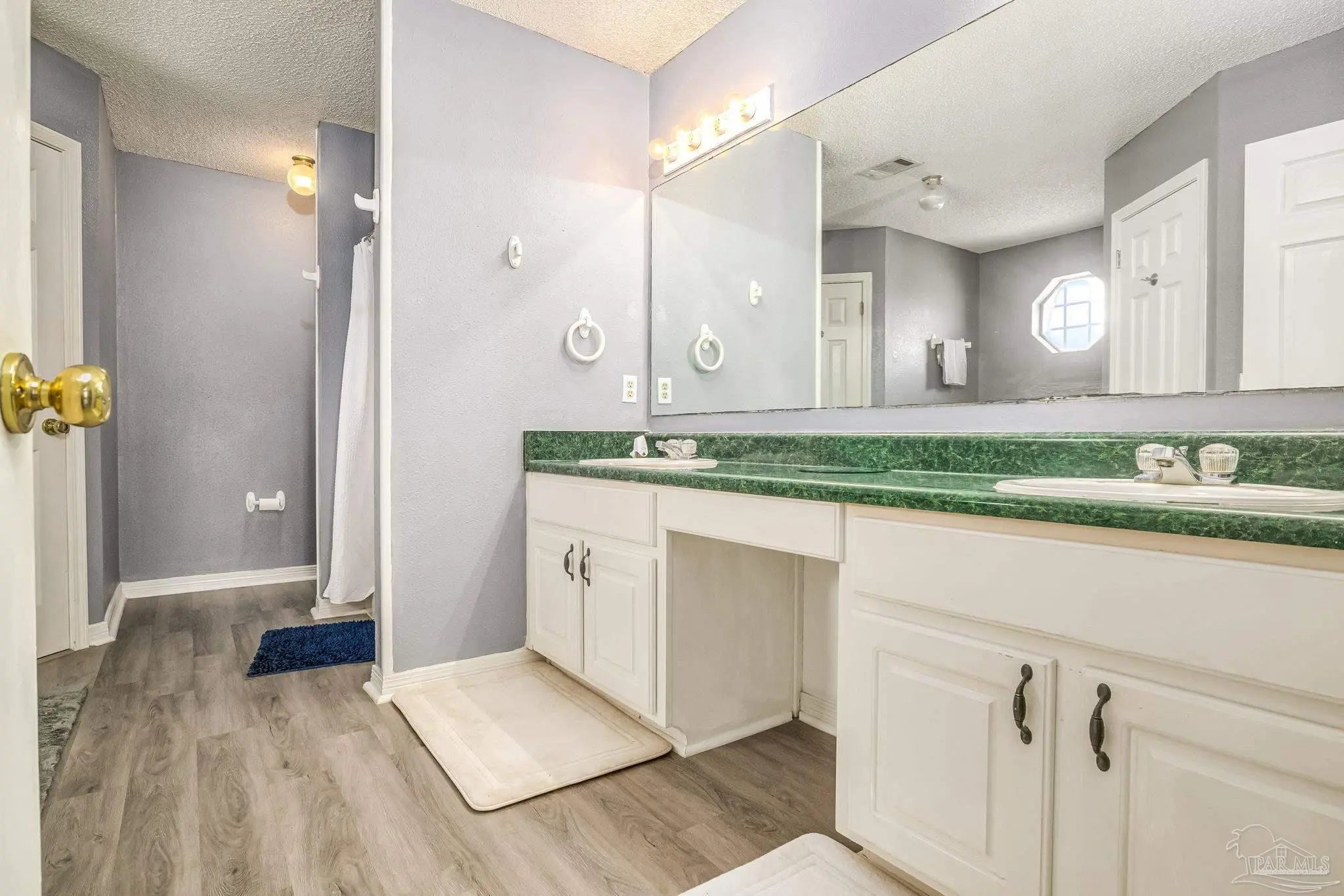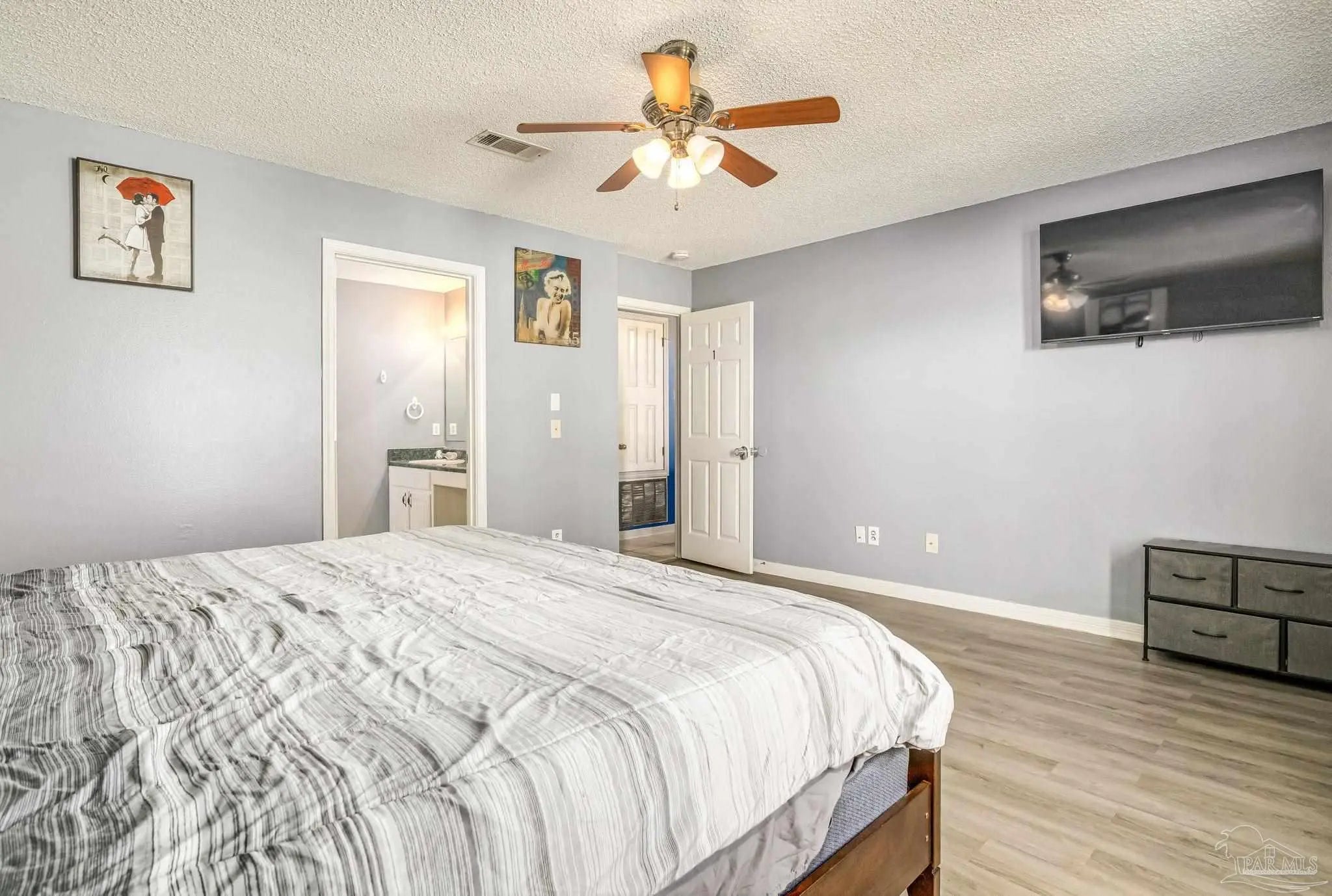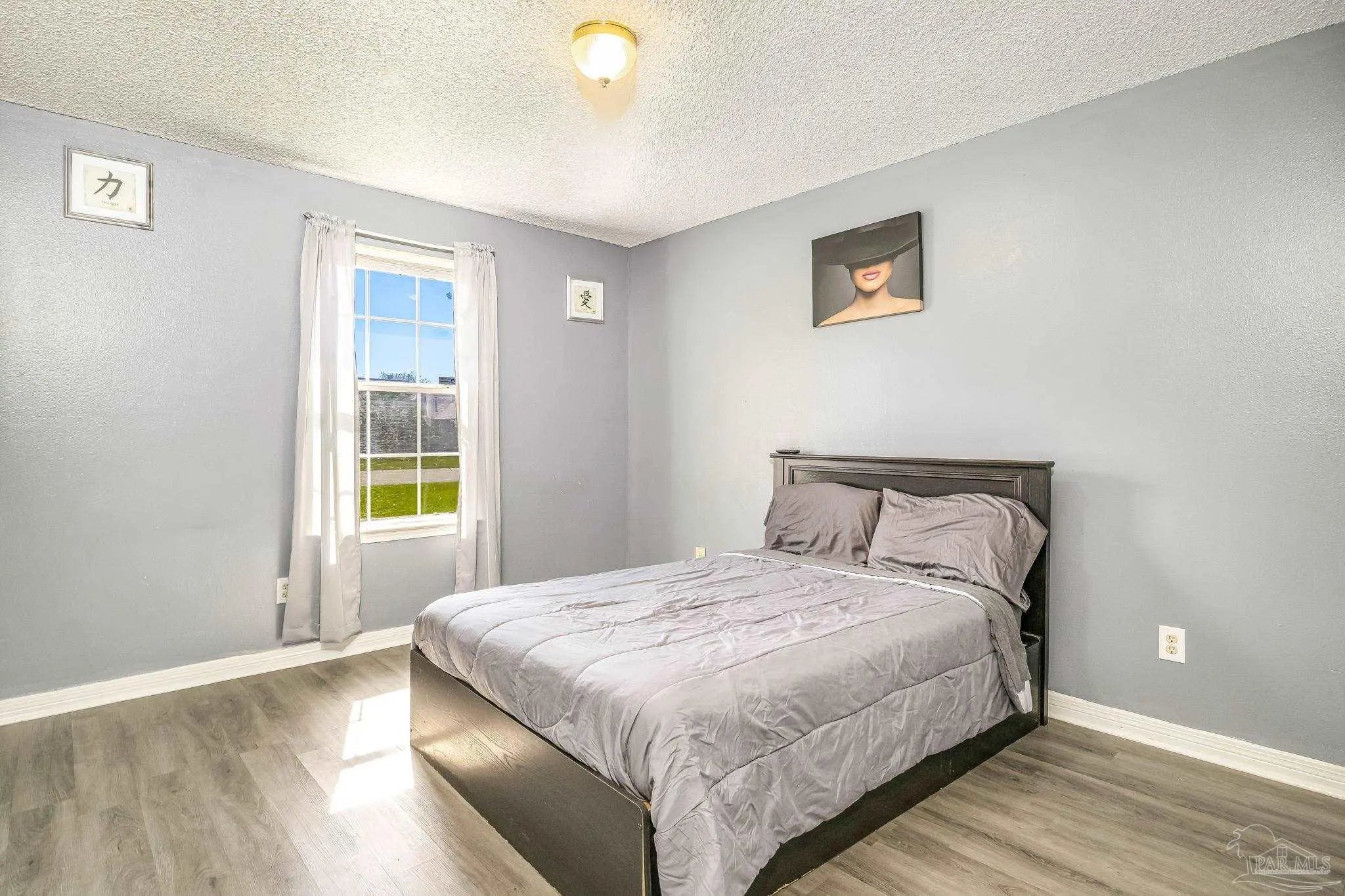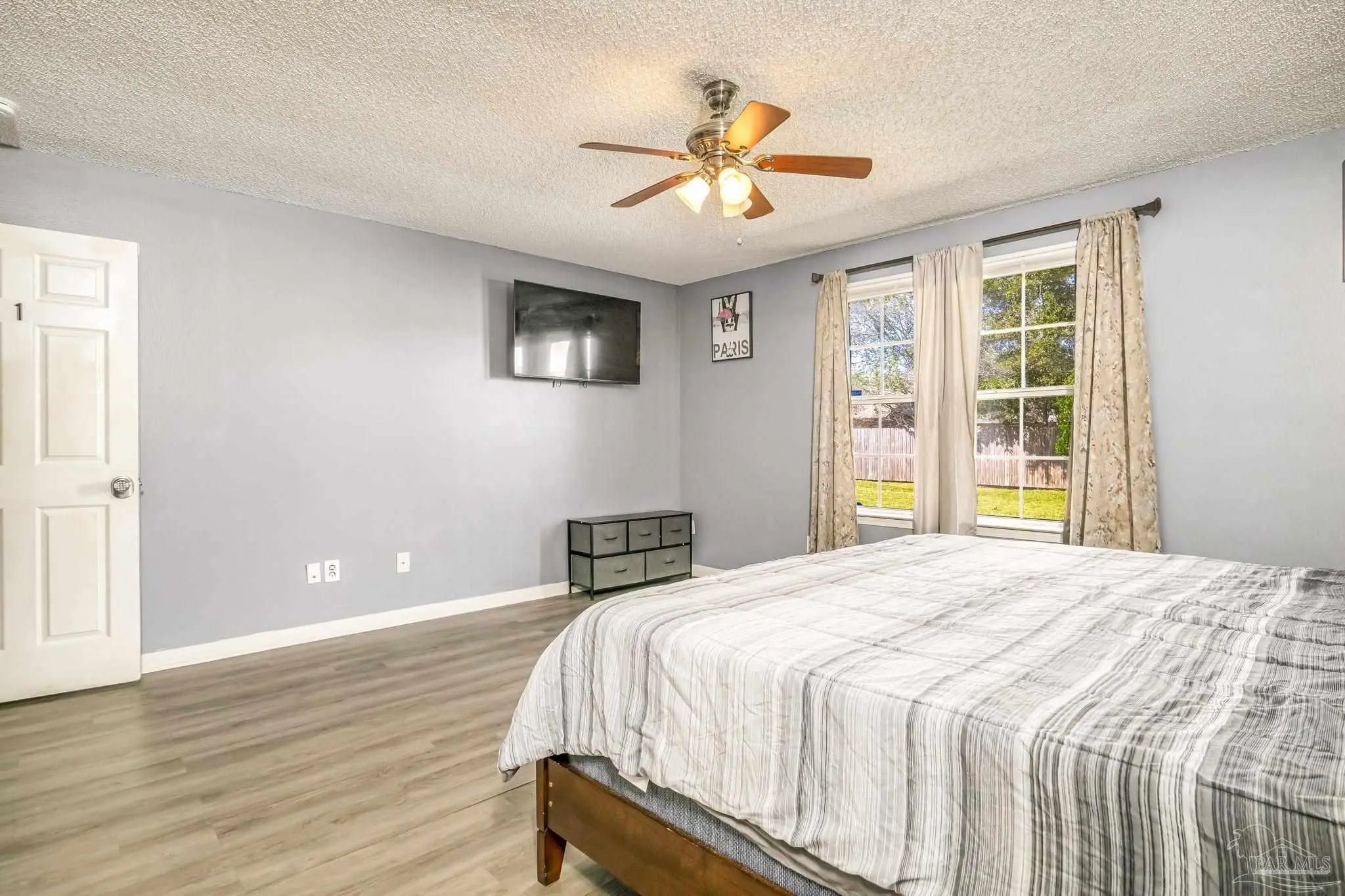 Welcome to this spacious 4 bdrm,3 bath home with 2076 sqft of comfortable living space. This thoughtfully designed floor plan includes both a master suite and a mother-in-law suite perfect for guests, extended family or a private home office. Enjoy relaxing on the covered front porch or entertaining in the open living area with French Doors that lead to the backyard. The home boasts durable plank and tile flooring, providing both style and easy maintenance throughout. Energy efficiency is a highlight with solar panels installed approximately 1 year ago, keeping the seller's average monthly power bill around $50. Additional features include a 2-car garage, storage shed, and security system for added peace of mind. This home perfectly blends comfort, function, and energy savings all in one package. Don't miss your chance to call this one home!