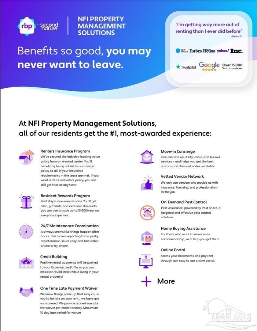 Well maintained 3 bedroom 2 bath home available for rent in Pensacola! This home is in a desirable location near UWF, restaurants, shopping, health care, and I-10. Walking up to the house, you will be greeted by the manicured front yard and covered front porch. There is also a long driveway, a car port, and a one car garage giving you plenty of covered parking. Walking through the front door, you will notice the large living & dining area. The home also has a fresh coat of paint throughout! The space leads into a second family room with exposed brick. The family room is the perfect spot for a big screen TV & cheering on your favorite football team this fall. Through the sliding glass door in the family room is access to your screened in back porch with brand new tile flooring. The kitchen comes furnished with a stove, oven, fridge, and dishwasher. The kitchen has a window overlooking the backyard, lots of cabinets for storage, and countertops that give the kitchen a one of a kind look. Large interior laundry room with washer and dryer hook ups. The master bedroom has bamboo flooring and a beautiful barn door that leads you to the renovated master bath. On the opposite side of the living room, you will find 2 additional bedrooms and a guest bathroom. Large & fully fenced in backyard features a shed and beautiful landscaping making it feel like your own private oasis. Tenant responsible for all utilities. Pet friendly up to 2 small pets. Weight limit 40 lbs. each. No restricted breeds. Prior approval & pet fee required on move in date. Ask us about our Military discount! All NFI Property Management Solutions residents are enrolled in the Resident Benefits Package (RBP) for an additional $40/month which includes liability insurance, move-in concierge service making utility connection and home service setup a breeze during your move-in, our best-in-class resident rewards program.