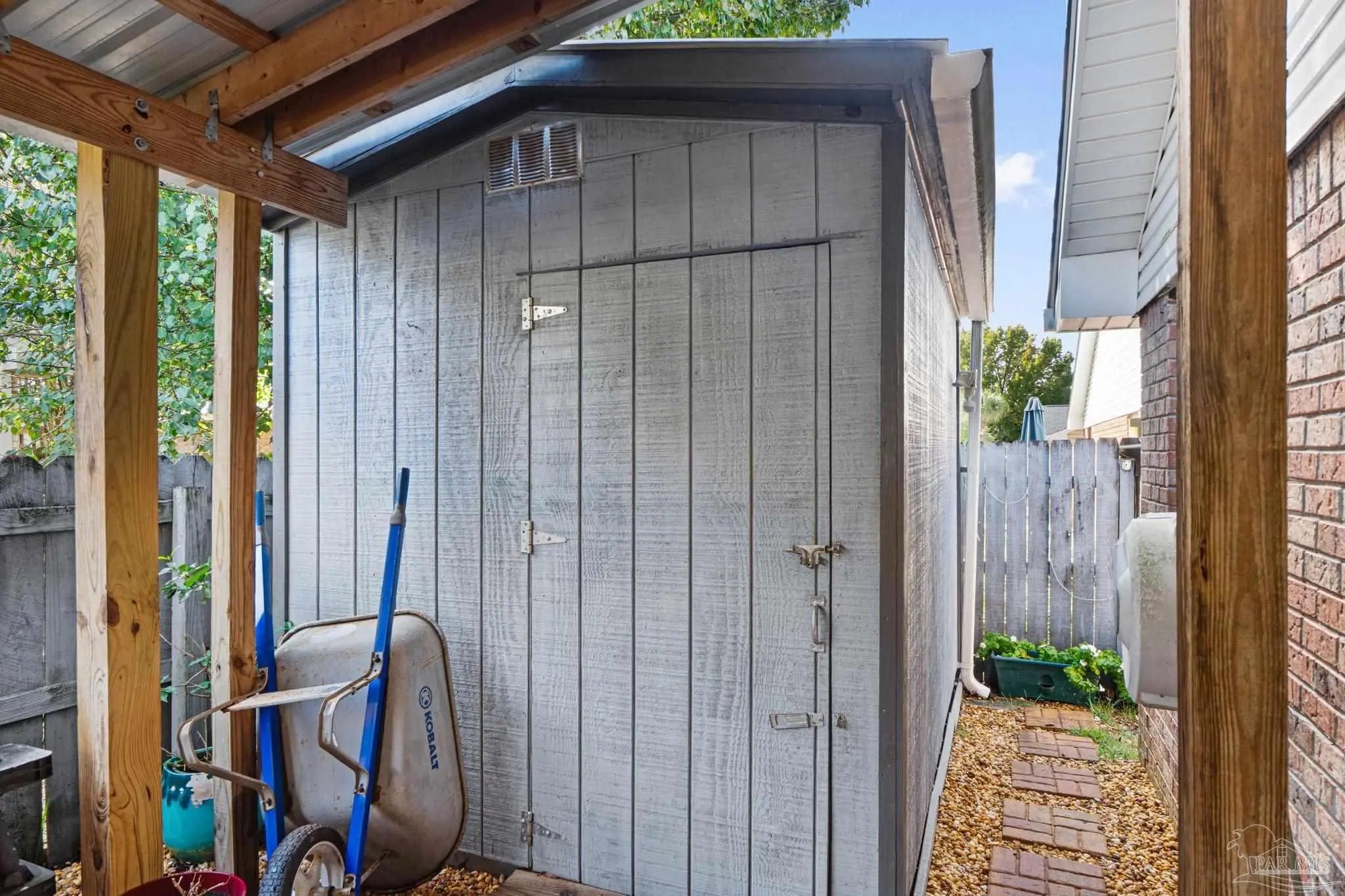 Welcome to this stunning all-brick home with over 2,000 square feet of living space. Beautiful wood laminate flooring runs through the main living areas, while the master bedroom is enhanced with durable Pergo flooring. The master bath is a true retreat with a large tile walk-in shower and elegant granite countertops. Recent updates ensure peace of mind, including a new roof (2021), Hurricane Impact Windows and Doors (installed in 2020, a $38,000 value), and an HVAC system replaced in 2019. Outdoors, enjoy a large covered deck for relaxing or hosting guests, along with a storage building for all your outdoor needs. This home offers the perfect blend of modern comfort, practical upgrades, and a coastal lifestyle that's hard to beat.
