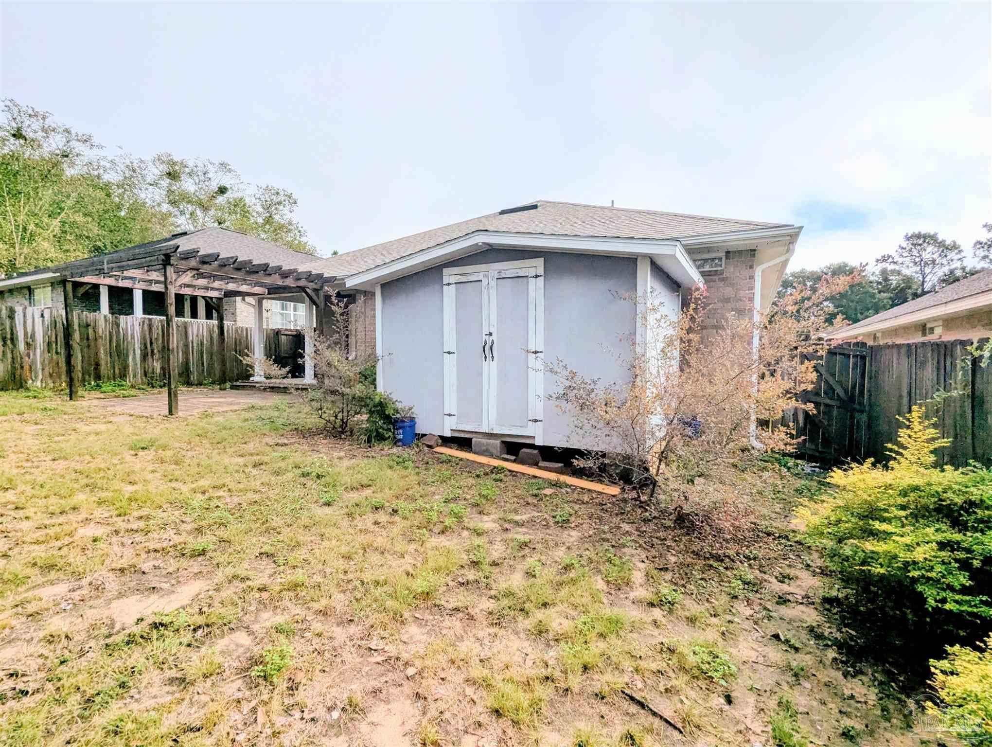 5760 Jade Cir is a great 3 bedroom, 2 bath home located in the popular Bon View subdivision - minutes from I-10, Pace and Downtown Milton! This home is 1400+ square feet featuring open concept living, high ceilings, nice sized kitchen with hop-up bar overlooking a great room and the dining area. Large master bedroom suite with trey ceiling and fan, walk-in and linen closets and double vanity in bathroom. In the kitchen, there are newer stainless steel appliances to go along with plenty of upper and lower cabinets and separate pantry for good storage. The dining area is bright and light with a window and double French door opening leading to a covered porch, wood arbor with pavers and privacy fenced grassy and landscaped backyard! Additionally, the backyard includes a gently used storage building for your lawn and BBQ equipment, and this home also features a 2 car garage, inside laundry/utility room and installed security equipment. So make your appointment today to see this home that is conveniently located off of Avalon BLVD ! This property requires participation in the MSPM Resident Benefit Package for an additional monthly fee. Additional information on this program can be found upon submission of application.