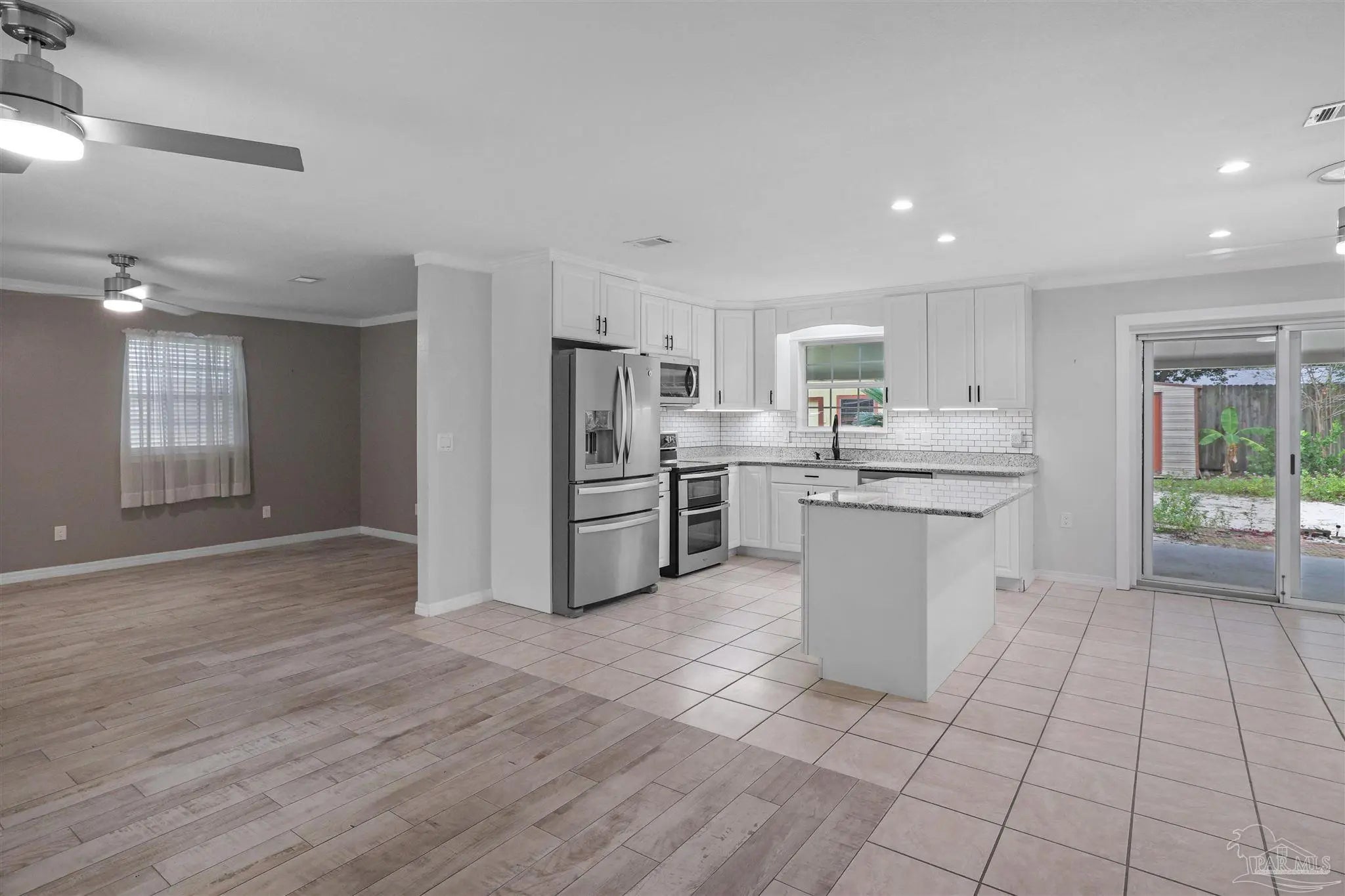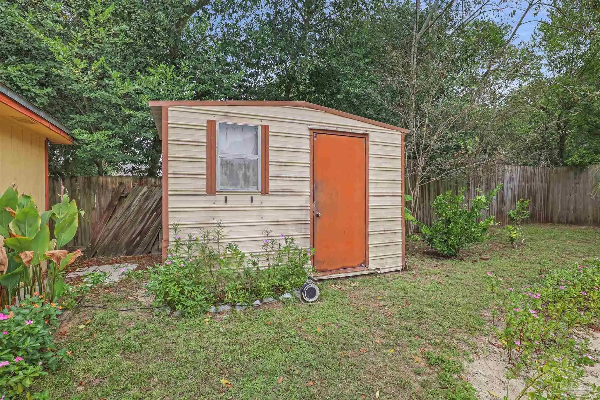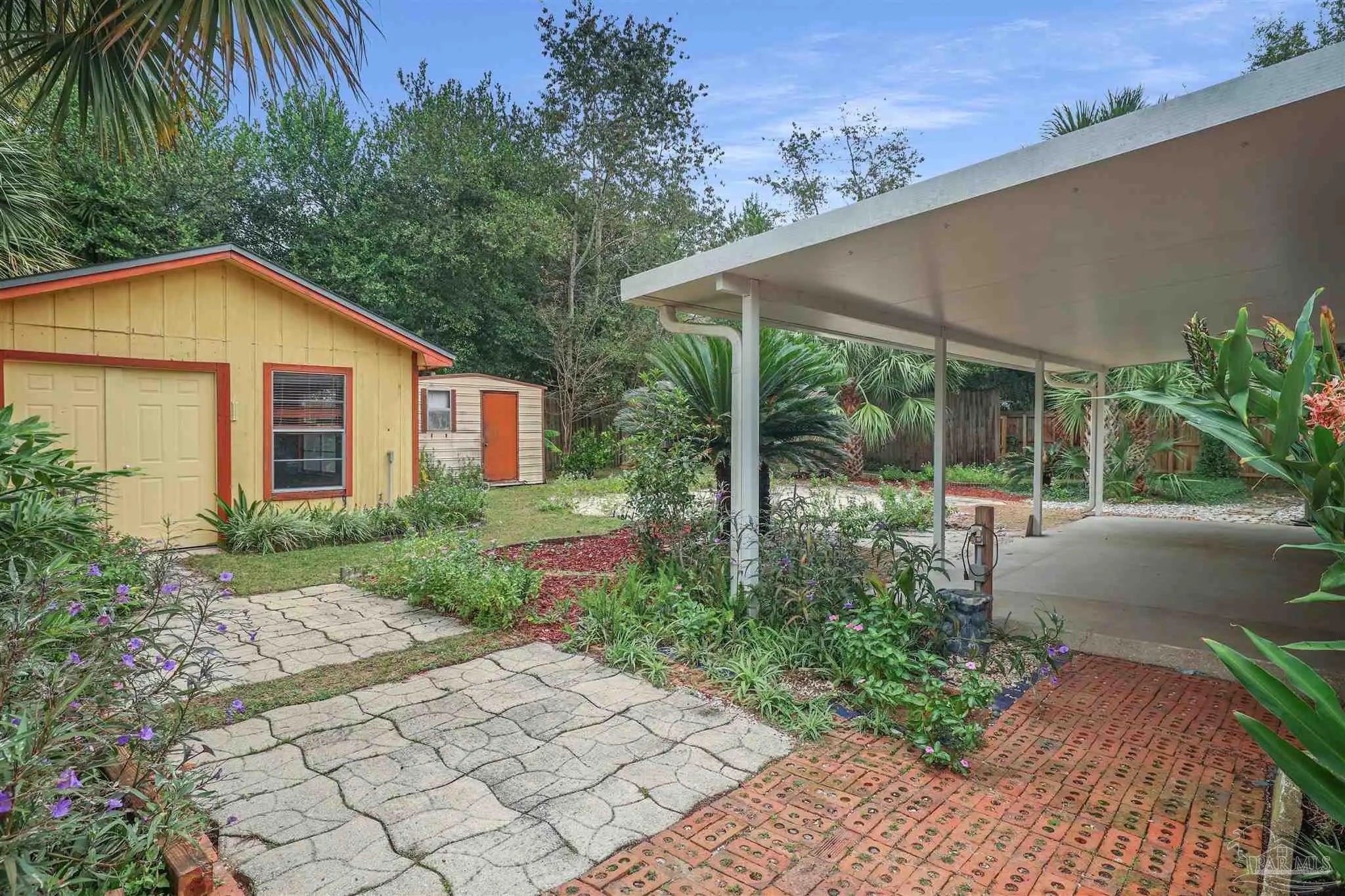 Welcome to this beautifully maintained brick home in the heart of Pensacola, offering the perfect balance of comfort, function, and character. Step inside to a bright open-concept layout featuring a fully remodeled kitchen with stainless steel appliances, granite countertops, subway tile backsplash, and crisp white cabinetry. The spacious living and dining areas flow seamlessly together, making entertaining effortless. This home features three comfortable bedrooms and two full baths, each filled with natural light. The primary suite and guest rooms offer classic parquet wood flooring and updated ceiling fans for added comfort. Out back, you’ll love the private retreat—complete with mature tropical landscaping, a covered patio for outdoor dining, and not one but two detached buildings. The larger workshop with power and windows makes an ideal studio, hobby space, or extra storage, while the second shed provides even more utility. Additional highlights include a newer roof, updated lighting, neutral color palette, and a convenient location just minutes from local schools, shopping, and downtown Pensacola. Whether you’re looking for a first home, investment, or downsizing opportunity, 1814 Toni Street delivers timeless charm, modern updates, and versatile space inside and out.