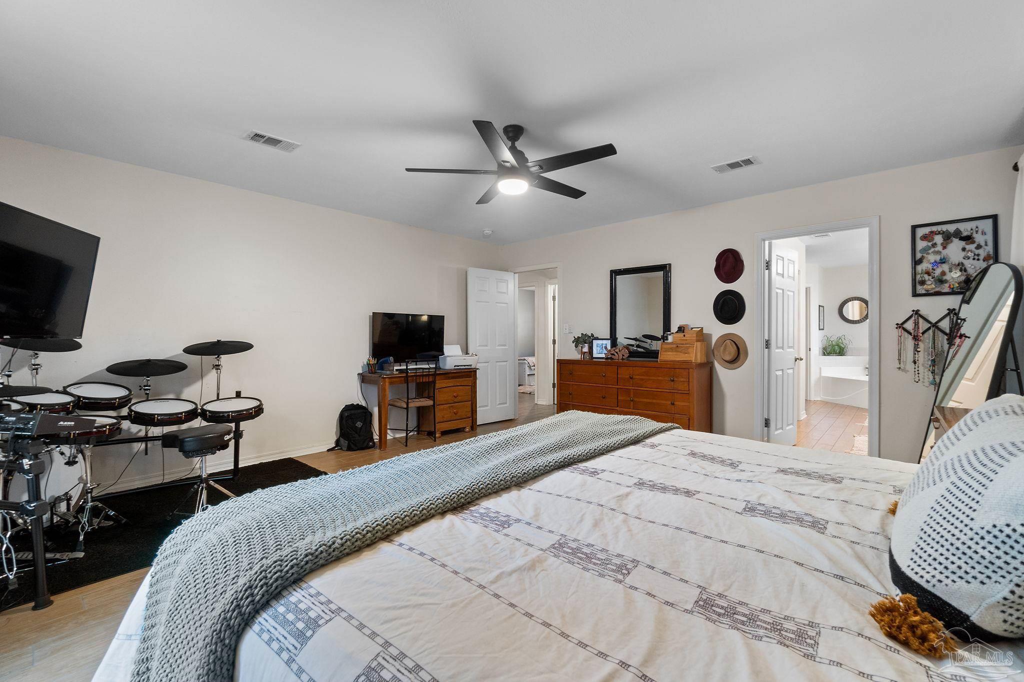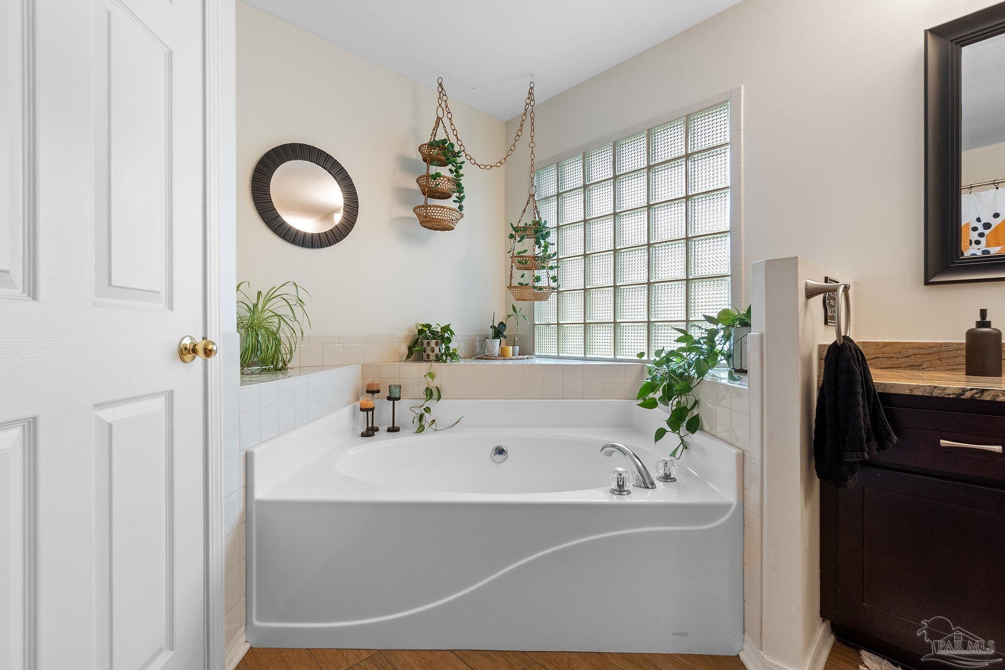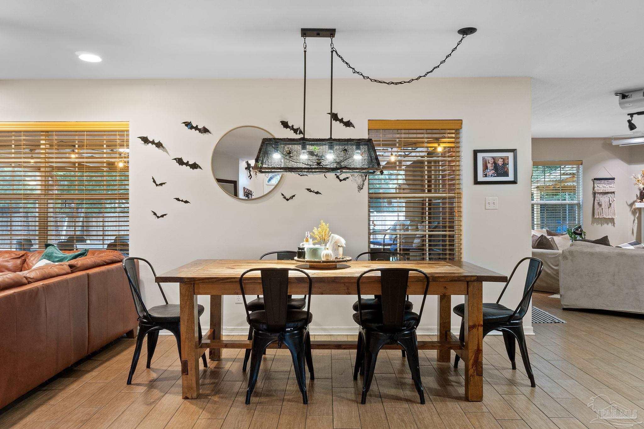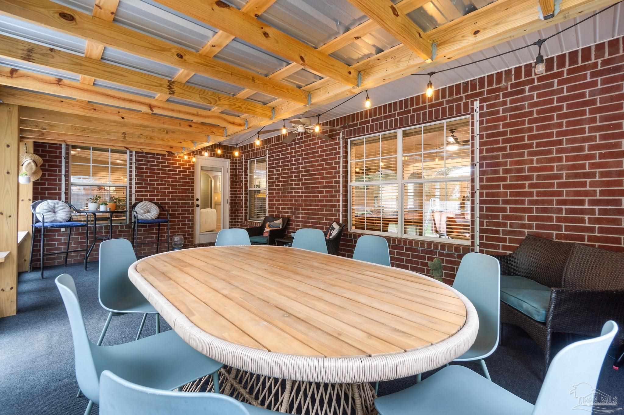 Welcome to this spacious 4 bedroom, 3 bathroom home in Tiger Point Village! New 2025 Roof!! Conveniently located to shopping, dining, Tiger Point Golf Course, & Tiger Point Park. Inside, you'll find a formal dining room or bonus room, an open concept kitchen, and 2 separate living spaces - one with a fireplace! The kitchen offers plenty of space - perfect for entertaining - with ample cabinet and countertop room & a breakfast bar! Off the kitchen to the right, you have 2 bedrooms with a full bathroom in between. On the left side of the home, you'll find the 3rd additional bedroom with a full bathroom and the primary bedroom with an ensuite bathroom. Each bathroom offers beautiful granite countertop vanities & the primary bathroom offers a garden tub, separate shower, water closet, and double vanity! Step outside to the backyard, where you'll find an inviting screened-in porch, perfect for relaxing or enjoying your morning coffee! The spacious backyard also features an above ground pool, a fire pit, and a treehouse-style playset with a sitting area and slide!