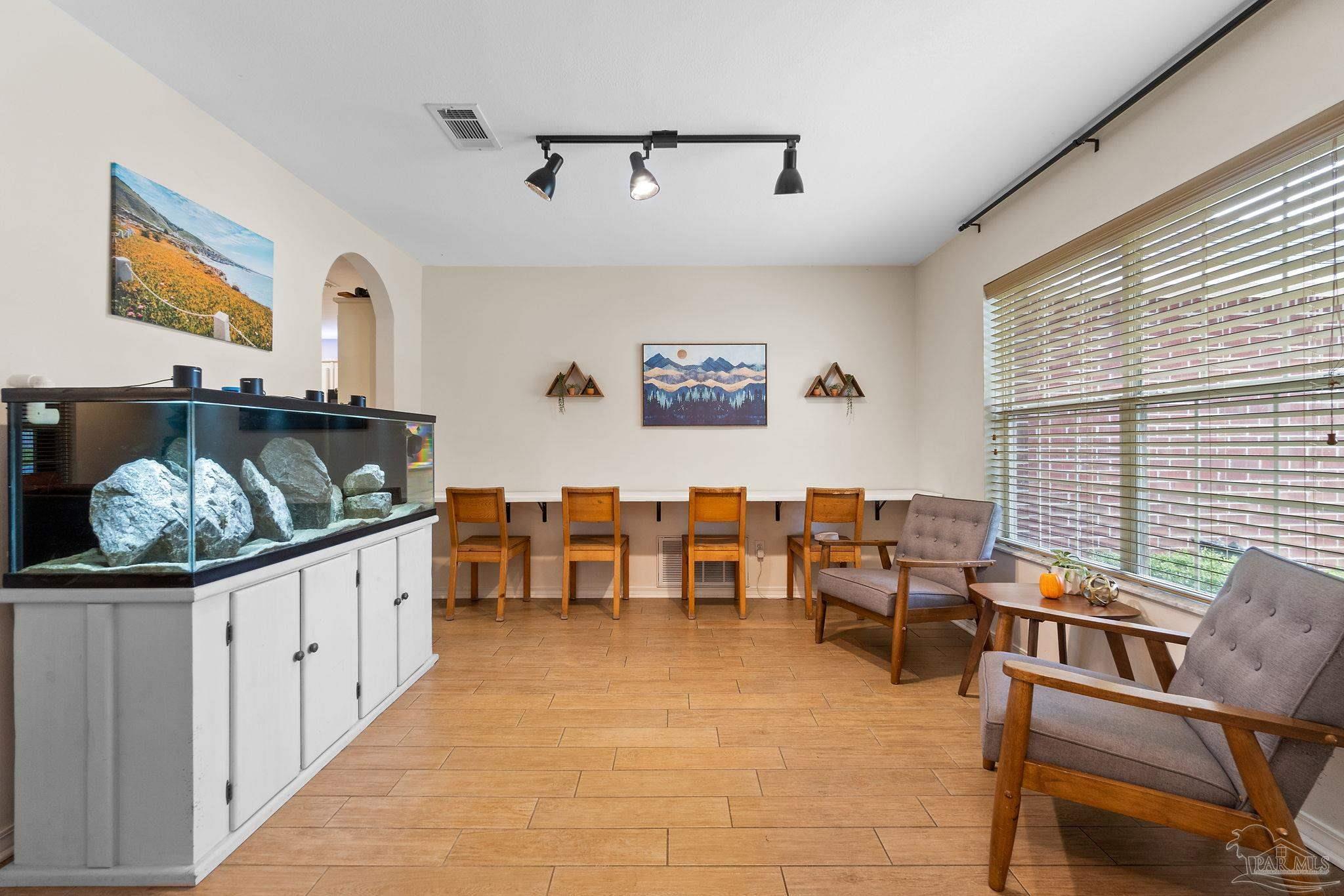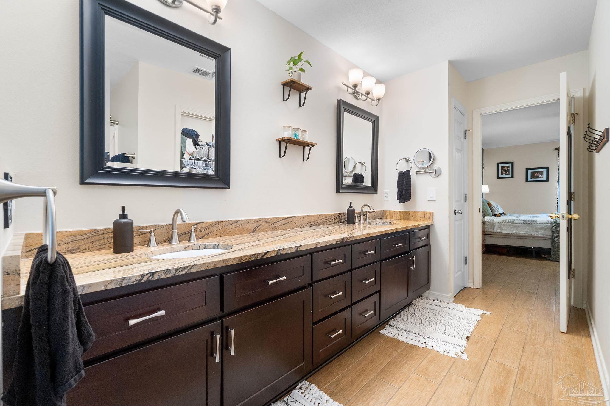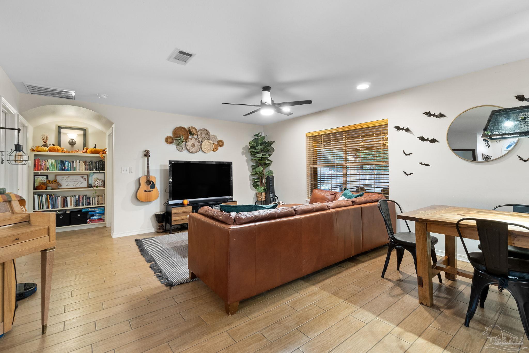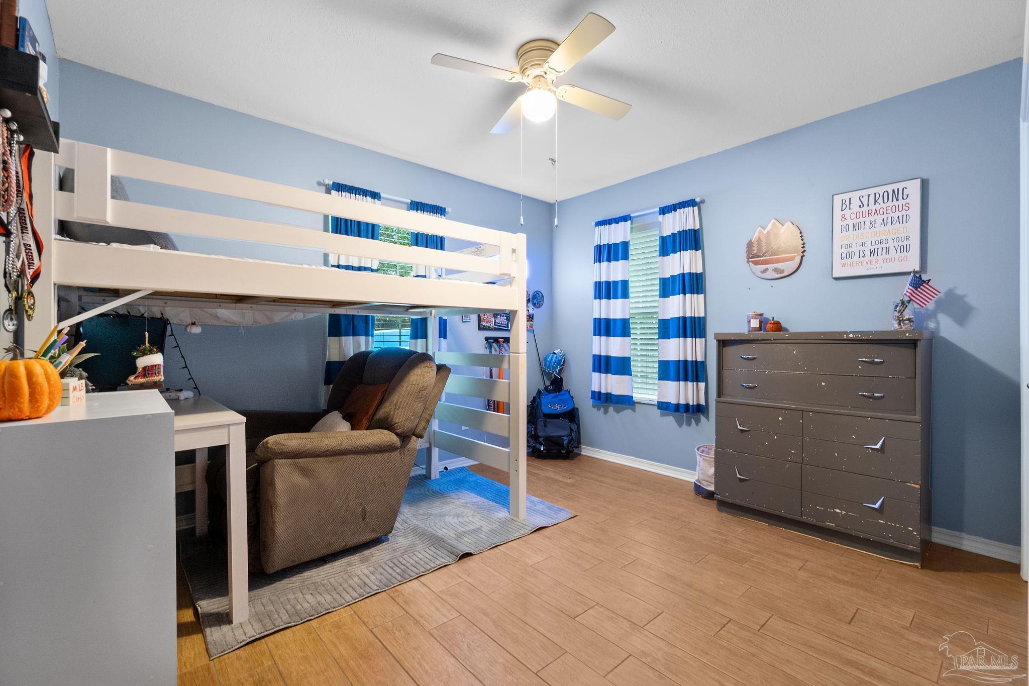 Welcome to this spacious 4 bedroom, 3 bathroom home in Tiger Point Village! New 2025 Roof!! Conveniently located to shopping, dining, Tiger Point Golf Course, & Tiger Point Park. Inside, you'll find a formal dining room or bonus room, an open concept kitchen, and 2 separate living spaces - one with a fireplace! The kitchen offers plenty of space - perfect for entertaining - with ample cabinet and countertop room & a breakfast bar! Off the kitchen to the right, you have 2 bedrooms with a full bathroom in between. On the left side of the home, you'll find the 3rd additional bedroom with a full bathroom and the primary bedroom with an ensuite bathroom. Each bathroom offers beautiful granite countertop vanities & the primary bathroom offers a garden tub, separate shower, water closet, and double vanity! Step outside to the backyard, where you'll find an inviting screened-in porch, perfect for relaxing or enjoying your morning coffee! The spacious backyard also features an above ground pool, a fire pit, and a treehouse-style playset with a sitting area and slide!