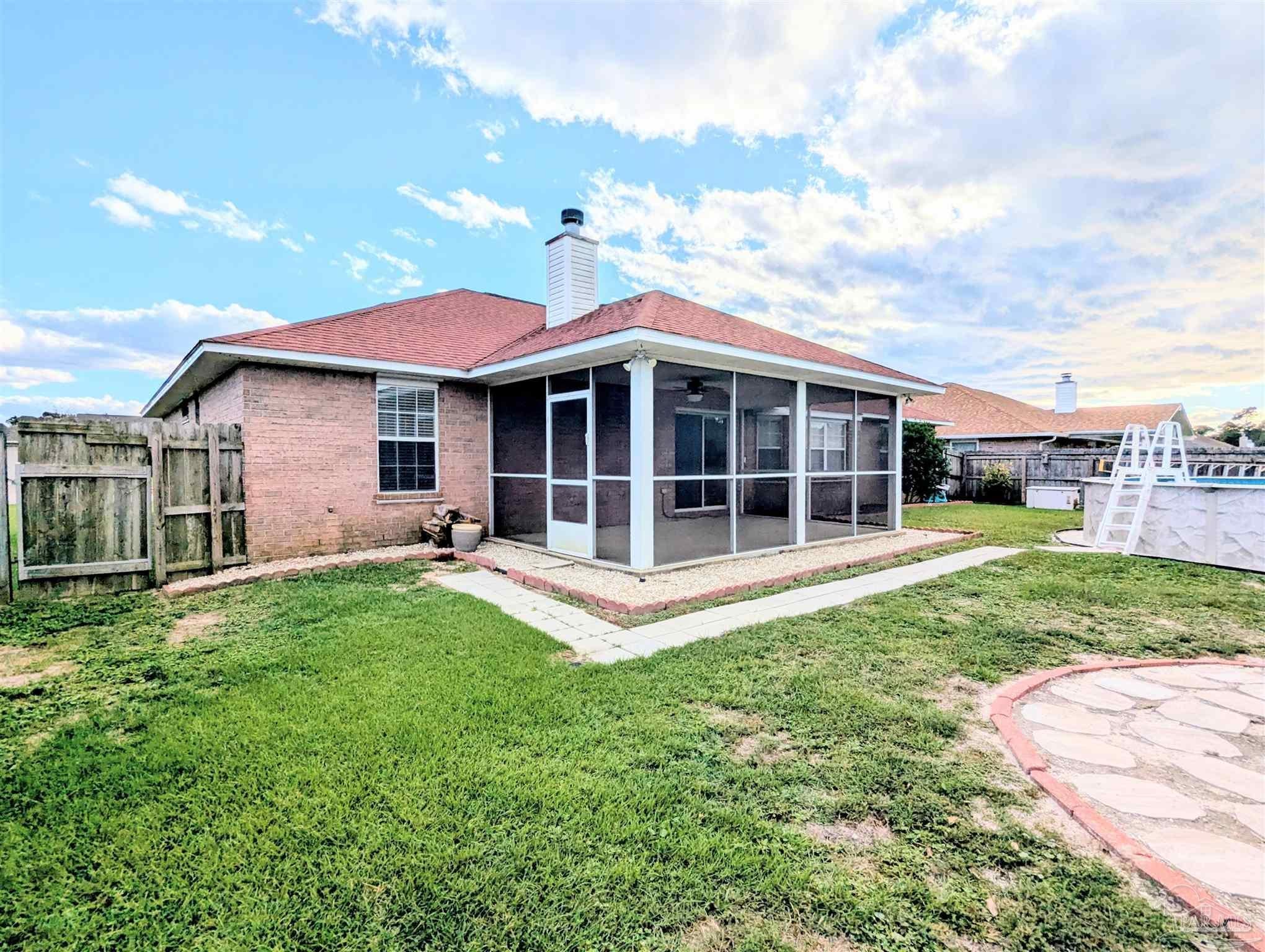 1145 Freeboard Blvd is an awesome 4 bedroom, 3 bath home located in the popular Estates at Emerald Shores subdivision - just minutes from Pensacola NAS, Perdido Key and Orange Beach and a short walk to Big Lagoon. This stunning home offers tons of comfort, convenience, and luxury. Step inside to discover a thoughtfully designed split floor plan that balances privacy and entertainment. The large living room with high ceilings opens into the dining room and large kitchen with breakfast area and island - plenty of room for cooking. All 4 bedrooms have luxury vinyl plank flooring w/ tile in the common areas for a super low-maintenance rental. the The spacious primary suite includes indulgent amenities such as a large bathtub, walk-in shower, his and hers sinks, and his and hers walk in closets. Outside you'll find a large fenced yard, above ground pool and awesome firepit. Enjoy decreased utility expenses with solar panels adorning the roof. Schedule your tour today and prepare to fall in love with your new home!