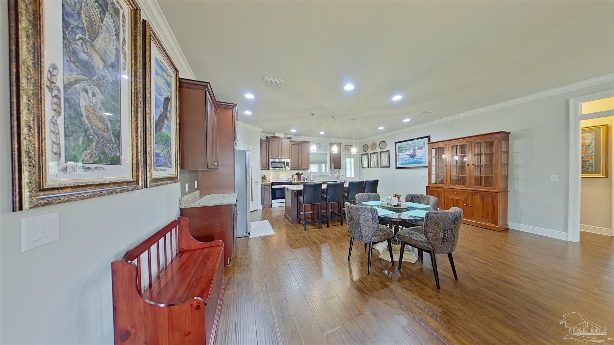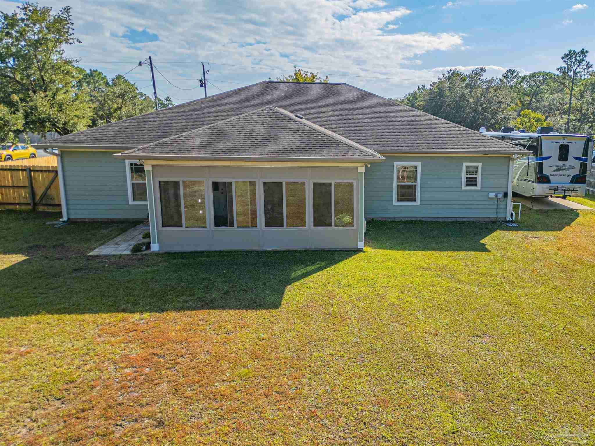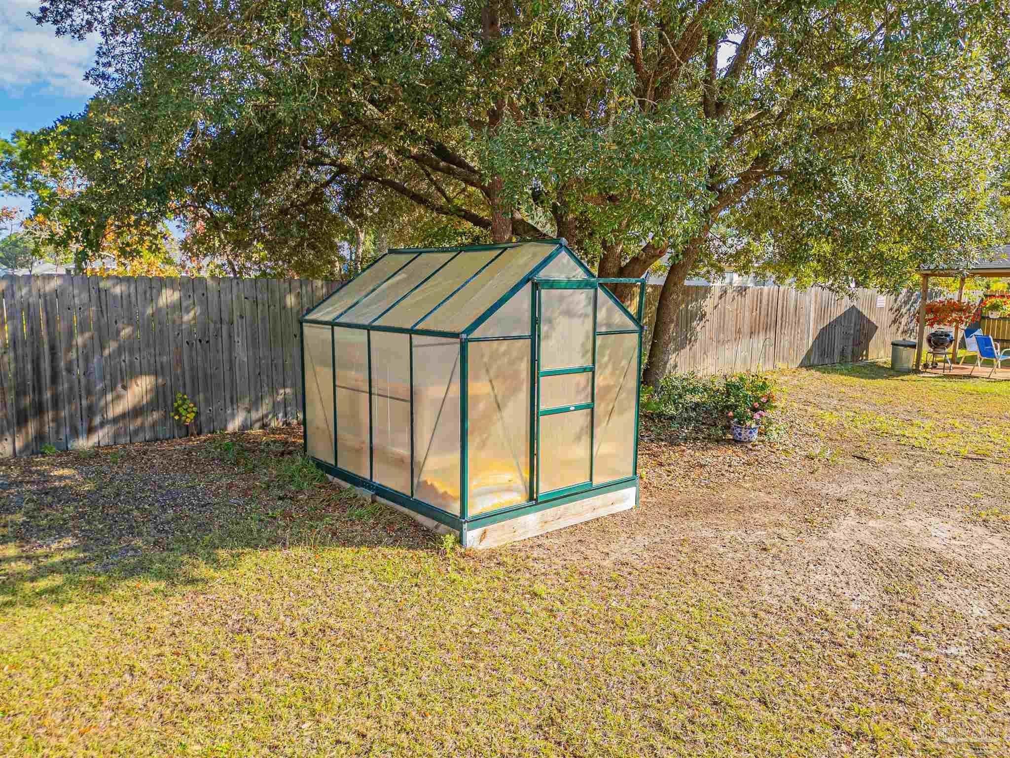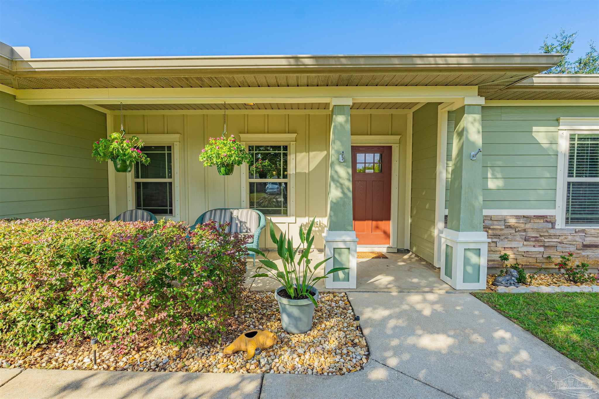 Meticulously maintained and great location in Navarre, very close to the beach, shopping and about a 15 minute drive to Hurlburt! Beautiful 4 bedroom and 2 bath home featuring rich wood floors in the main living areas and kitchen. Open and split floor plan. Kitchen features island, granite counter tops, back splash, and stainless steel appliances. Master bedroom is very spacious and bright with trey ceiling, crown molding and LVP Flooring. Large master bathroom with dual granite vanity, large tile shower and walk-in closet. Additional bedrooms are ample sized with roomy closets as well. Large covered back porch has been enclosed with its own cooling/heating unit. Large back yard with 12 x 24 workshop/shed that has power, green house, covered BBQ area. RV parking with a concrete pad and electric hook-up. Home features 2x6 construction, extra insulation in the walls, stone and hardy board siding, gutters, hurricane fabric sheild, lawn pump with sprinkler system.
