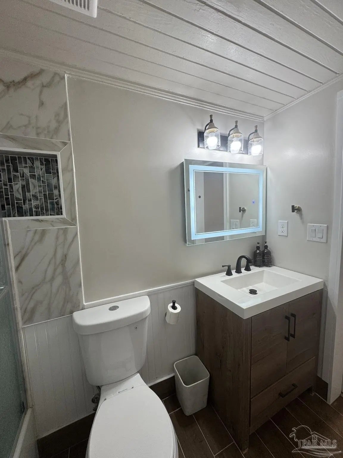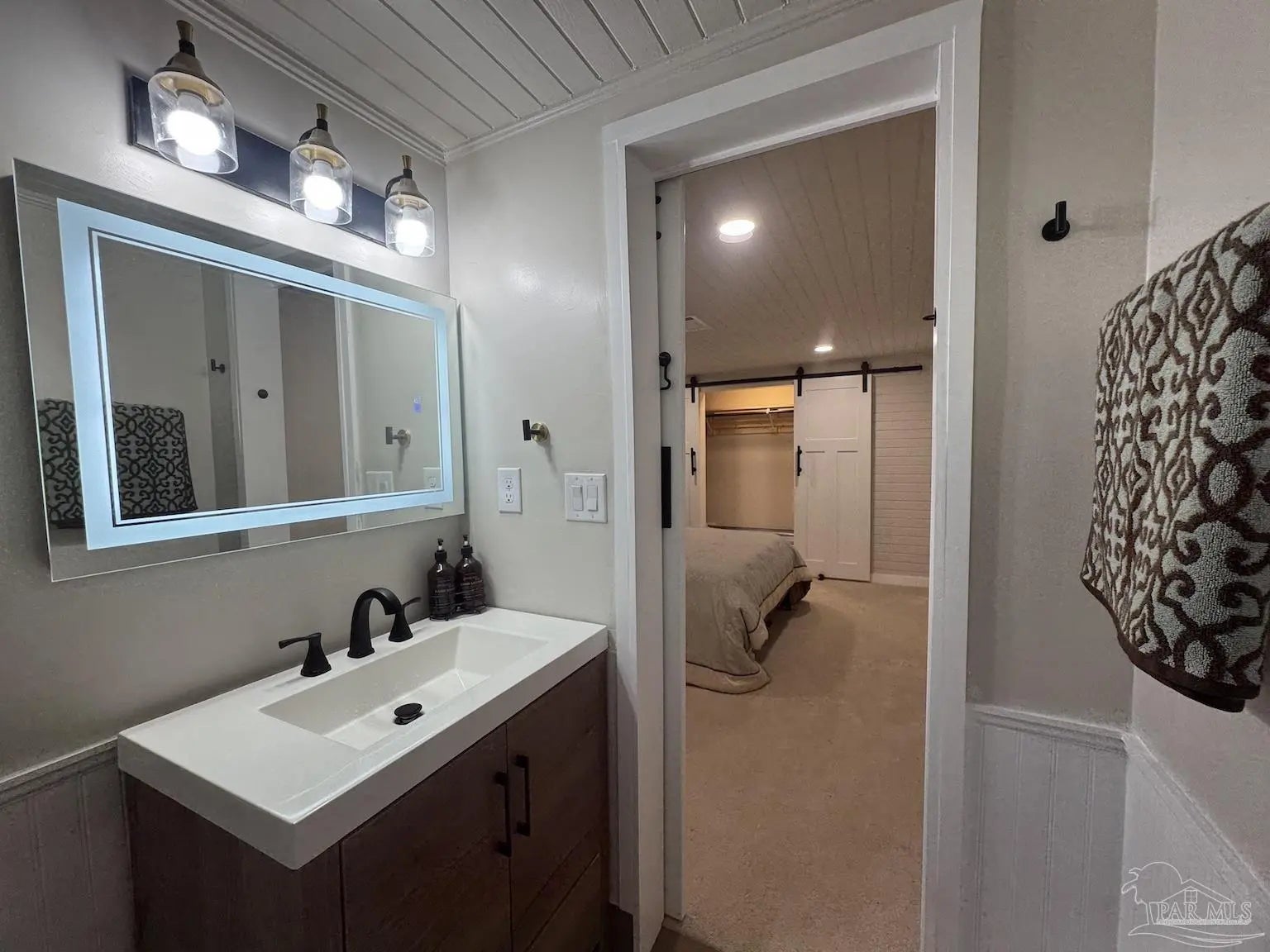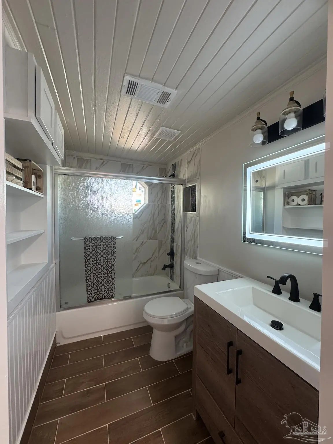Major price improvement! Close to downtown, easy commute, remodeled and updated, this little gem has a lot of NEW! The New Roof, New HVAC system, New Windows, and window casings will lower insurance premiums. With new flooring and interior Doors throughout, plus modern cordless Light-filtering Cellular Blinds, you'll find so many more pleasing improvements in this charming home! With a nod to classic design, in the kitchen and dining room you'll find Tongue & Groove hardwood ceilings but with updated Cabinets and Dolomite Countertops, along with matching mosaic tiles for backsplash, undermount sink, stainless appliances and 10 canned lighting fixtures in the home, you'll be ready for today's contemporary lifestyle comforts. Both baths have custom showers or tubs, new vanities and toilets, plus new designer tile in both baths and kitchen. You'll appreciate the no-fog hardwired and lighted bathroom mirrors. Other upgrades include Berber upgraded pad design carpets and the matching tile on front porch and utility room. A thoughtfully designed upper and lower corner cabinet in Dining Area, and a bookcase in the separate Family Room will hold your treasures. Closets with paneling and modern barndoors will help keep your bedroom spaces organized. Attic insulation has been added, landscaping upgraded, and even a cozy woodburning fireplace for cool evenings. Tankless gas hot water heater located in laundry room, upgraded plumbing and electrical, including new gas lines from street to the house, plus added attic insulation will make for lower utility bills. New fence on westside of home front to back. Recent pest inspection has been completed with no issues found. Easy access to Interstate 10 and 2 blocks from Pensacola High School, Just north of old Baptist Hospital. Minutes to downtown Pensacola restaurants and fun, and 20 minutes to Pensacola Beach. Schedule a tour soon!