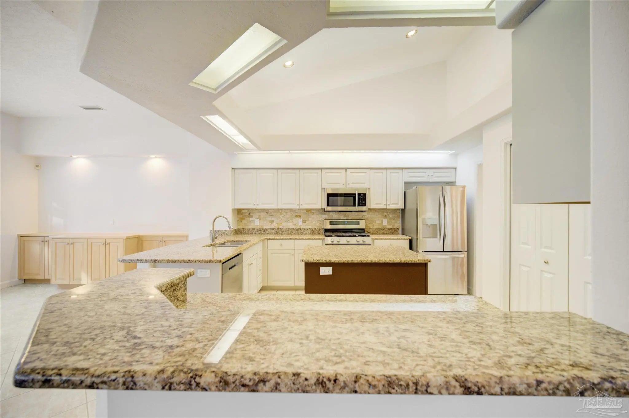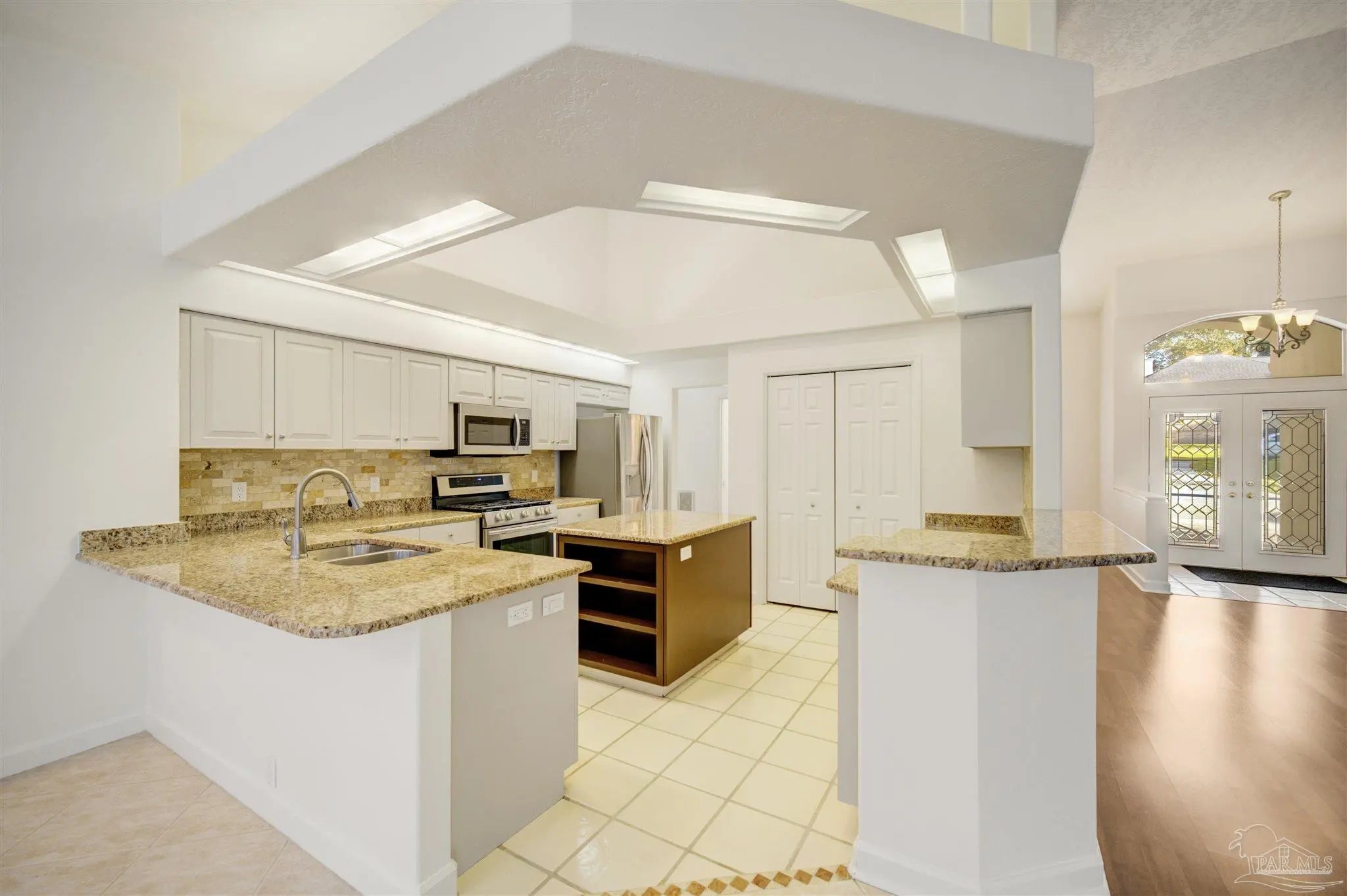 Stunning Pool Home on Marcus Pointe Golf Course – Elegant, Spacious, and Move-In Ready! Beautifully updated 3-bedroom, 3-bath residence with a dedicated den/office. The open split floor plan provides the perfect blend of comfort, functionality, and style. Step inside and be greeted by an abundance of natural light, soaring ceilings, and high-end finishes throughout. The living and dining areas feature rich wood laminate flooring, premium light fixtures, and a gas fireplace with remote control. Triple sliding glass doors retract, seamlessly connecting your indoor space to the sparkling pool and stunning golf course views—creating a true indoor/outdoor living experience. The chef’s kitchen is complete with granite countertops and backsplash, painted cabinetry, a large center island, pantry, deep sink with pull-down sprayer, stainless steel Samsung gas range and LG refrigerator, breakfast bar, and a built-in planning desk. Enjoy panoramic views of the pool and fairway from the sunny breakfast area. The master suite is your private retreat, with sliding glass doors to the pool, golf course views, high ceilings, dual closets with built-in organizers, an en suite with granite countertops, updated fixtures, and a private water closet. Two additional bedrooms are generously sized, with convenient access to the hall bath and a dedicated pool bath—ideal for guests or family. The spacious side-entry two-car garage has been freshly painted and provides ample storage. Additional features include: • New Roof Installed July 2025 • New interior paint throughout • Transom windows for added natural light • Built-in intercom and sound system • Central vacuum • Hardwired security system • Spacious laundry room with storage and utility sink • Sprinkler system • Tankless gas water heater This exceptional home combines luxury, comfort, and a prime golf course location!