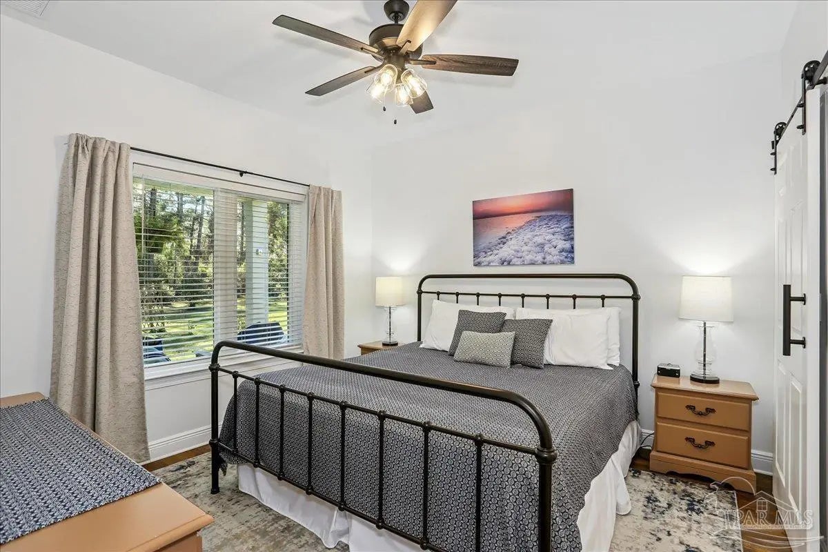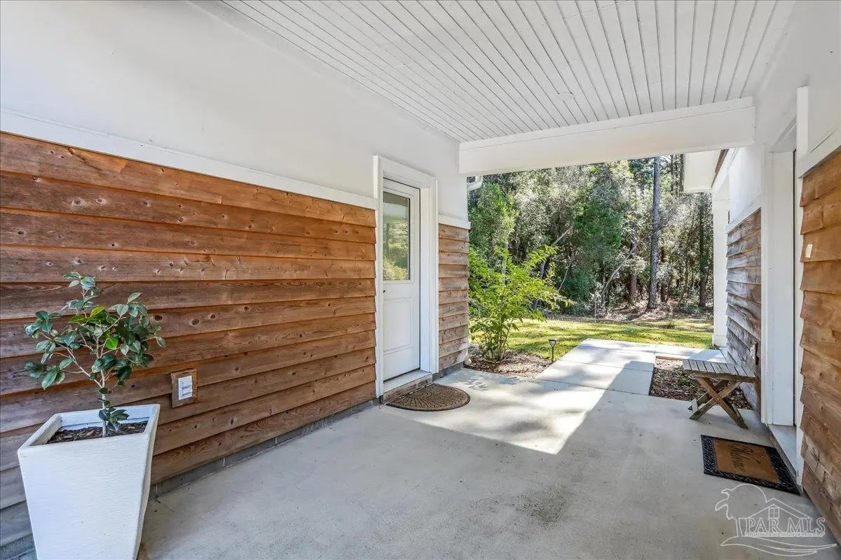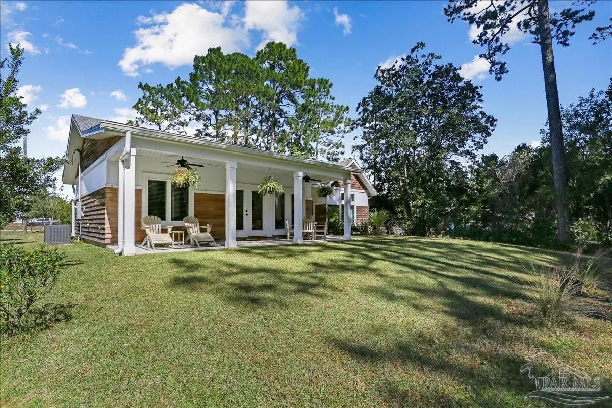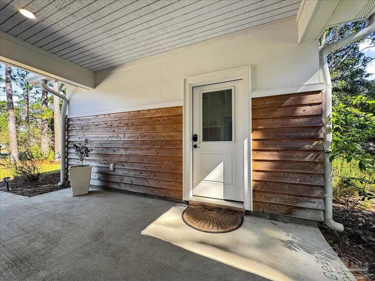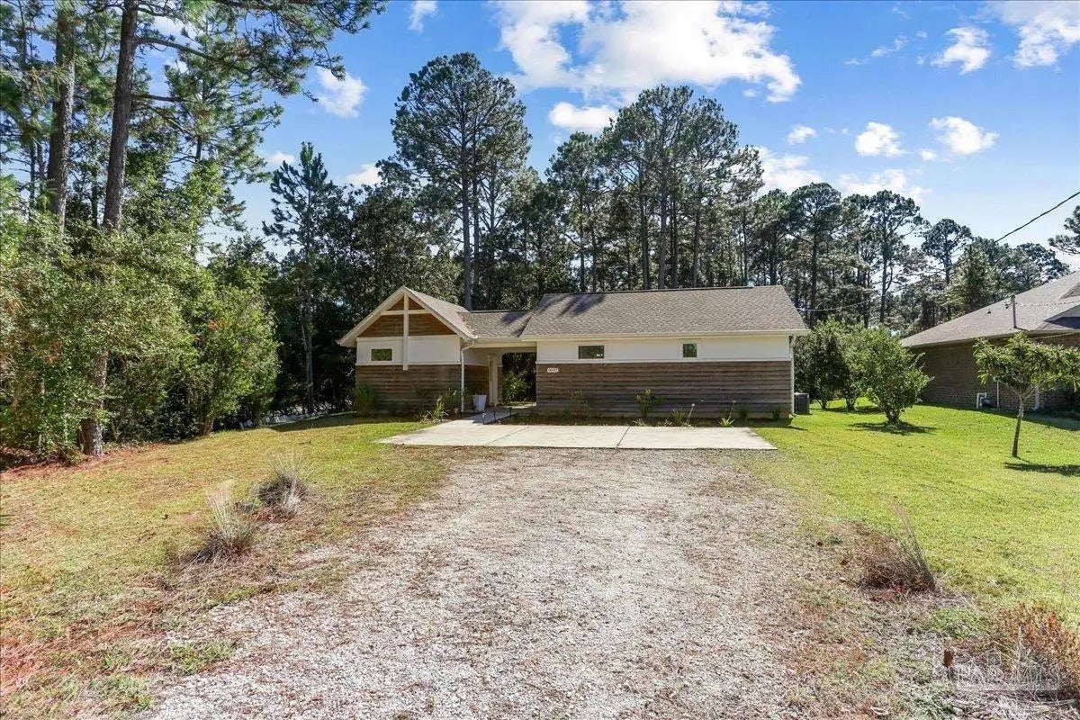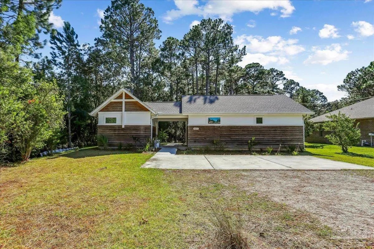 Unique Coastal Retreat on ½ Acre — 10 Minutes to Navarre Beach! Welcome to this one-of-a-kind coastal retreat offering flexibility, privacy, and charm. Built in 2021, this 1 bedroom / 1 bathroom home sits on a spacious ½-acre lot and has been previously used as both a pastoral retreat and seasonal Airbnb. Inside, you’ll find a bright, open-concept living area and kitchen with quartz countertops, white cabinetry, stainless steel appliances, and a pantry for extra storage. The primary suite and full bathroom are under the same roof as the main living area, featuring a stackable washer and dryer conveniently located in one of the two suite closets. A covered breezeway connects to a large detached space, perfect for additional sleeping quarters, a game room, studio, yoga space, or private retreat area. Enjoy outdoor living on the expansive covered patio, surrounded by a wooded backyard that offers room to add a pool, hot tub, or even another building. Other highlights include a large parking area, no HOA, and plenty of space for an RV, boat, or outdoor entertaining. Just 10 minutes to Navarre Beach and close to local restaurants, and shopping. Endless possibilities — live, host, or invest in your own slice of coastal Florida!