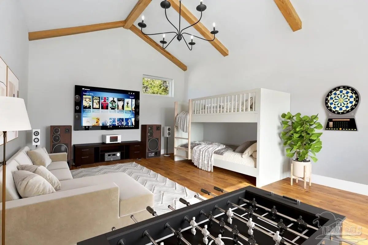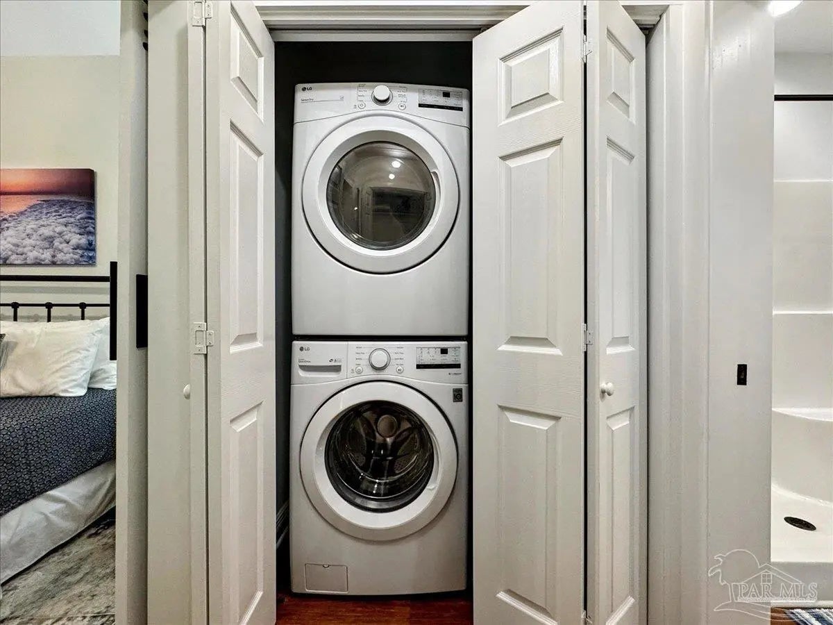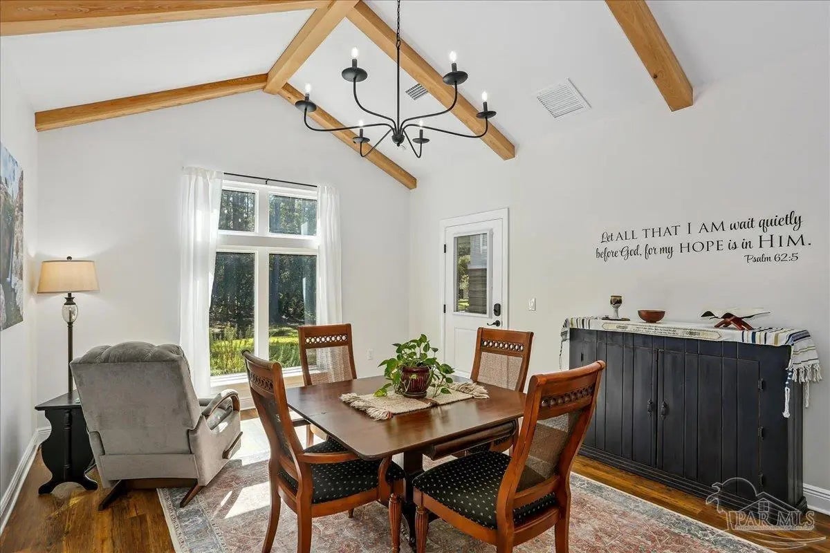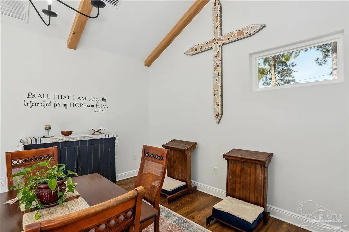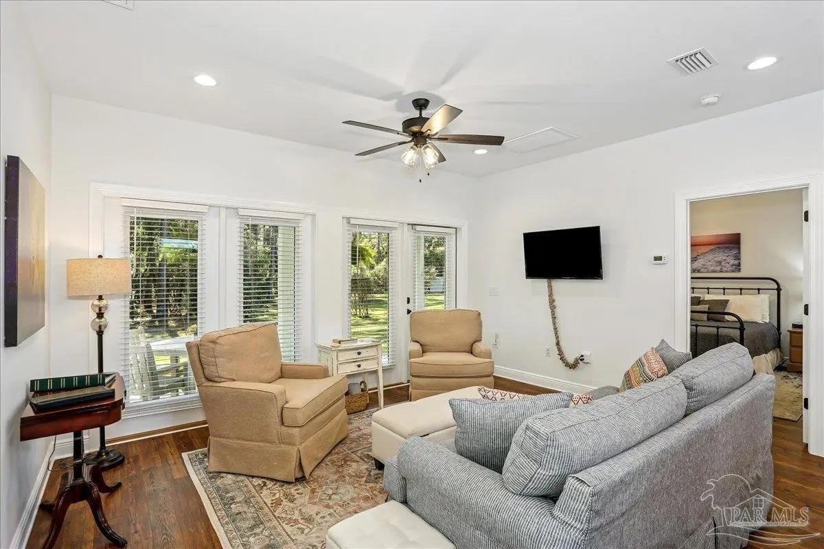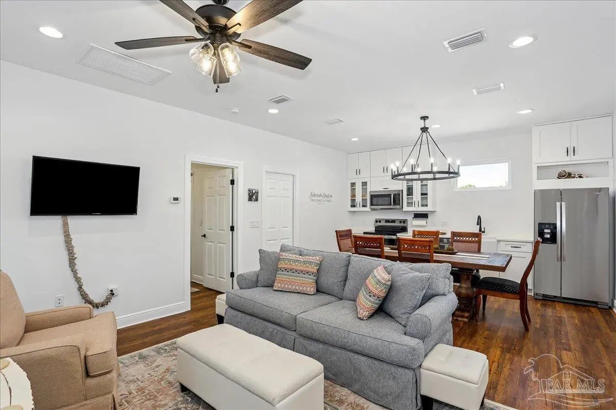 Unique Coastal Retreat on ½ Acre — 10 Minutes to Navarre Beach! Welcome to this one-of-a-kind coastal retreat offering flexibility, privacy, and charm. Built in 2021, this 1 bedroom / 1 bathroom home sits on a spacious ½-acre lot and has been previously used as both a pastoral retreat and seasonal Airbnb. Inside, you’ll find a bright, open-concept living area and kitchen with quartz countertops, white cabinetry, stainless steel appliances, and a pantry for extra storage. The primary suite and full bathroom are under the same roof as the main living area, featuring a stackable washer and dryer conveniently located in one of the two suite closets. A covered breezeway connects to a large detached space, perfect for additional sleeping quarters, a game room, studio, yoga space, or private retreat area. Enjoy outdoor living on the expansive covered patio, surrounded by a wooded backyard that offers room to add a pool, hot tub, or even another building. Other highlights include a large parking area, no HOA, and plenty of space for an RV, boat, or outdoor entertaining. Just 10 minutes to Navarre Beach and close to local restaurants, and shopping. Endless possibilities — live, host, or invest in your own slice of coastal Florida!