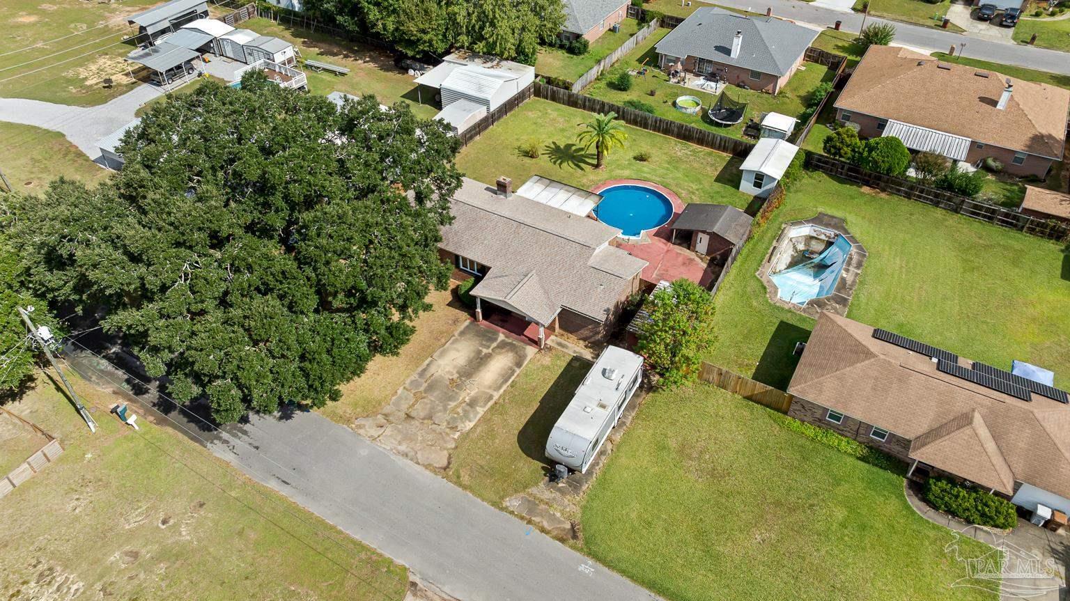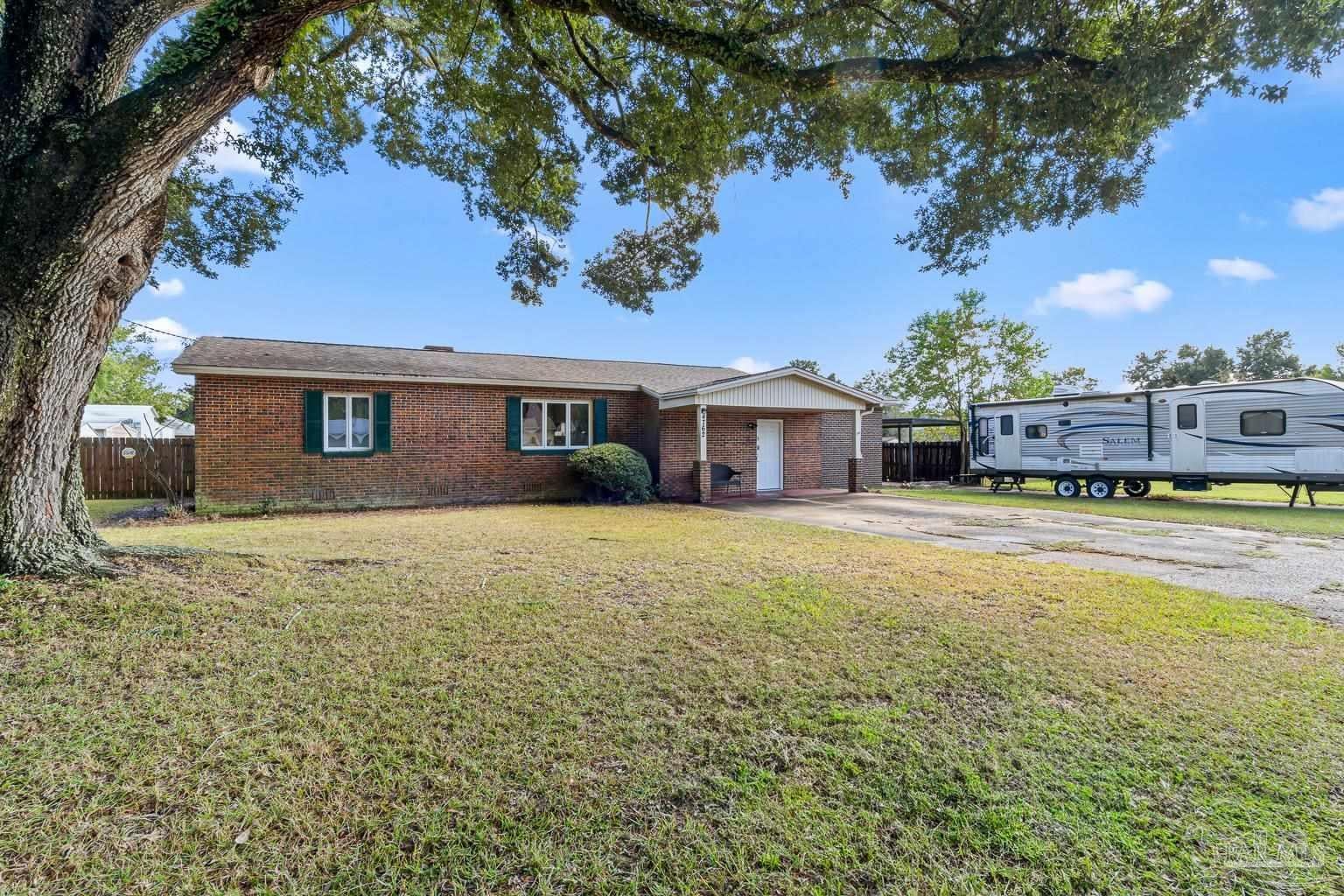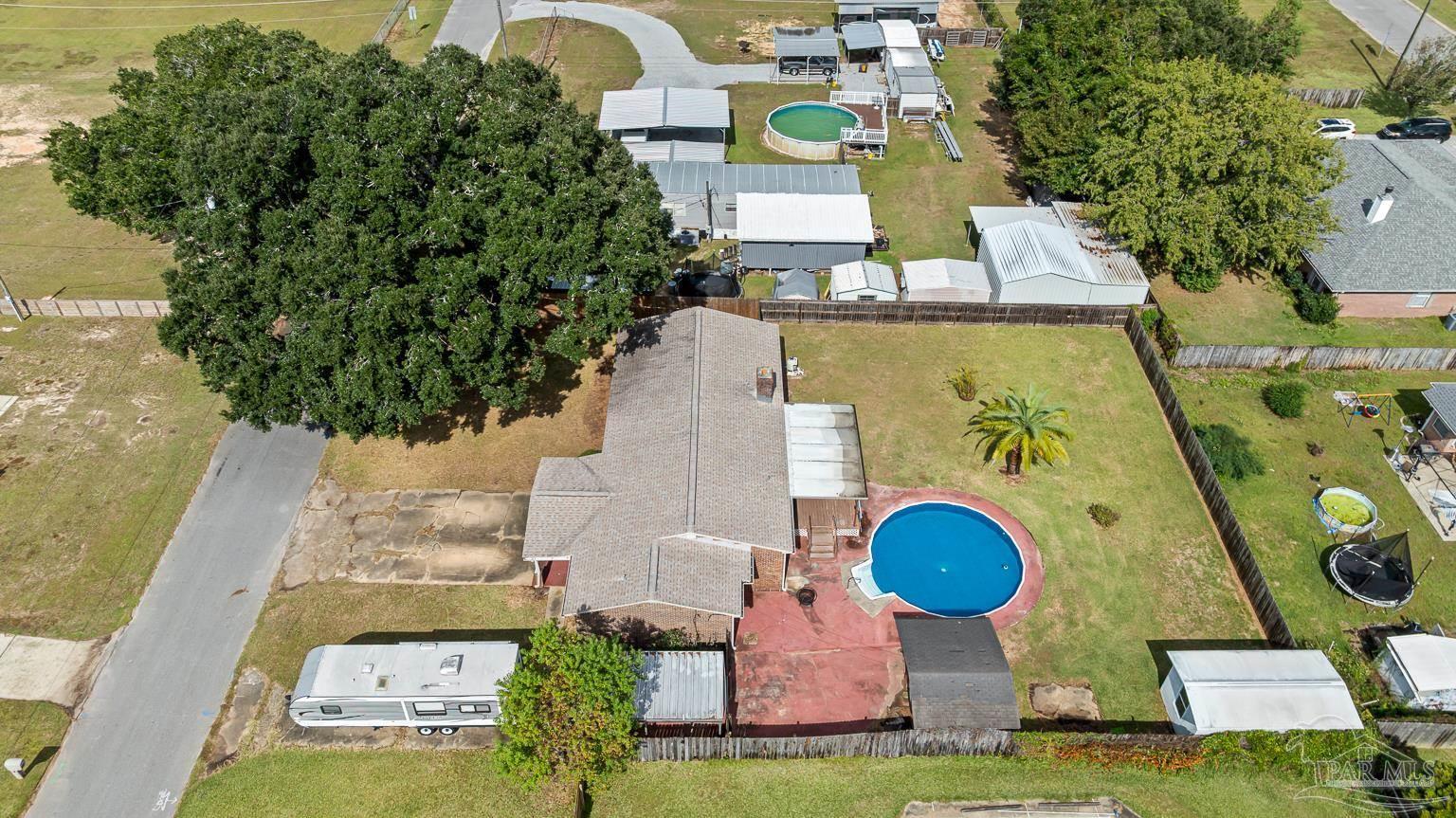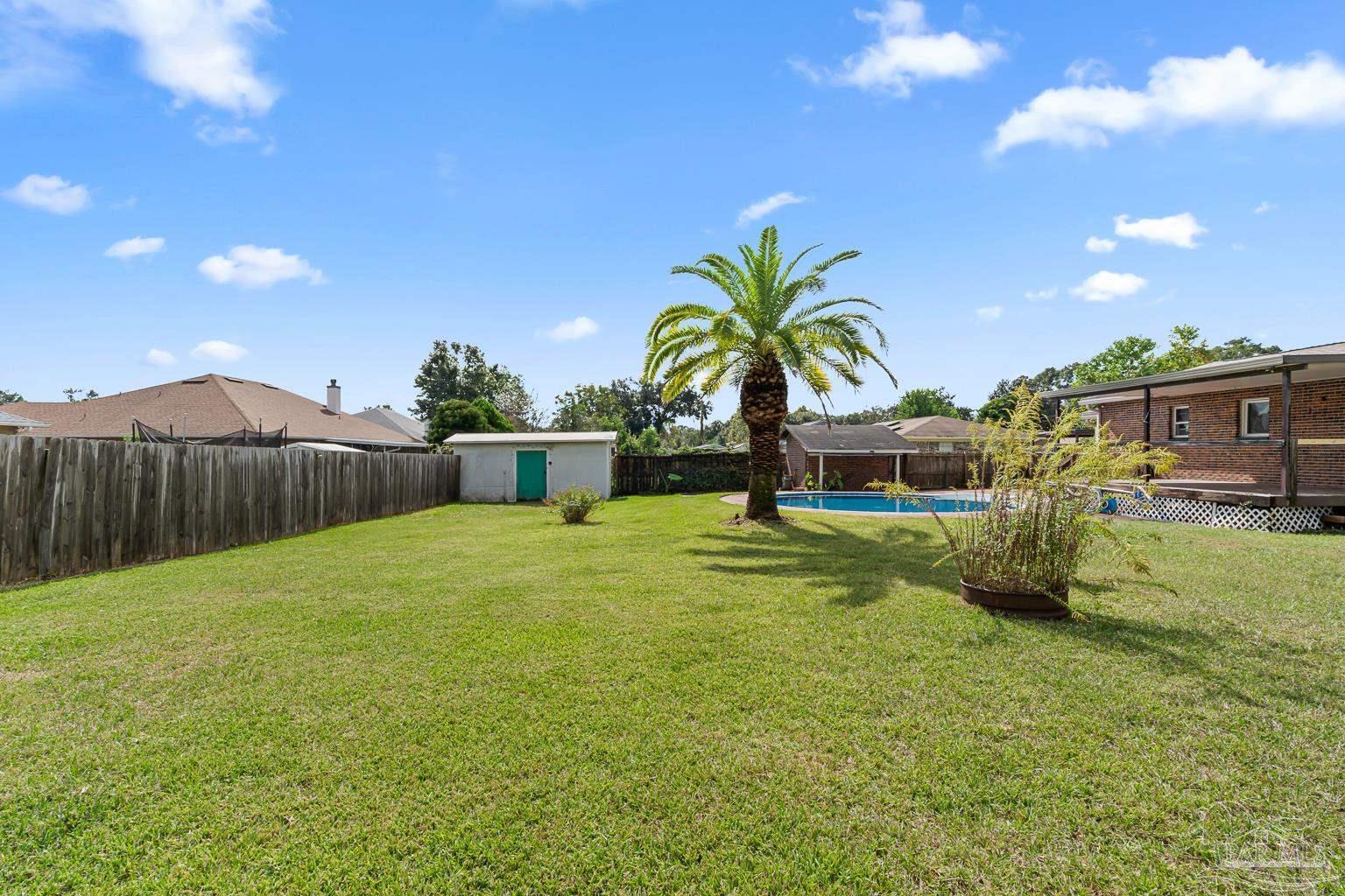 Pool Home in Pace with No HOA – Priced to Sell! This beautifully updated brick home is perfect for a growing family or anyone who loves to entertain! Featuring numerous updates—including a 2017 roof, 2015 Tankless water heater & HVAC system, and a remodeled kitchen with stainless steel appliances. The split floor plan offers privacy and spaciousness, while the large main living area centers around a cozy brick fireplace. The outdoor space is ideal for summer fun, complete with a sparkling pool and a large covered deck & spacious fenced in backyard, perfect for BBQs, gatherings, or simply relaxing in the shade. There are also 2 outdoor buildings that can be used as a workshop, studio, storage, etc. The spacious master suite has been remodeled, providing a peaceful retreat. This home also includes a refrigerator, washer, dryer, and freezer—everything you need to move right in! Park your Camper & Boat at home in your own yard. Conveniently located minutes away from multiple shopping, dining, and family entertainment. Schedule your showing today!
