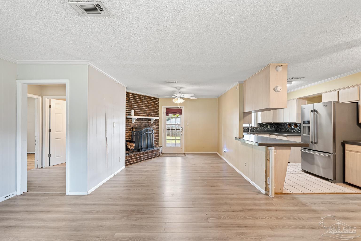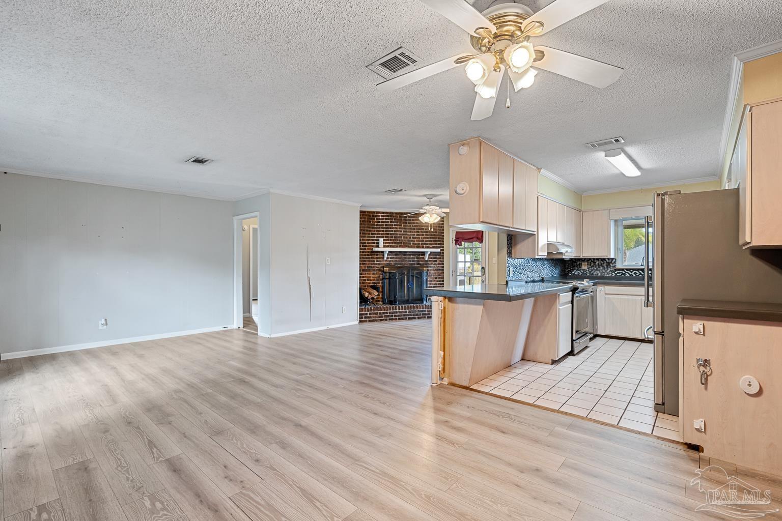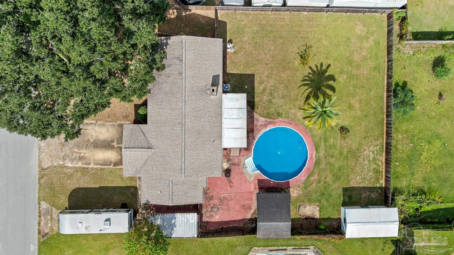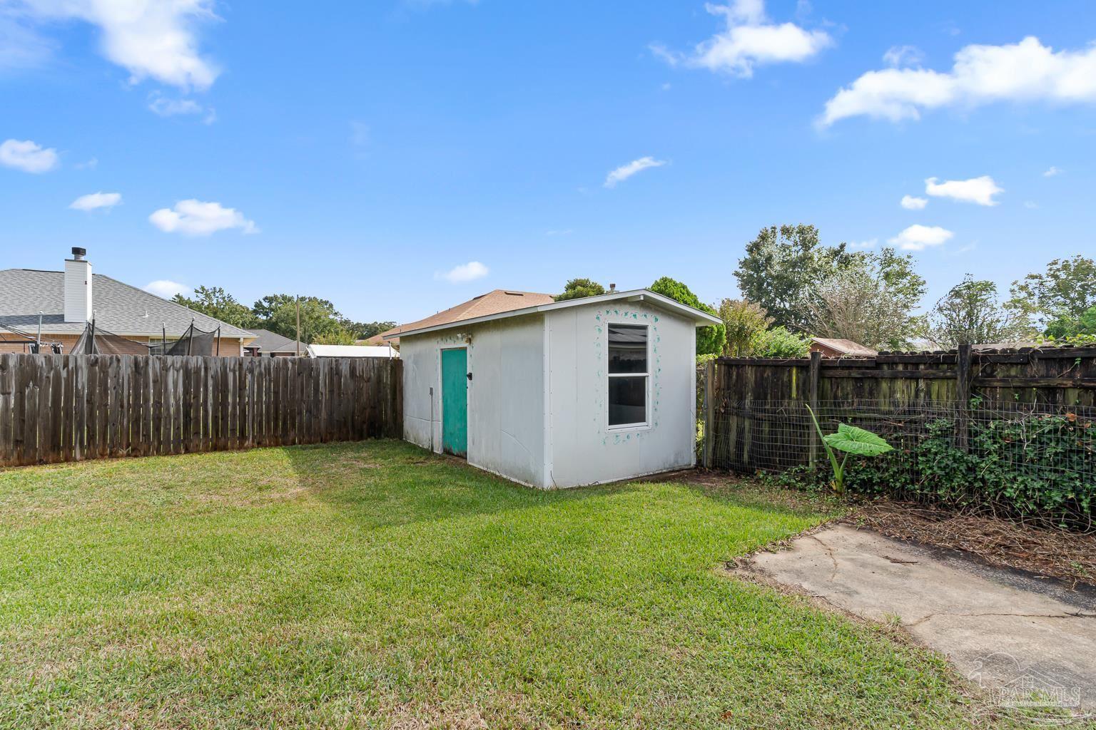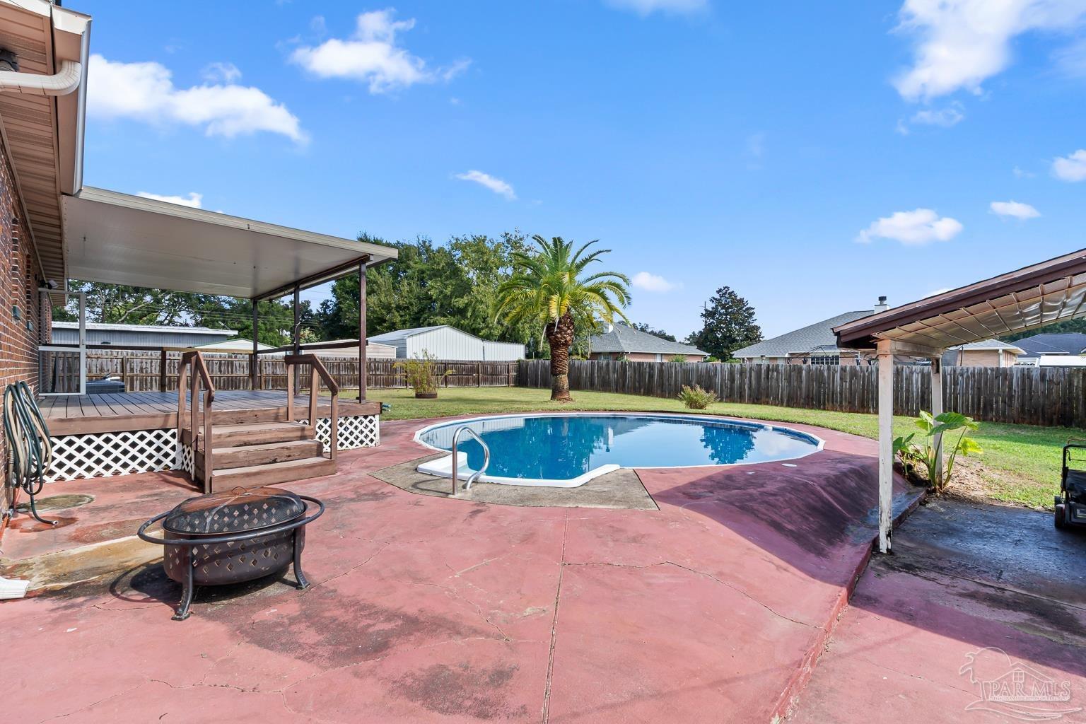 Pool Home in Pace with No HOA – Priced to Sell! This beautifully updated brick home is perfect for a growing family or anyone who loves to entertain! Featuring numerous updates—including a 2017 roof, 2015 Tankless water heater & HVAC system, and a remodeled kitchen with stainless steel appliances. The split floor plan offers privacy and spaciousness, while the large main living area centers around a cozy brick fireplace. The outdoor space is ideal for summer fun, complete with a sparkling pool and a large covered deck & spacious fenced in backyard, perfect for BBQs, gatherings, or simply relaxing in the shade. There are also 2 outdoor buildings that can be used as a workshop, studio, storage, etc. The spacious master suite has been remodeled, providing a peaceful retreat. This home also includes a refrigerator, washer, dryer, and freezer—everything you need to move right in! Park your Camper & Boat at home in your own yard. Conveniently located minutes away from multiple shopping, dining, and family entertainment. Schedule your showing today!