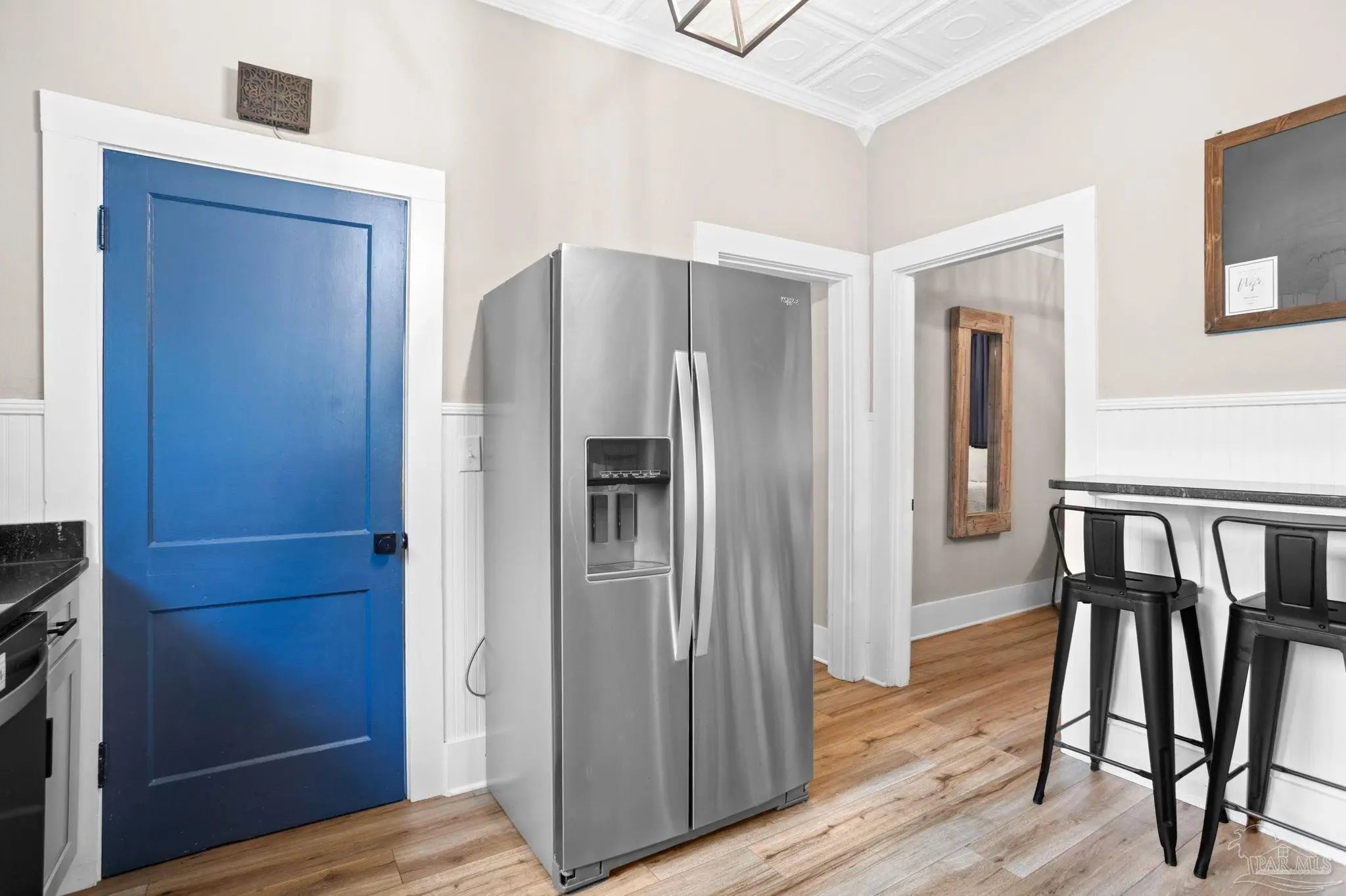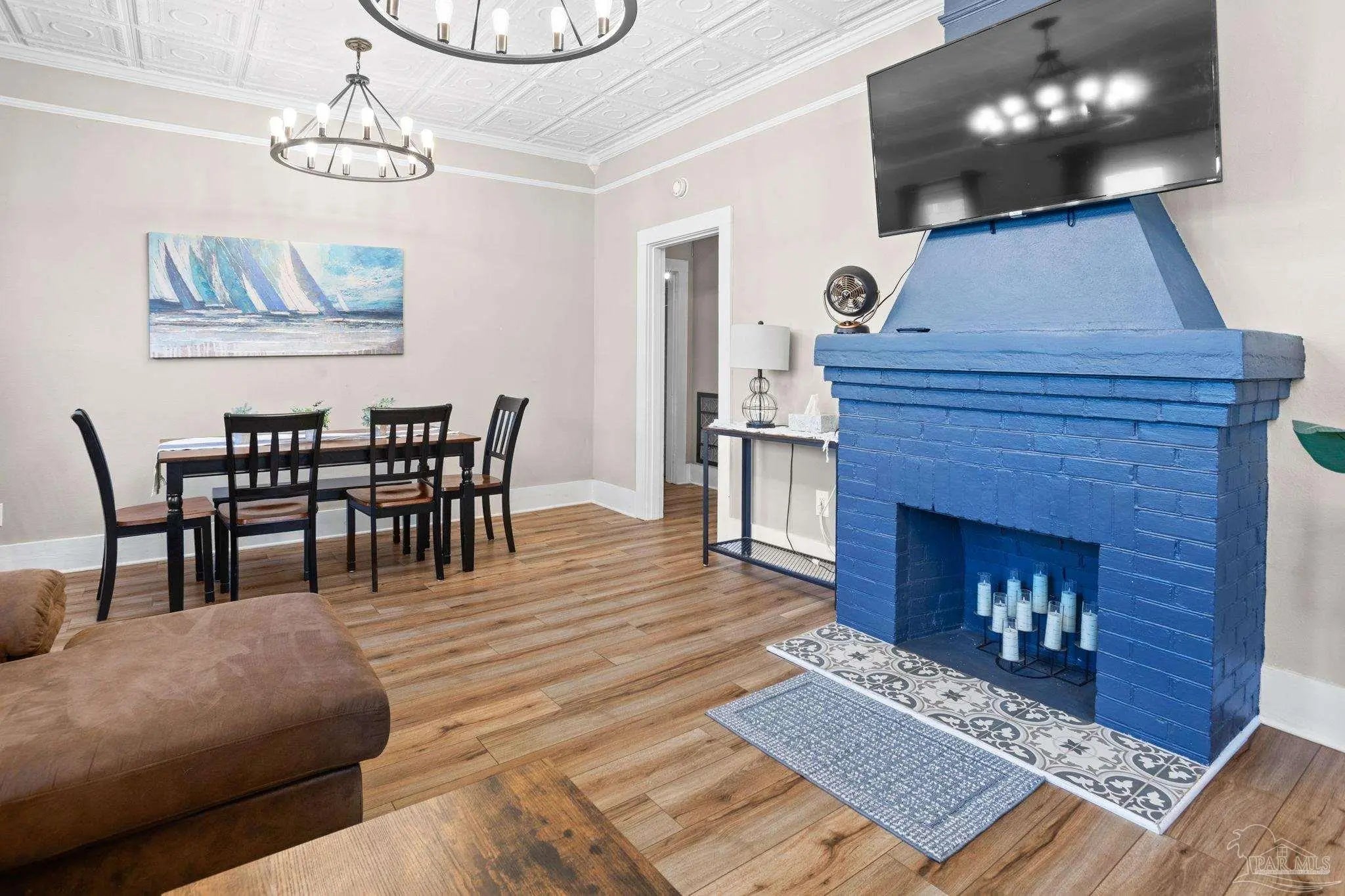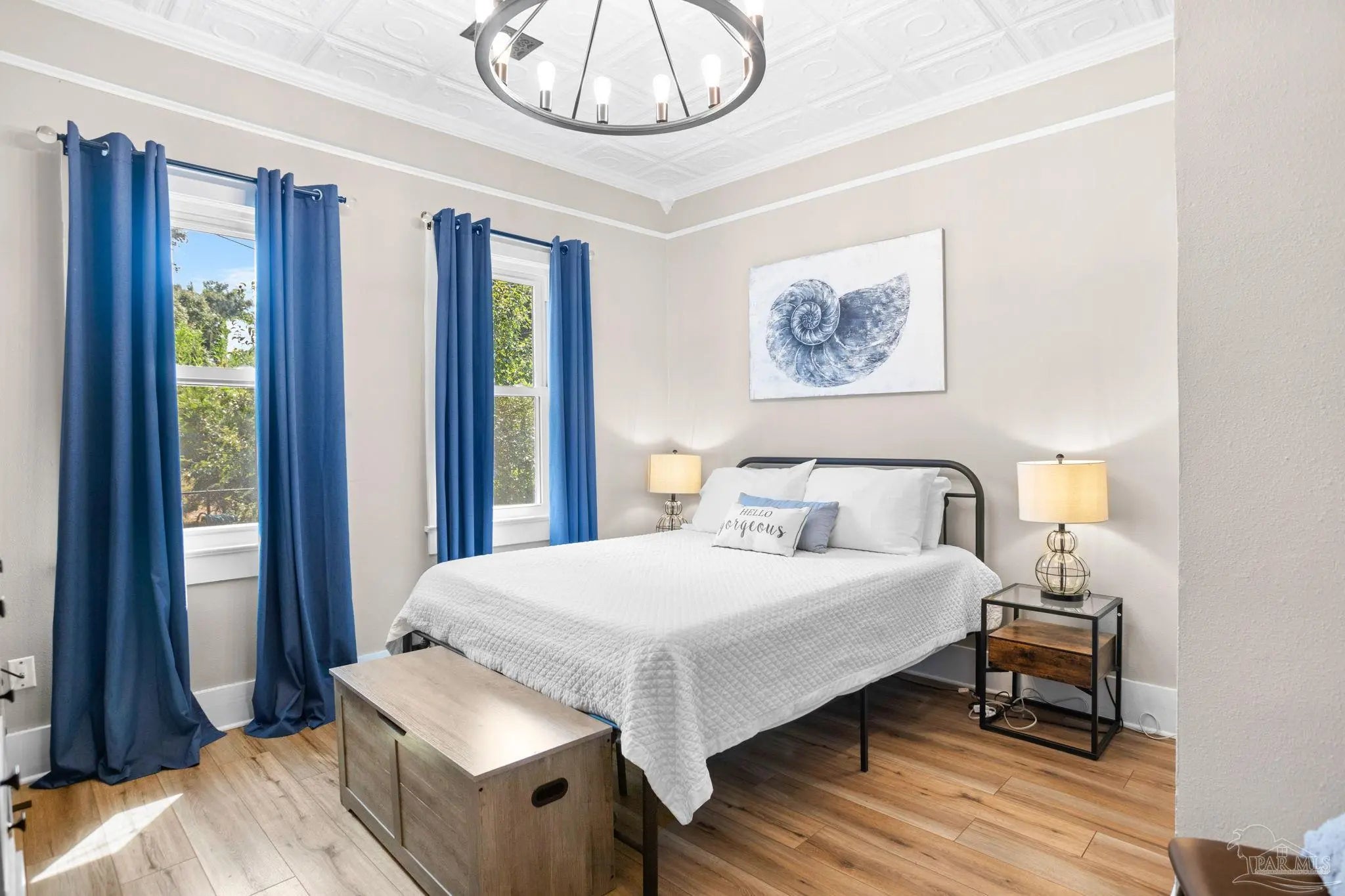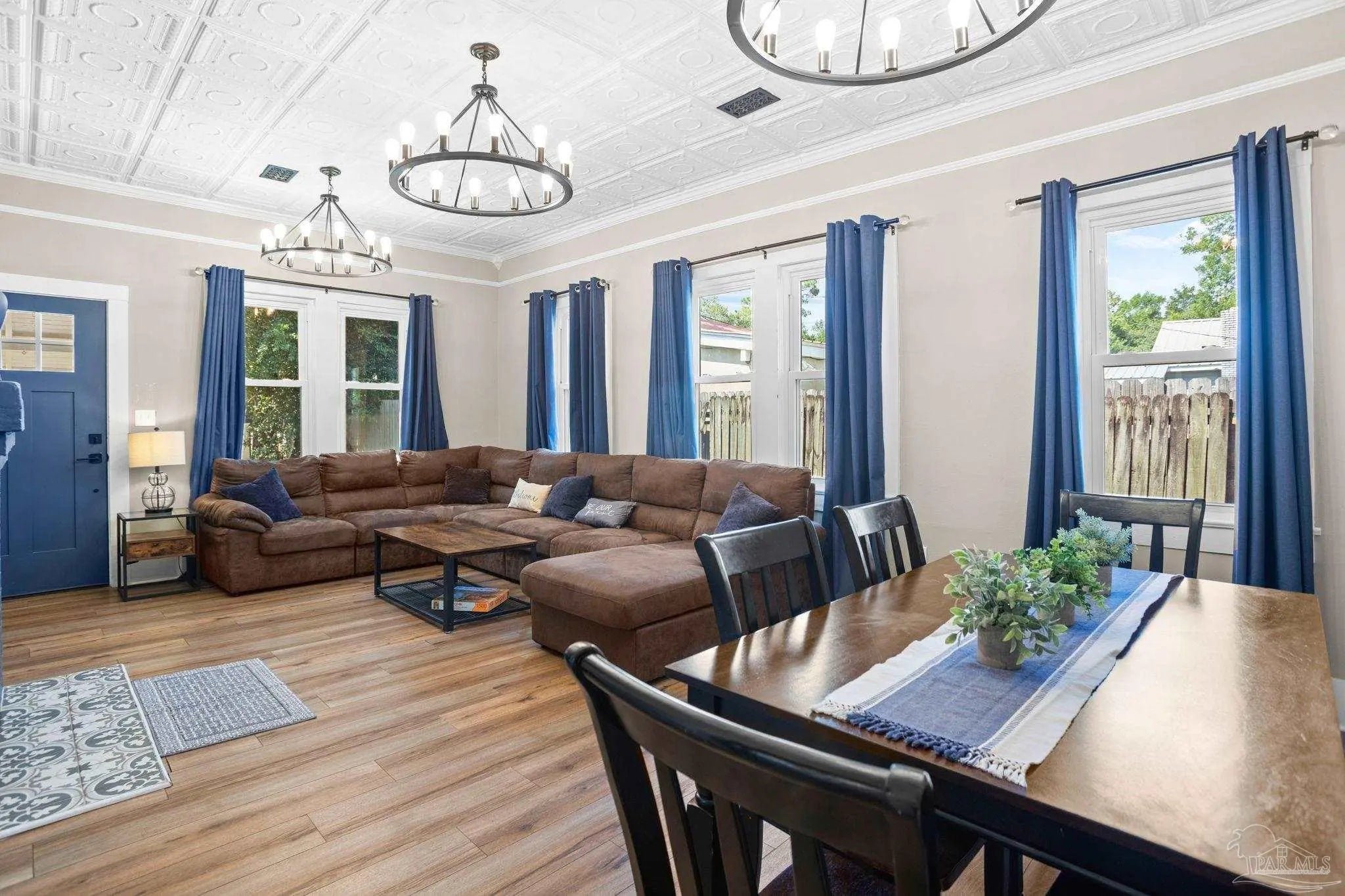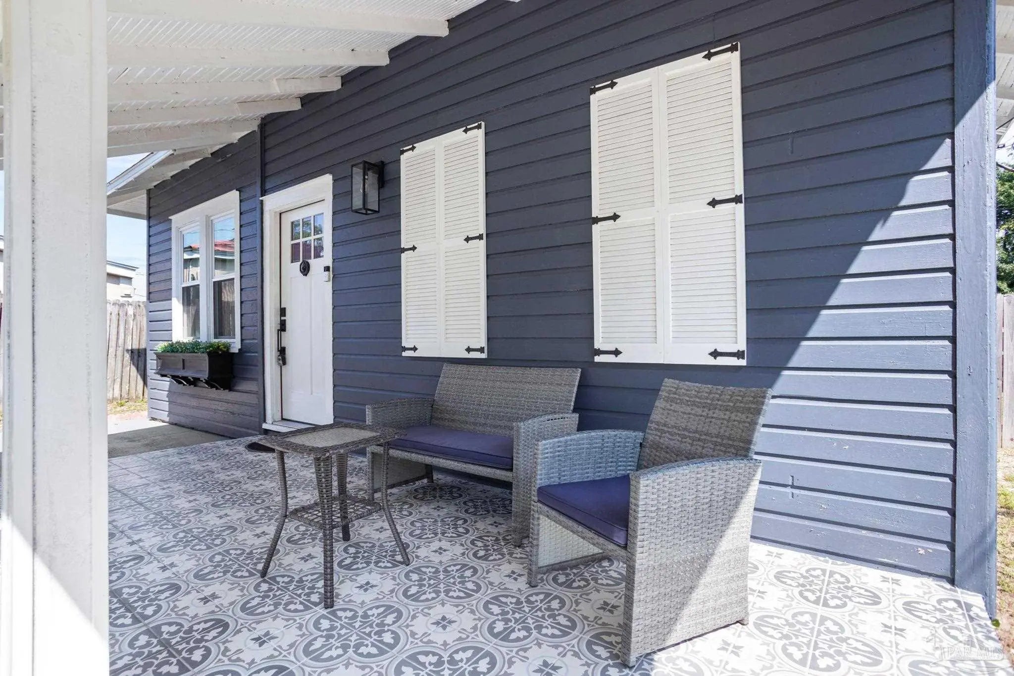 Step Back in Time with This Fully Remodeled Historic Charmer Built in 1931, this stunning home perfectly blends historic character with modern luxury. From the moment you arrive, the covered front porch, decorative ceiling tiles, and original wood doors and trim tell a story of timeless craftsmanship — while every modern upgrade ensures comfort and peace of mind. Inside, you’ll find soaring ceilings, crown molding, and a completely remodeled interior featuring all new appliances, a beautifully updated bath, new roof, updated lighting, and all new hurricane impact windows. Every detail has been thoughtfully chosen to preserve the home’s charm while adding contemporary style. The outdoor spaces are just as inviting — a privacy-fenced side yard, fully fenced front yard, and a beautiful courtyard connecting the home to the detached double garage (22x25). Perfect for morning coffee, evening gatherings, or simply enjoying your own private retreat. Additional upgrades include a whole home water filtration system, and best of all, the home is sold fully furnished — ready for you to move right in and start enjoying the charm and comfort of this rare gem. This one-of-a-kind property combines history, elegance, and modern convenience — a true historic treasure ready for its next chapter.