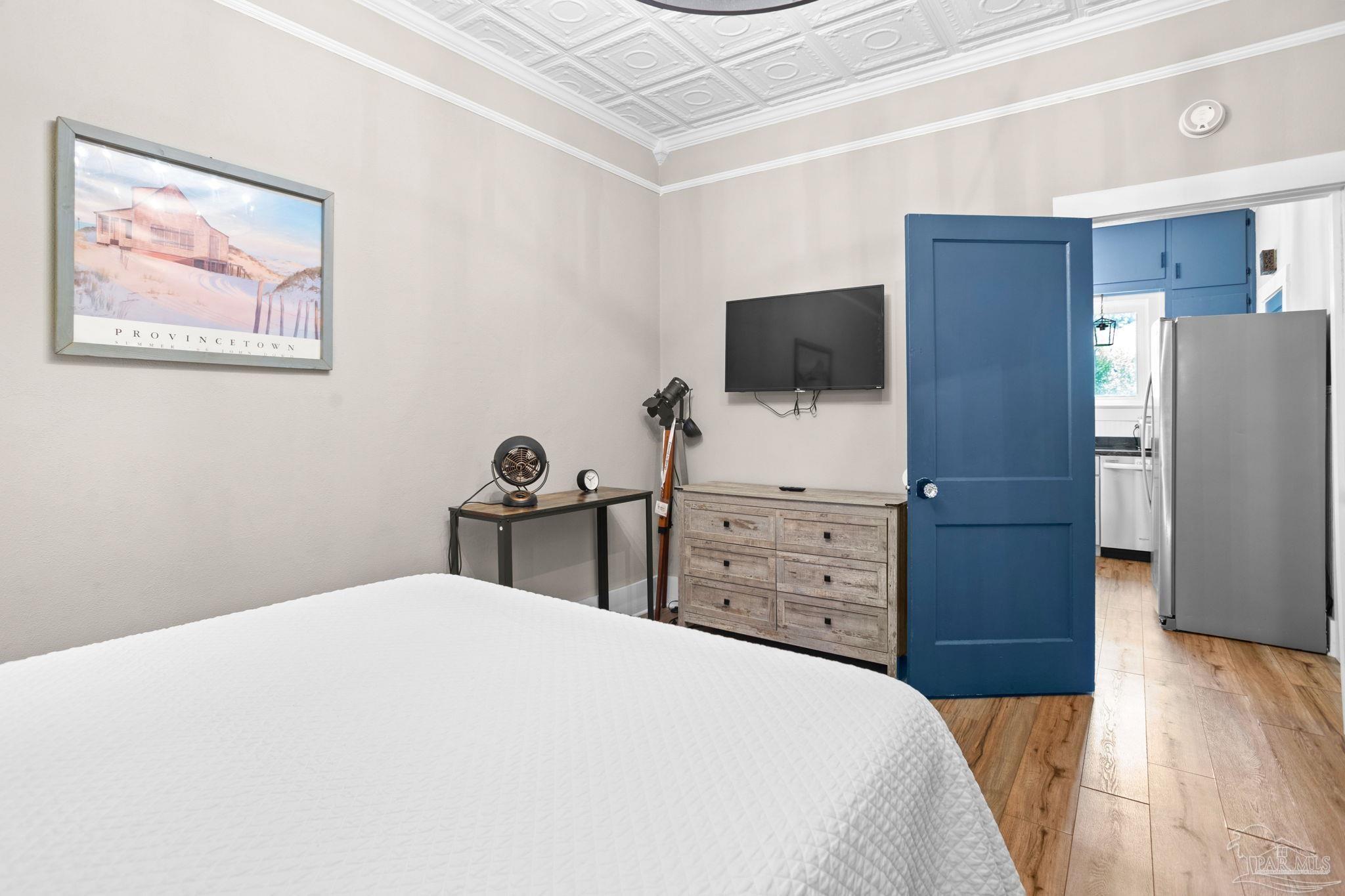 Step Back in Time with This Fully Remodeled Historic Charmer Built in 1931, this stunning home perfectly blends historic character with modern luxury. From the moment you arrive, the covered front porch, decorative ceiling tiles, and original wood doors and trim tell a story of timeless craftsmanship — while every modern upgrade ensures comfort and peace of mind. Inside, you’ll find soaring ceilings, crown molding, and a completely remodeled interior featuring all new appliances, a beautifully updated bath, new roof, updated lighting, and all new hurricane impact windows. Every detail has been thoughtfully chosen to preserve the home’s charm while adding contemporary style. The outdoor spaces are just as inviting — a privacy-fenced side yard, fully fenced front yard, and a beautiful courtyard connecting the home to the detached double garage (22x25). Perfect for morning coffee, evening gatherings, or simply enjoying your own private retreat. Additional upgrades include a whole home water filtration system, and best of all, the home is sold fully furnished — ready for you to move right in and start enjoying the charm and comfort of this rare gem. This one-of-a-kind property combines history, elegance, and modern convenience — a true historic treasure ready for its next chapter.