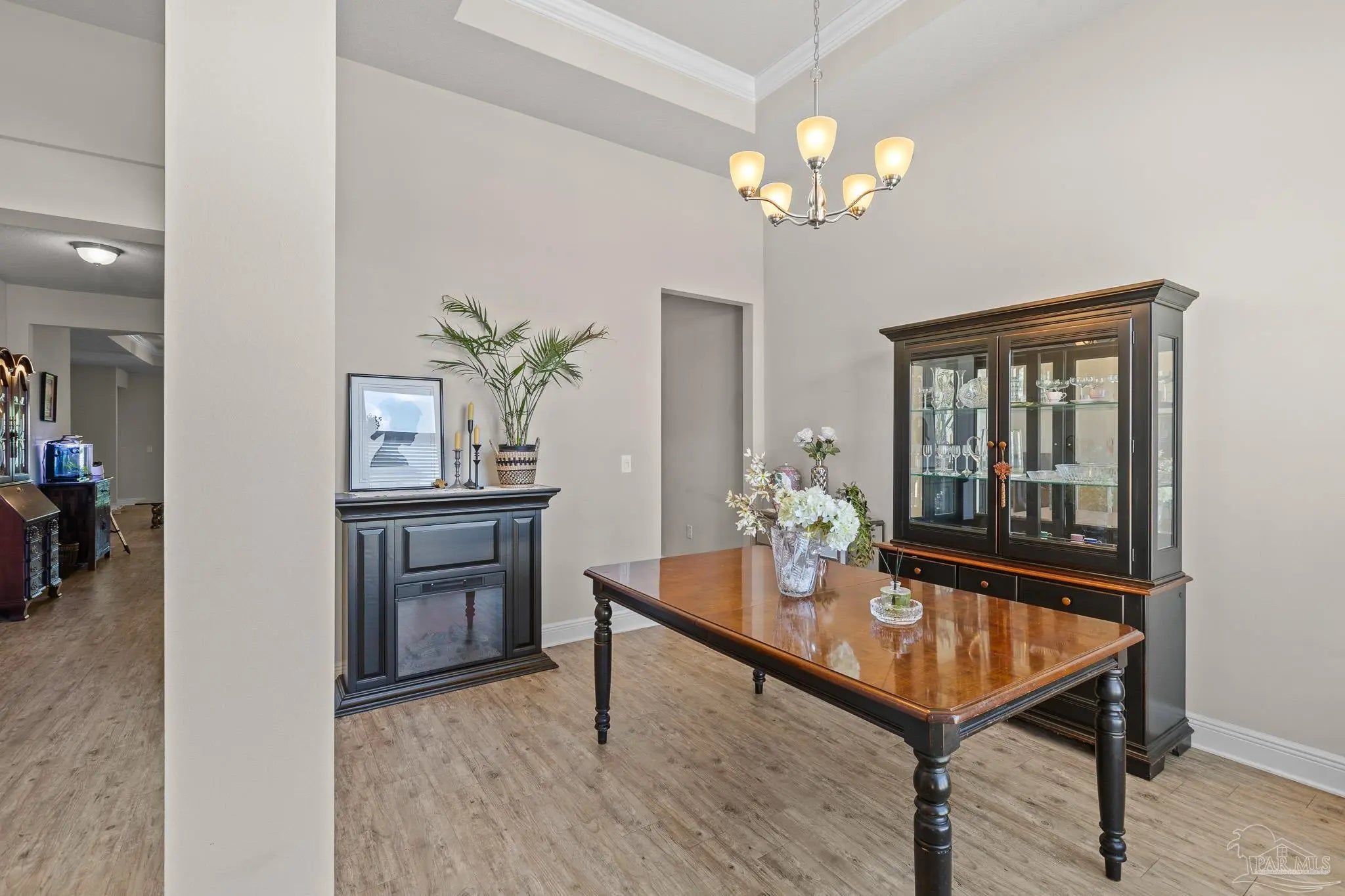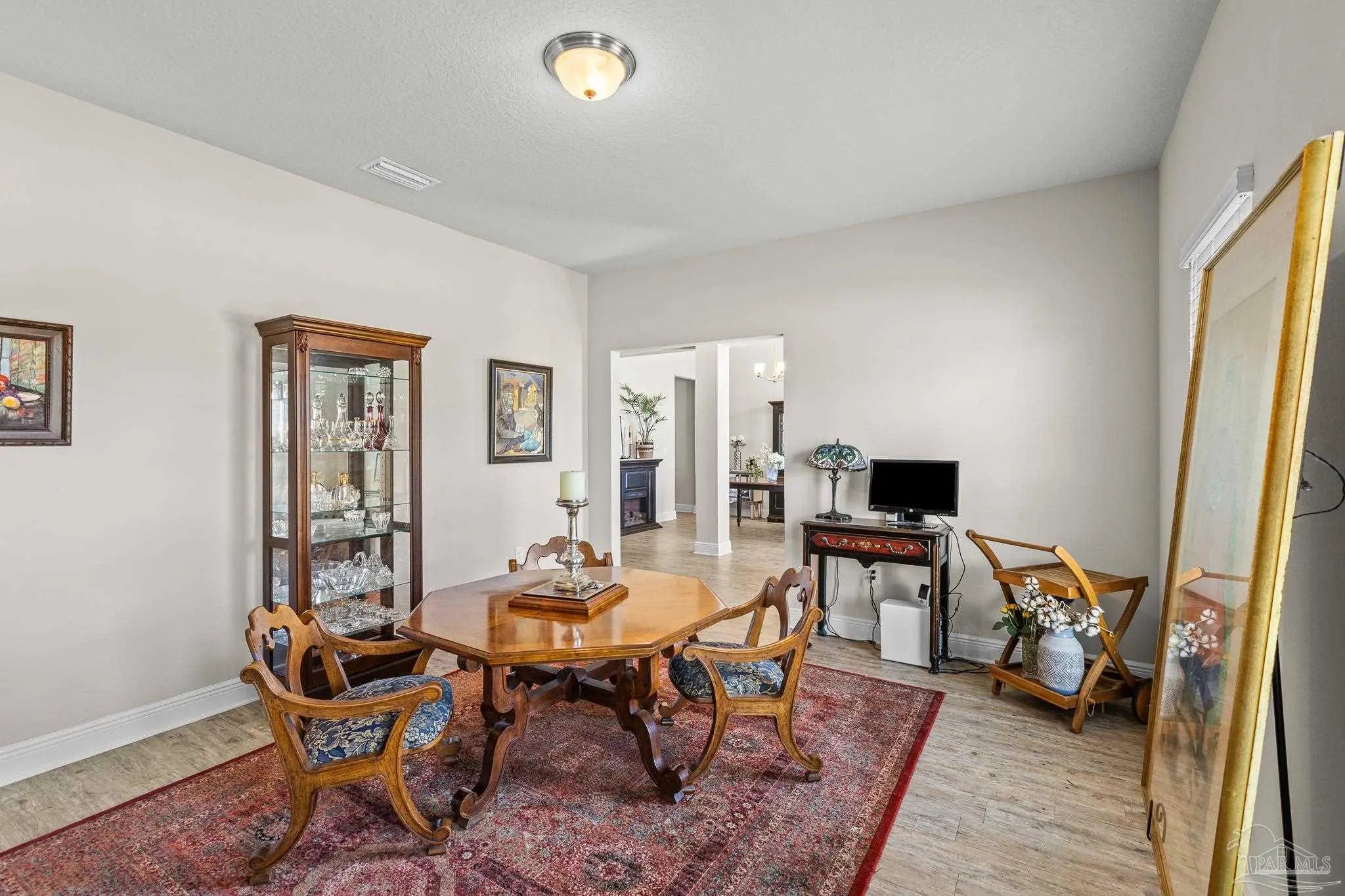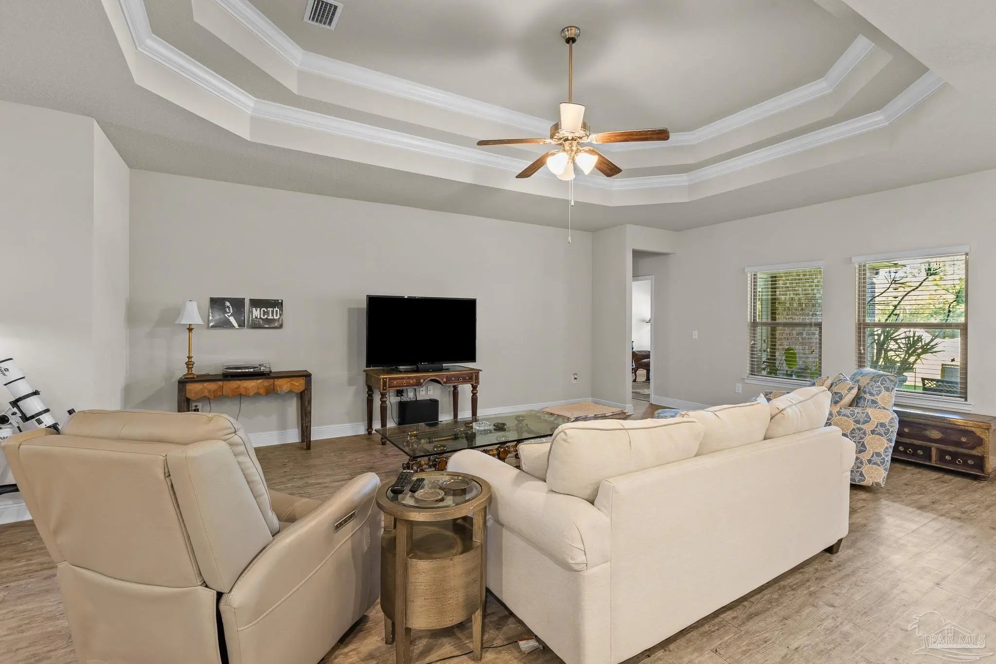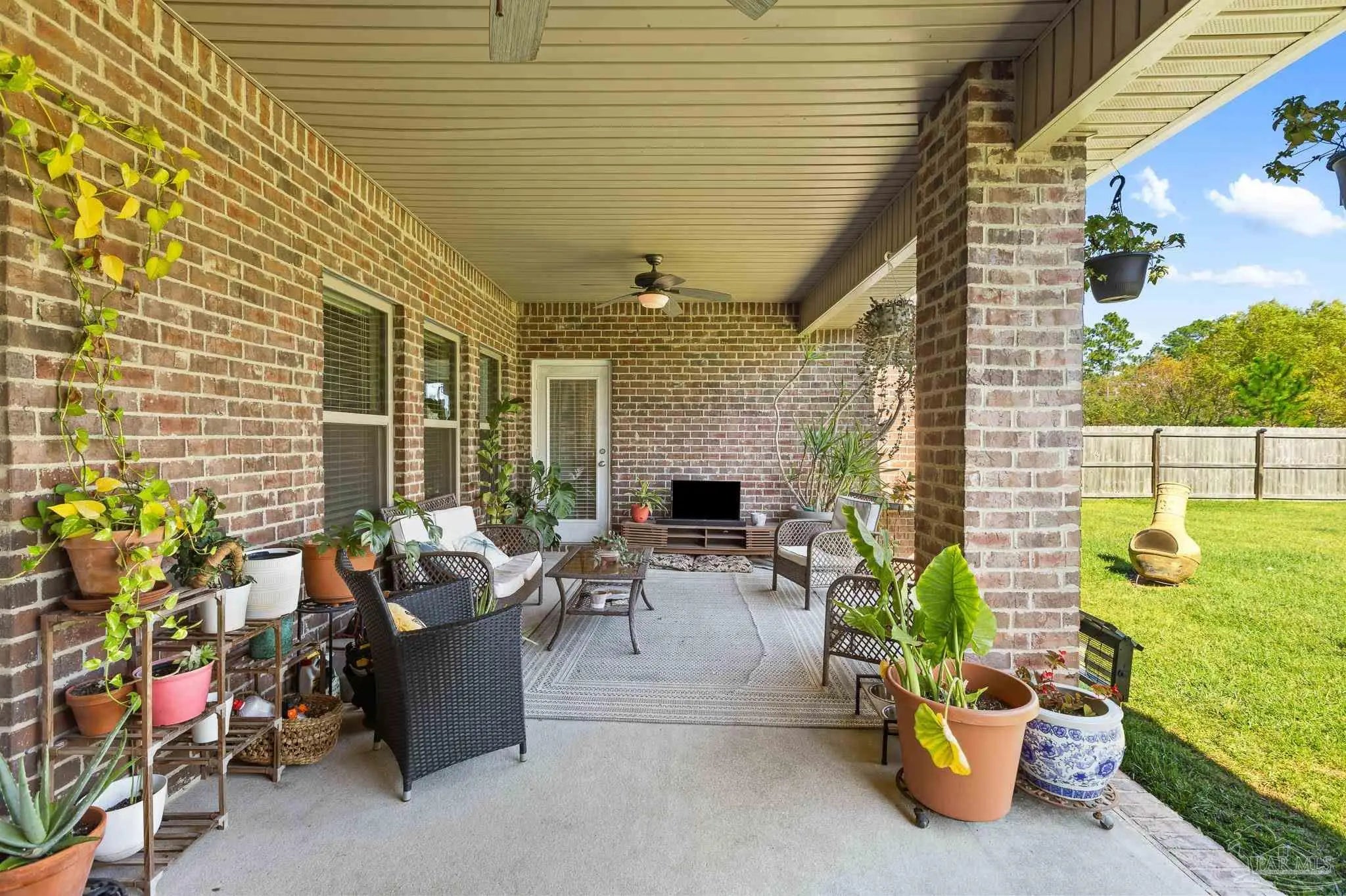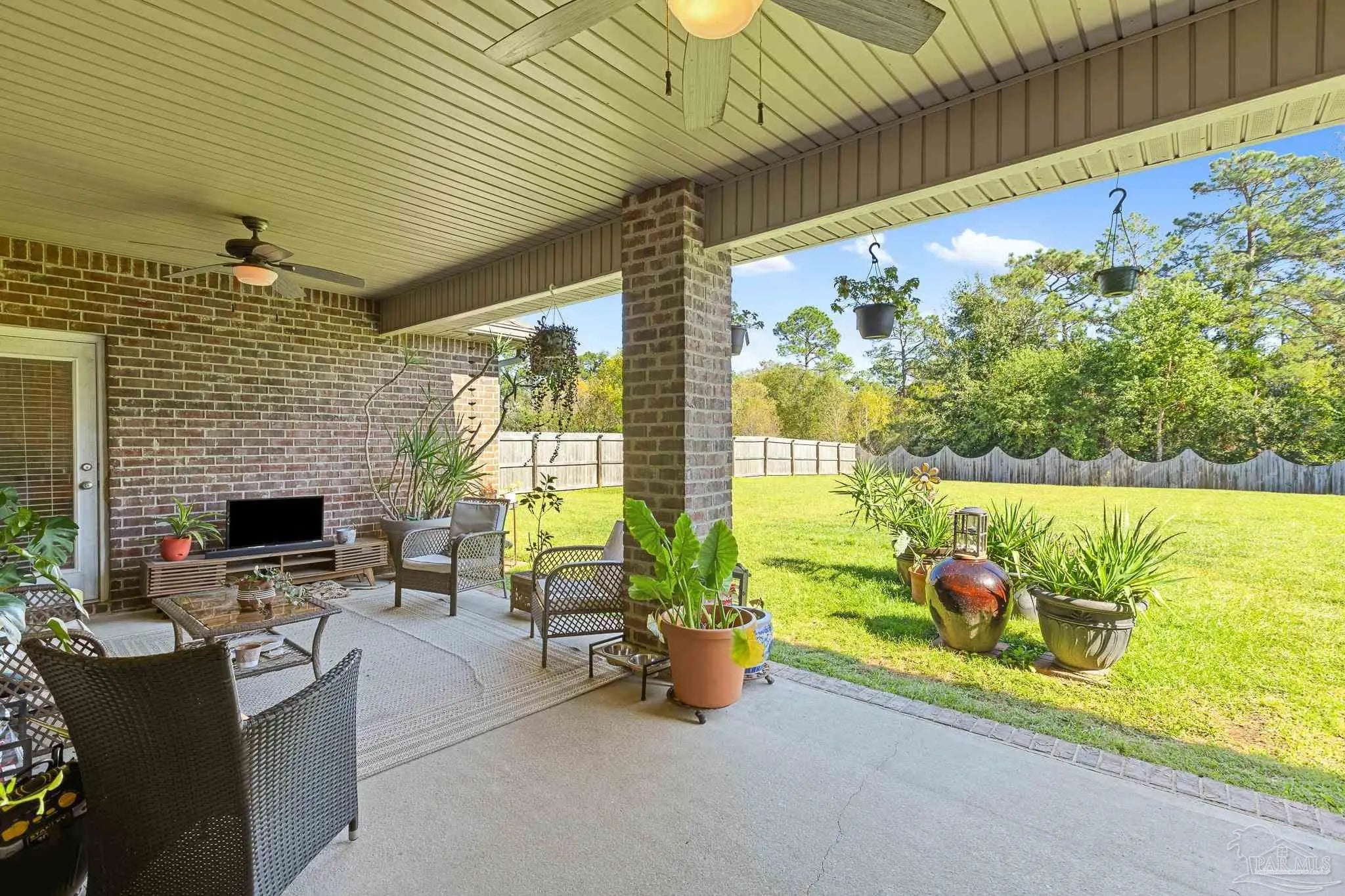 Experience the perfect blend of coastal charm, modern comfort, and timeless design in this beautifully maintained brick ranch home located in the heart of Navarre, Florida—a friendly seaside town known for its pristine white-sand beaches and laid-back lifestyle. Just a short drive from the sparkling Gulf of Mexico, this spacious 5-bedroom, 3-bathroom home welcomes you with manicured landscaping and a bright, open floor plan designed for easy living and entertaining. Step inside to find a sunlit home office and an elegant formal dining room, ideal for hosting family dinners or holiday gatherings. The living room features a tray ceiling and flows seamlessly into the well-appointed kitchen, complete with granite countertops, abundant cabinetry, stainless steel appliances, and a large eat-in island that’s perfect for casual meals or morning coffee. Retreat to the primary suite, where you’ll find a peaceful sanctuary with a spa-like en suite bathroom and generous walk-in closet. Outside, a large covered patio overlooks a private, fenced backyard—perfect for relaxing evenings, playtime, or weekend barbecues. Recent updates also include a newer water heater installed in 2024. Located just minutes from the vibrant Navarre Parkway corridor, you’ll have quick access to local favorites like waterfront dining, boutique shops, and everyday conveniences. Top-rated schools, nearby shopping, and the iconic Navarre Beach—known as “Florida’s Most Relaxing Place”—make this home an exceptional find for anyone seeking comfort, community, and coastal living at its best. You don't want to miss this one!
