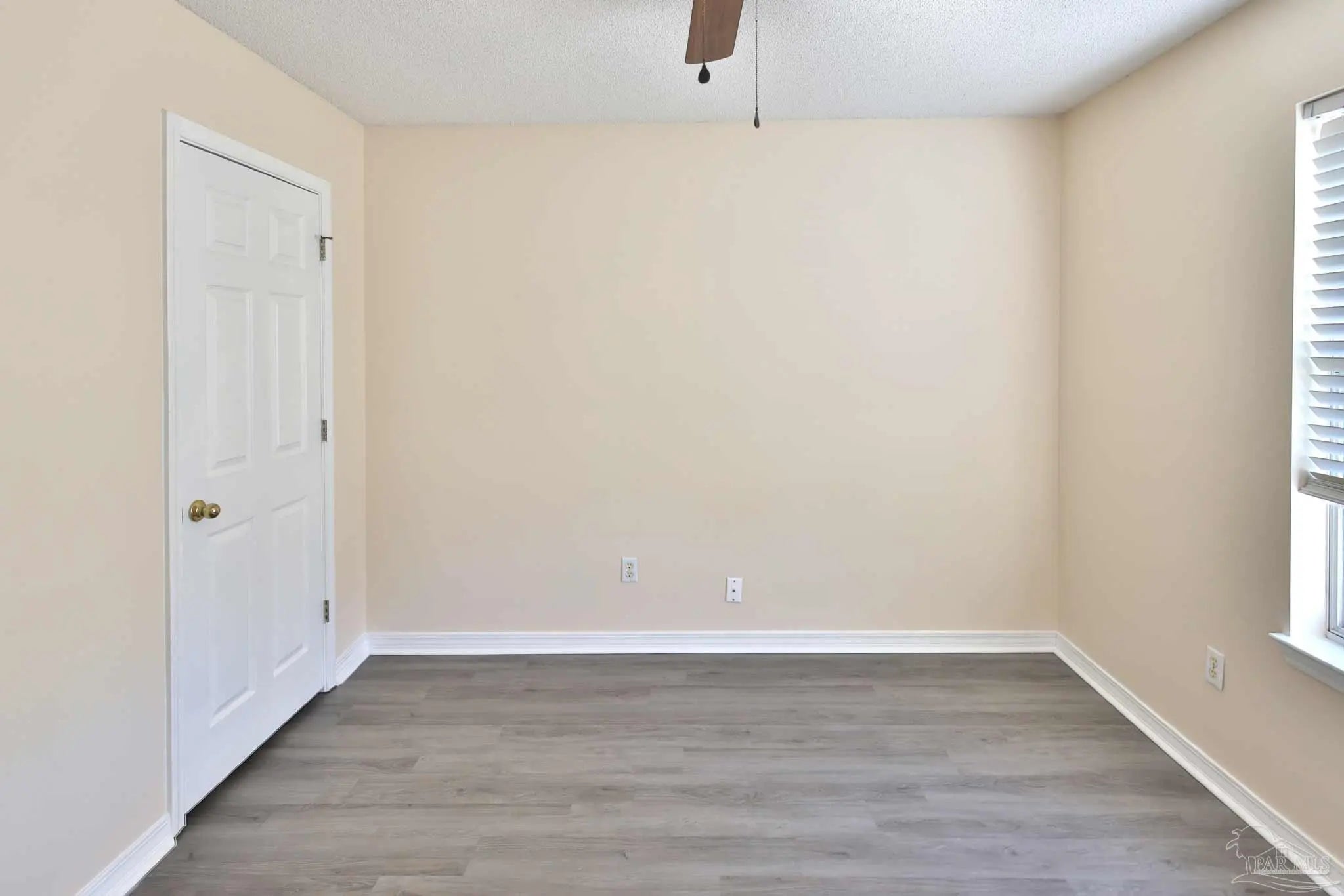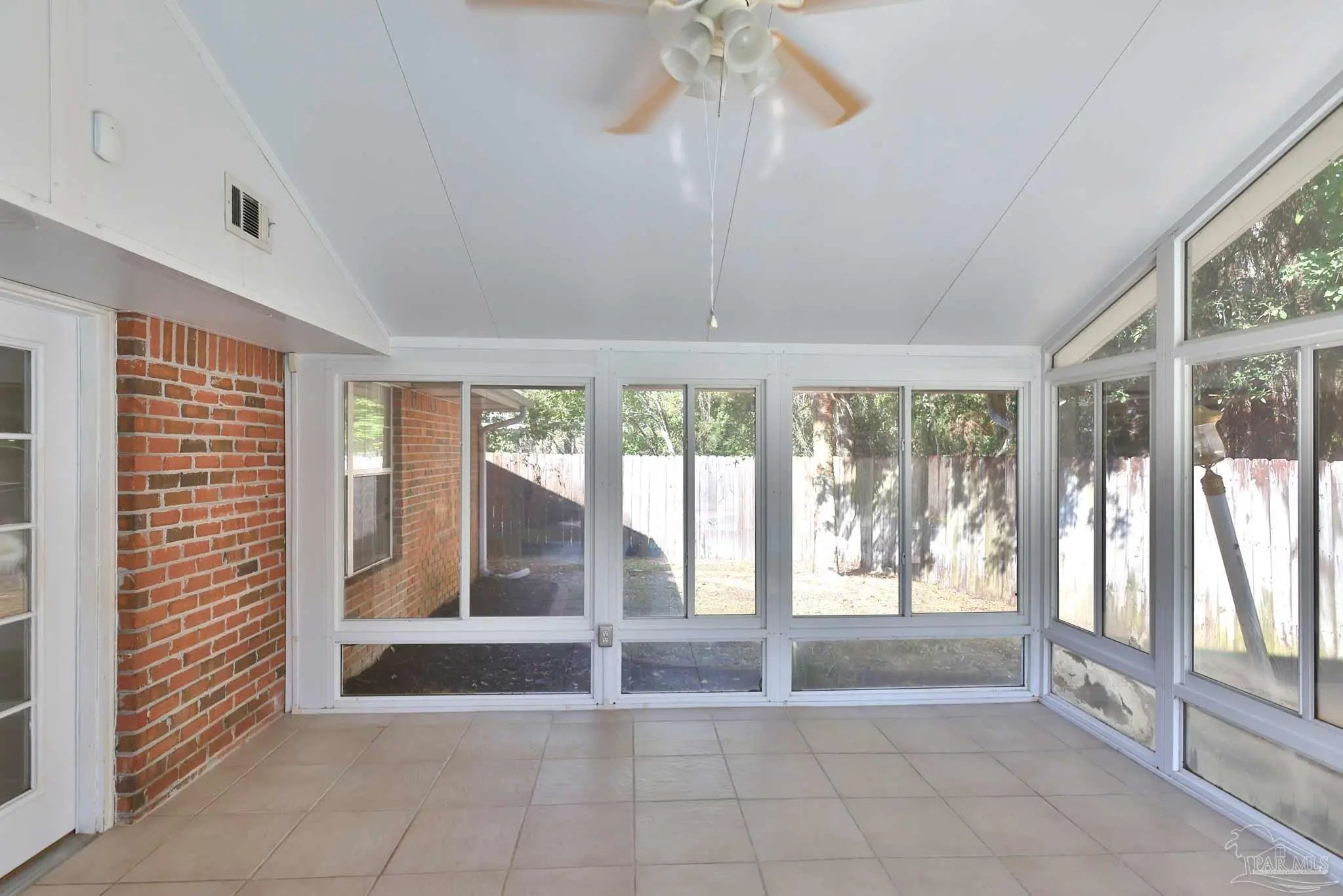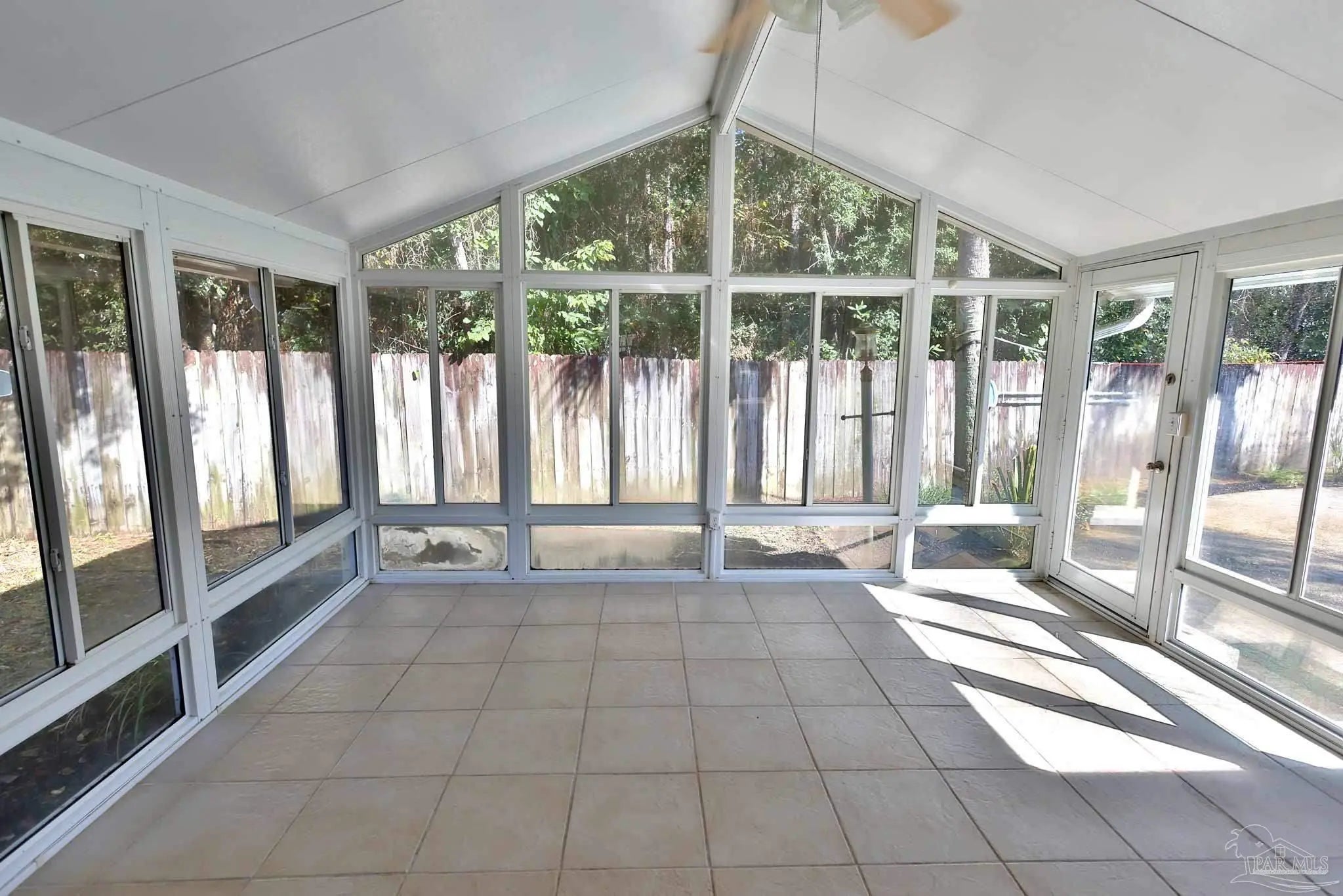Wonderful 3 bedroom, 2 bath, brick home with a salt water pool located on a cul-de-sac in a great neighborhood! Walking distance to West Navarre Elementary School and to Whataburger! Just a short drive to the white sand beaches of Navarre Beach! The home is freshly painted and has high ceilings and a split bedroom floorplan. Kitchen and dining area are open to the living room, plus there is a heated and cooled Florida room off of the living room. LVP and tile flooring throughout the home - No carpet! The lot is landscaped with plenty of palm trees and sago palms and has a privacy fenced yard and a storage building. The back yard has plenty of privacy as it backs up to a wooded area owned by the school. Newer roof, AC, and brand new fridge! This is a great buy for a pool home in a great neighborhood - call today for a showing!