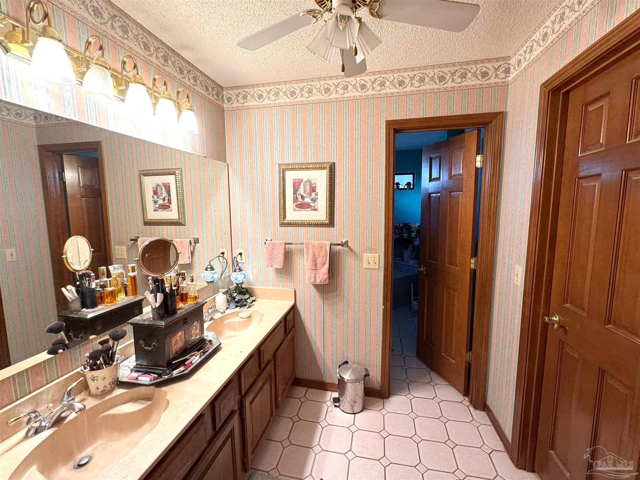 Opportunity knocks by the Bluewater Bay Golf Course! This 3-bedroom, 2-bath, 2-story home with over 2,000 square feet and a private pool is ready for someone with vision to bring it back to life. Whether you’re an investor looking for a solid fix-and-flip or a homeowner wanting to build instant equity, this property is priced with repairs in mind. Set on a quiet street overlooking the golf course, the home offers a fantastic layout and great bones. The spacious living room features a white brick fireplace and connects to a large dining room filled with natural light and crown molding details. The kitchen has solid wood cabinetry, tile floors, and bar seating that opens to a sunny breakfast area. A large downstairs primary suite includes access to the pool deck and a spacious bath with jetted tub, separate shower, and double vanity. Upstairs, the open landing adds flexibility for an office or sitting area. Outside, the backyard offers a private pool, mature landscaping, and direct views of the golf course tee—ideal for relaxing or entertaining. With no HOA and tons of potential, this home is the perfect project for someone ready to create a standout property in one of Niceville’s most desirable areas.