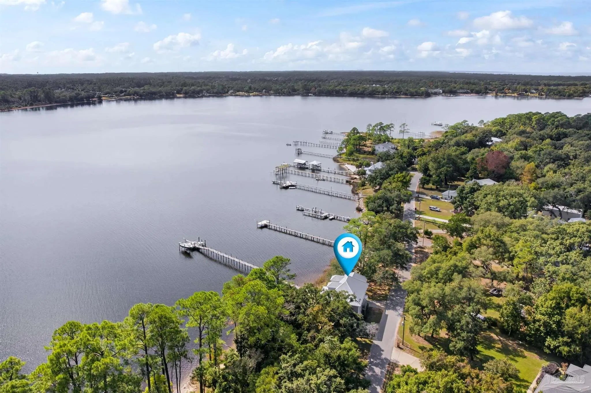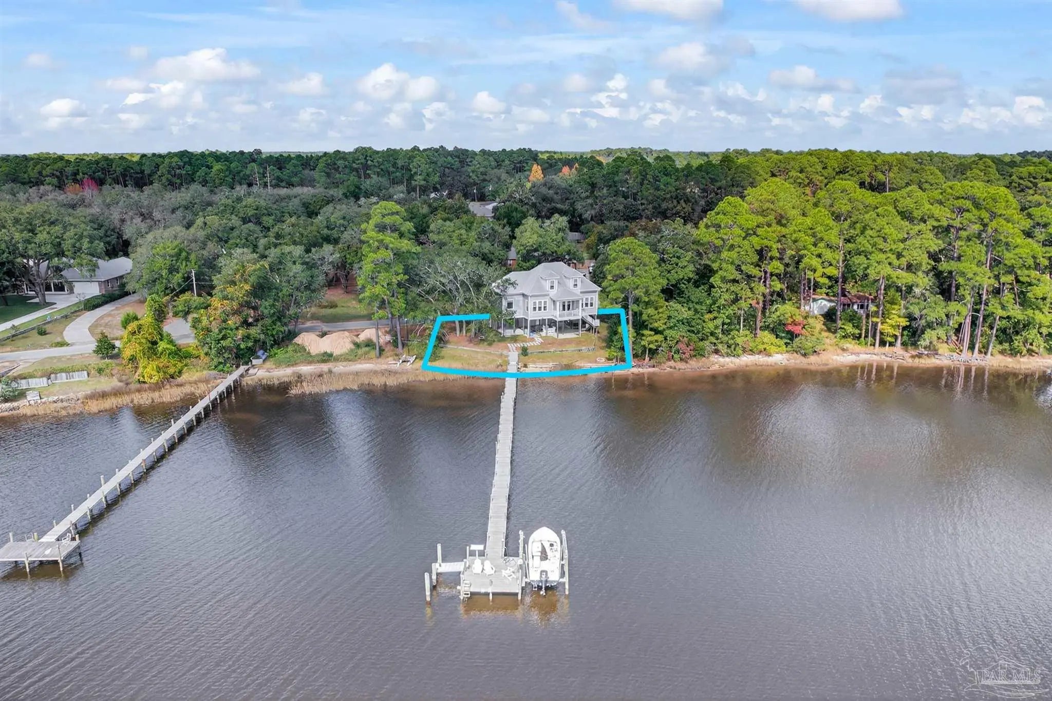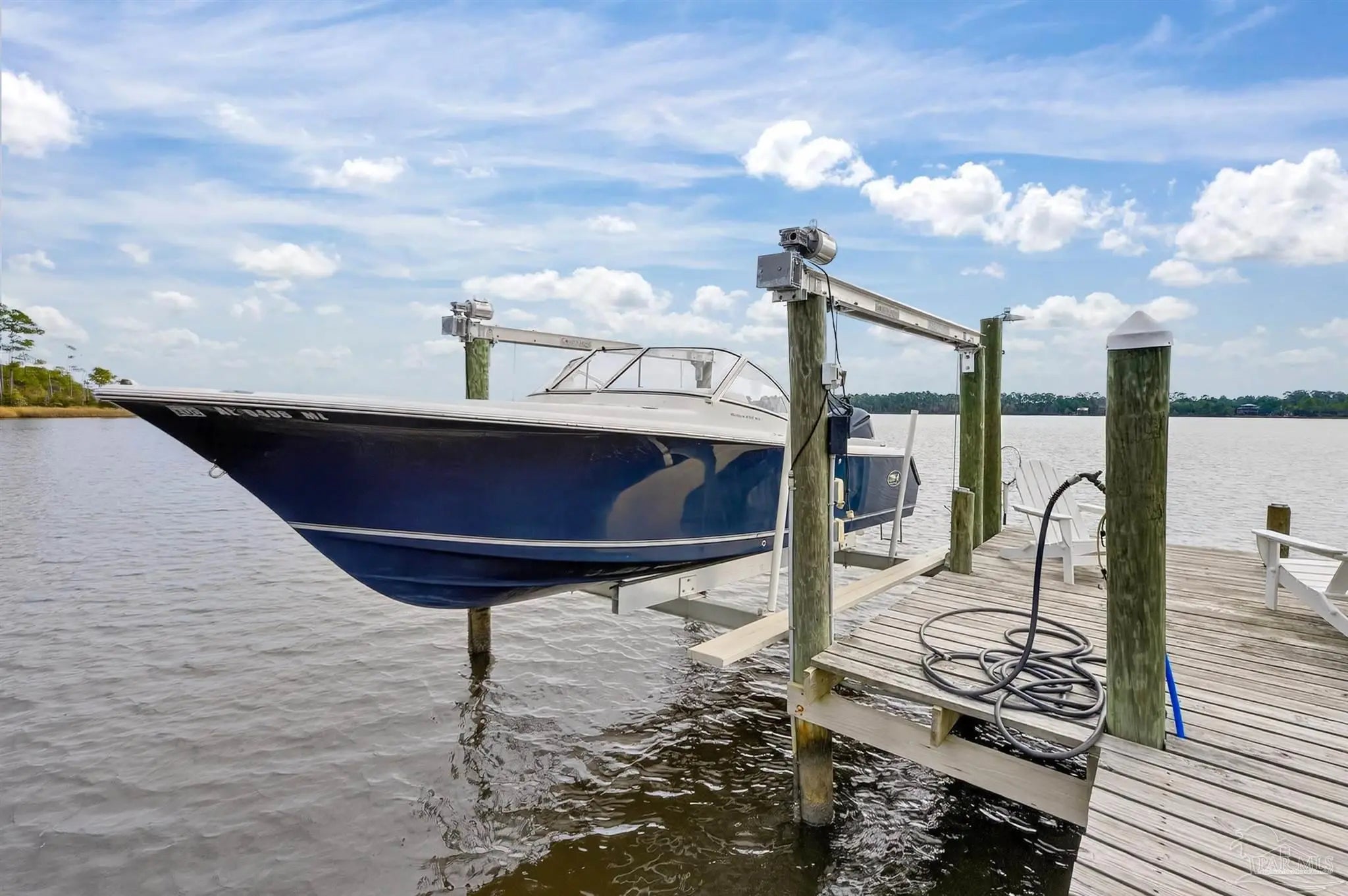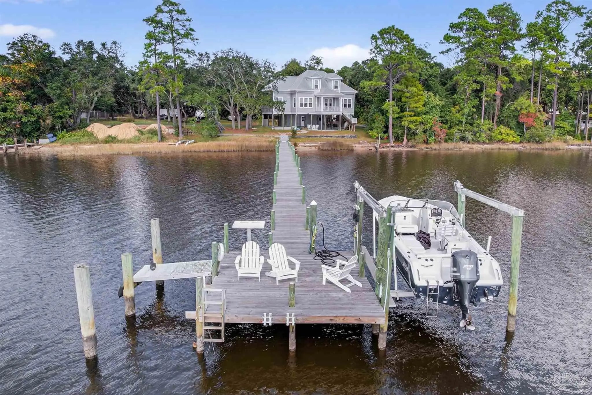 Welcome to 2975 Holley Point Rd in Navarre, FL, where coastal charm meets modern convenience. This lovely waterfront home spans 2,242 sf and offers quality craftsmanship combined with style and comfort. With 3 spacious bedrooms and 2.5 bathrooms, this residence is designed to meet the needs of today's discerning homeowner or investor. The raised design of the home provides an inviting entrance into a beautifully laid-out interior with sweeping bay views. The open floor plan seamlessly connects the living spaces, creating an ideal environment for both relaxation and entertaining. High ceilings and large windows allow stunning water views and natural light to fill the rooms, while highlighting the home's thoughtful finishes and details. The expansive living area flows into a well-appointed kitchen complete with ample counter space and cabinetry, making it a dream for those who love to cook and entertain. The primary suite offers a private retreat with a view including an en-suite bathroom with tiled walk in shower and soaking tub, plus a large walk in closet, providing a serene space with a view to unwind at the end of the day. Outside enjoy a delightful constant breeze, large oak trees and a gently sloping lawn leading to a private dock with an 8000 lb. boat lift right on East Bay! Watch dolphins and ospreys, launch kayaks and paddleboards or fish for dinner from the dock of your private oasis. This is the best of FL waterfront living! The ground level offers covered parking, a large storage room and an additional finished bonus space including full bath, currently used as extra sleeping room. There is room for a future elevator. Situated in the desirable Holley Point area, this property promises a lifestyle of tranquility and convenience with easy access to the interstate and just a short distance from the stunning beaches of Navarre. This home would make a perfect primary residence, second home or vacation rental - the possibilities are endless.