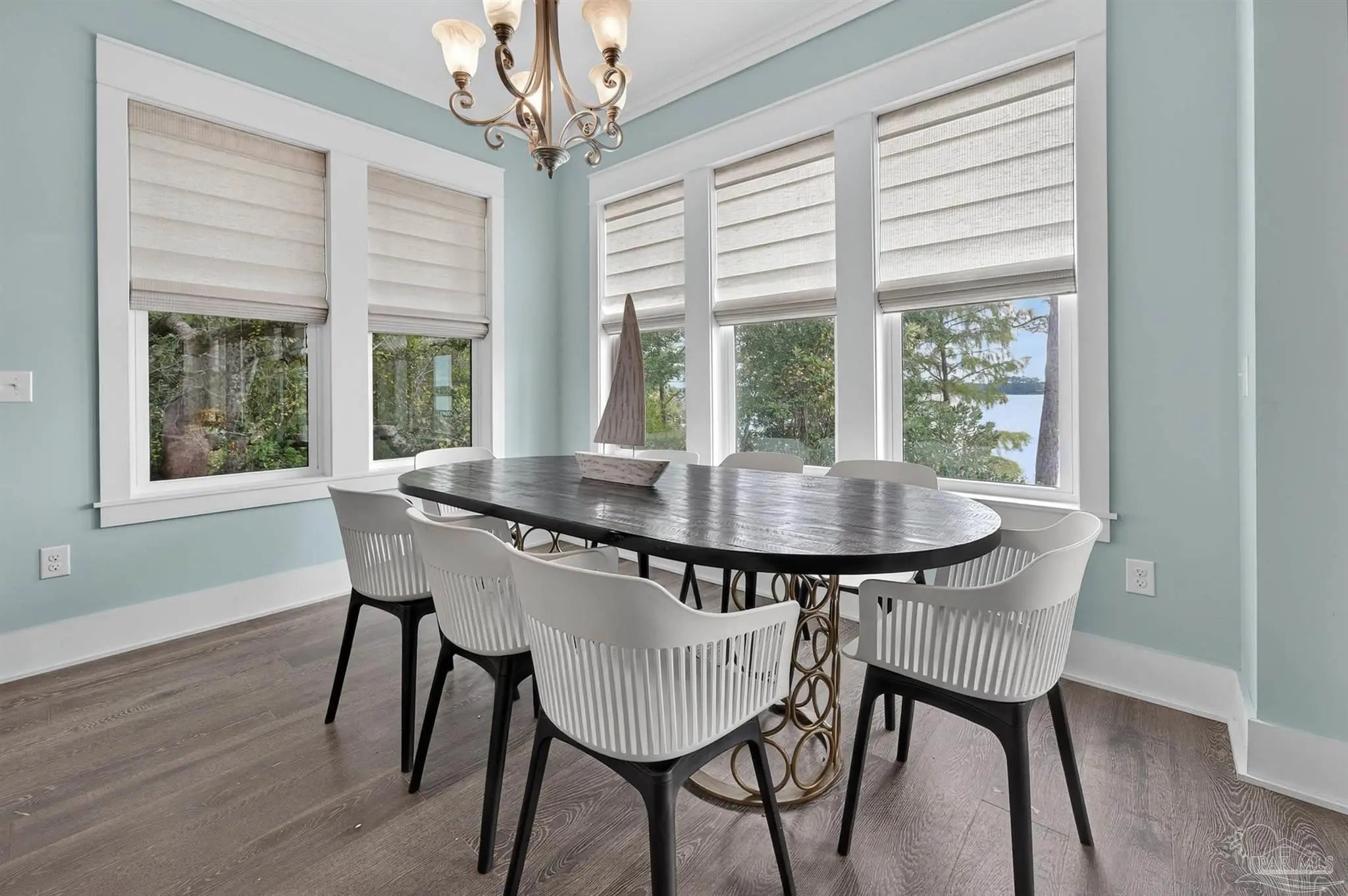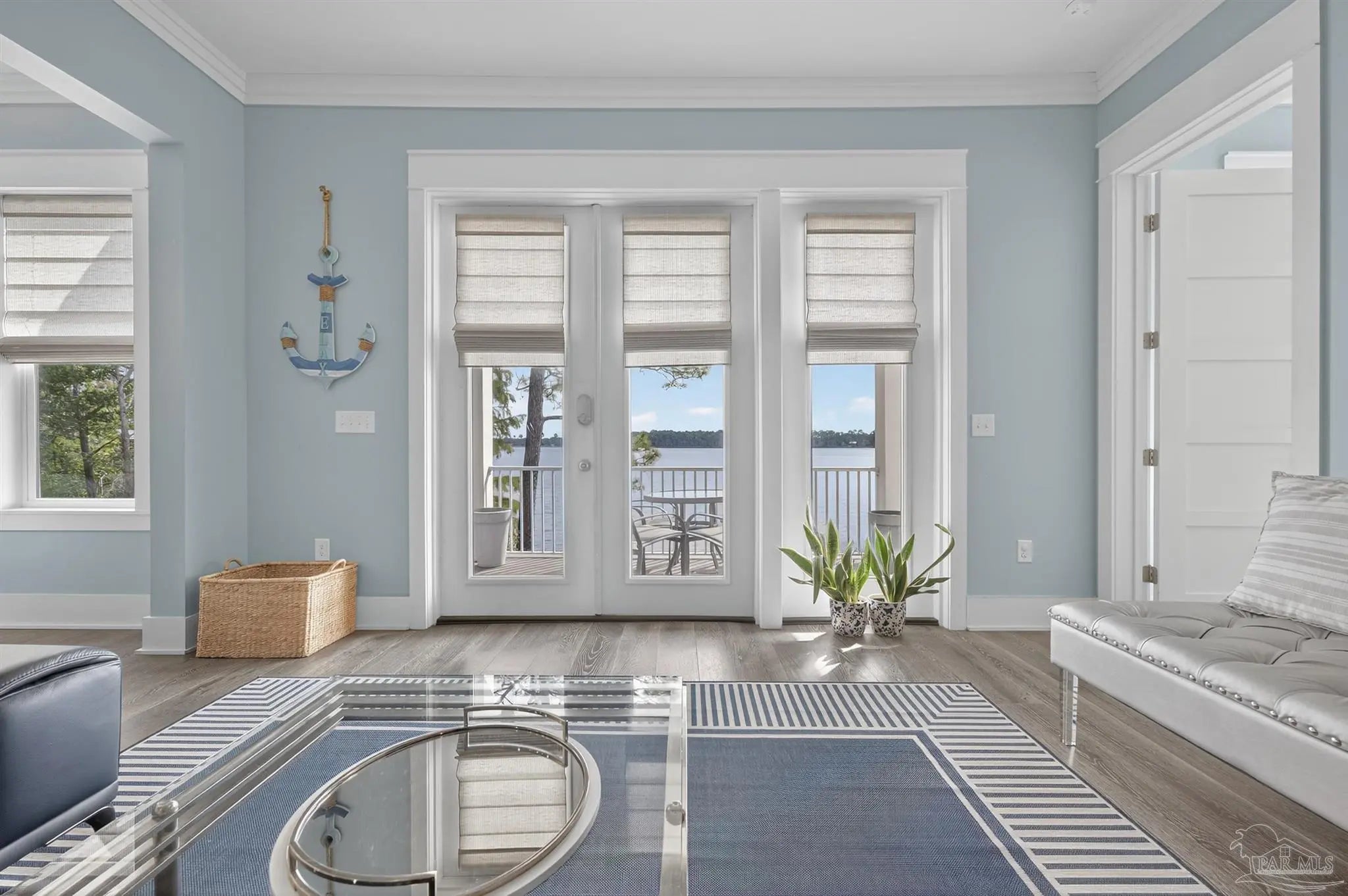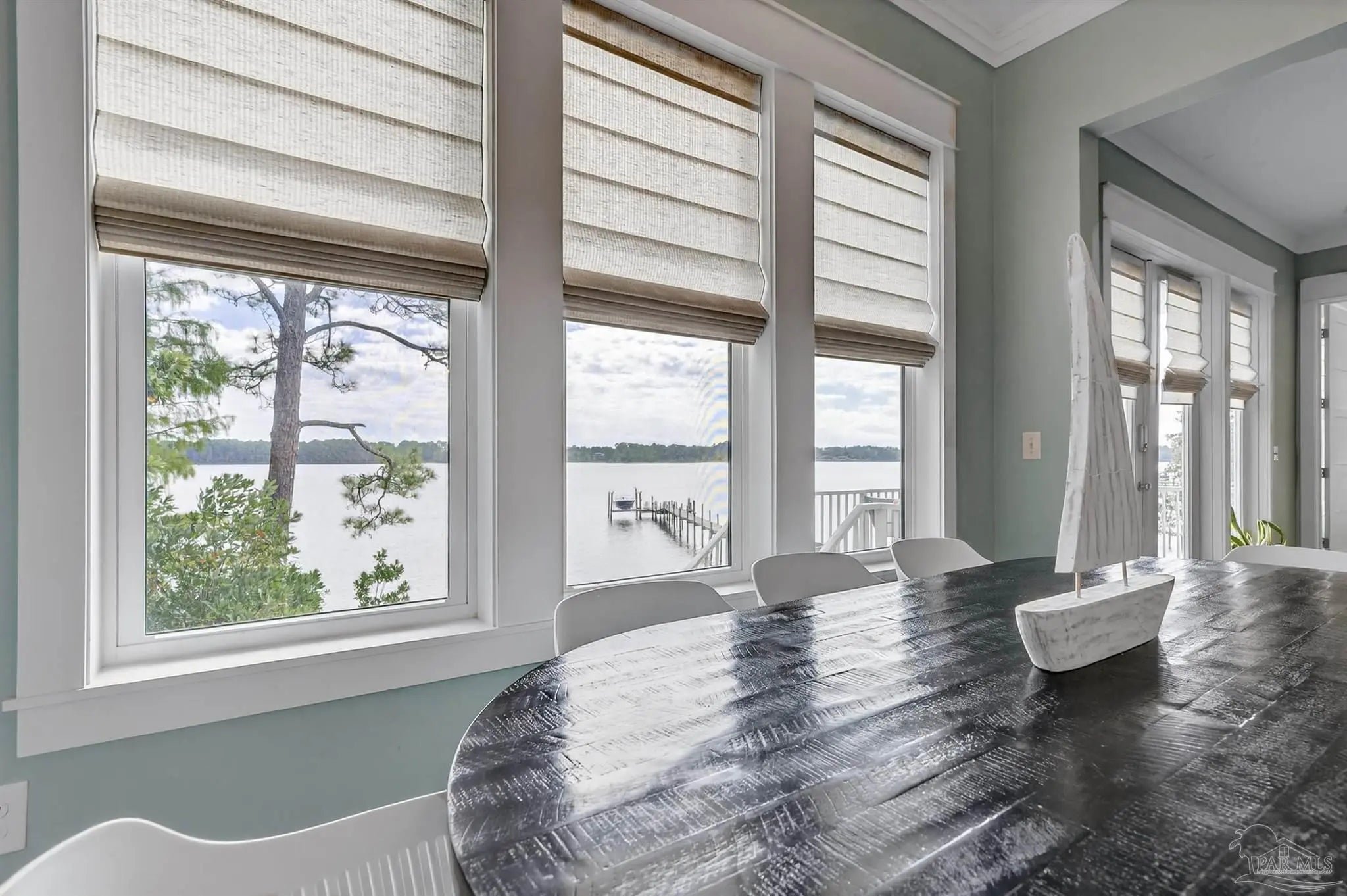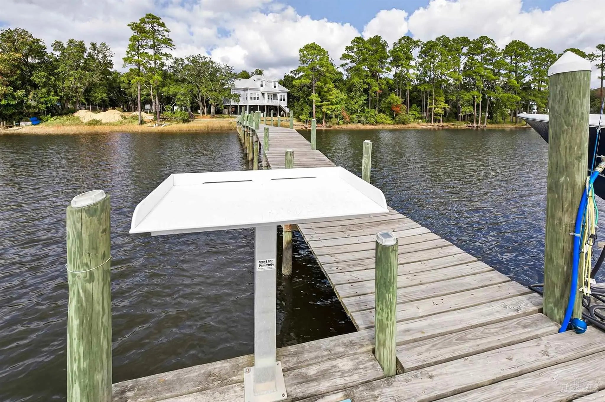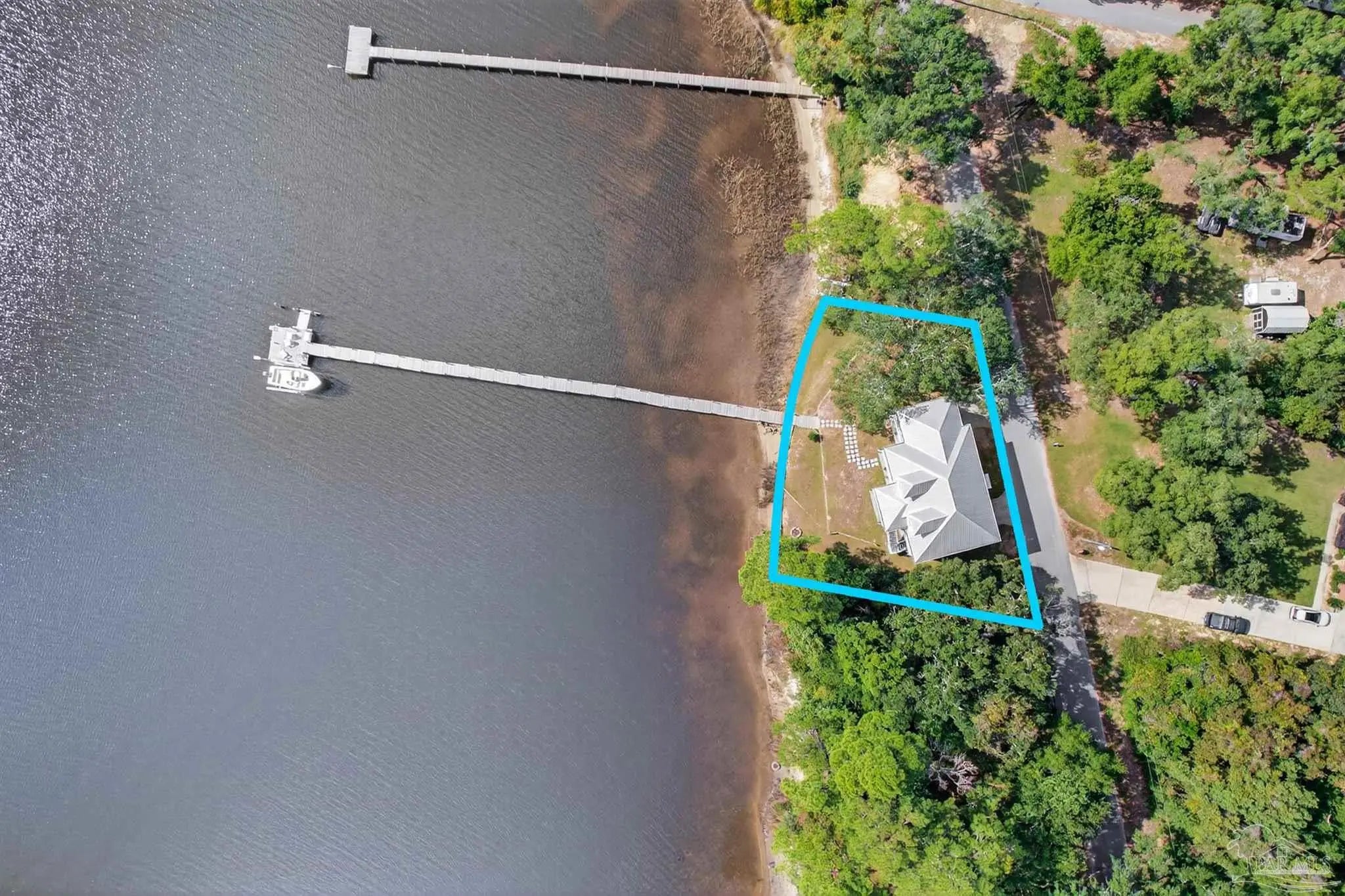 Welcome to 2975 Holley Point Rd in Navarre, FL, where coastal charm meets modern convenience. This lovely waterfront home spans 2,242 sf and offers quality craftsmanship combined with style and comfort. With 3 spacious bedrooms and 2.5 bathrooms, this residence is designed to meet the needs of today's discerning homeowner or investor. The raised design of the home provides an inviting entrance into a beautifully laid-out interior with sweeping bay views. The open floor plan seamlessly connects the living spaces, creating an ideal environment for both relaxation and entertaining. High ceilings and large windows allow stunning water views and natural light to fill the rooms, while highlighting the home's thoughtful finishes and details. The expansive living area flows into a well-appointed kitchen complete with ample counter space and cabinetry, making it a dream for those who love to cook and entertain. The primary suite offers a private retreat with a view including an en-suite bathroom with tiled walk in shower and soaking tub, plus a large walk in closet, providing a serene space with a view to unwind at the end of the day. Outside enjoy a delightful constant breeze, large oak trees and a gently sloping lawn leading to a private dock with an 8000 lb. boat lift right on East Bay! Watch dolphins and ospreys, launch kayaks and paddleboards or fish for dinner from the dock of your private oasis. This is the best of FL waterfront living! The ground level offers covered parking, a large storage room and an additional finished bonus space including full bath, currently used as extra sleeping room. There is room for a future elevator. Situated in the desirable Holley Point area, this property promises a lifestyle of tranquility and convenience with easy access to the interstate and just a short distance from the stunning beaches of Navarre. This home would make a perfect primary residence, second home or vacation rental - the possibilities are endless.