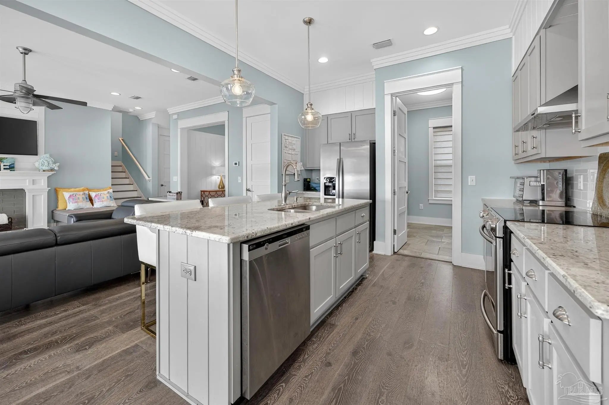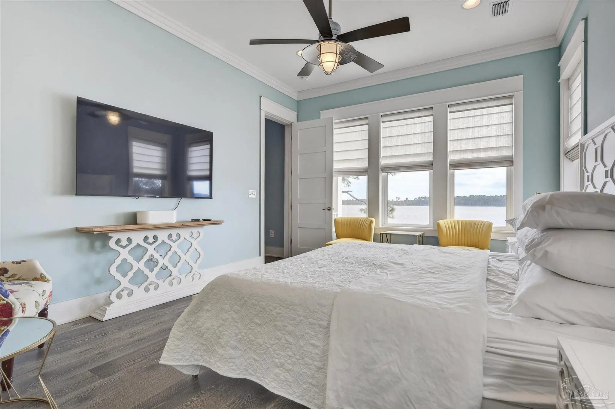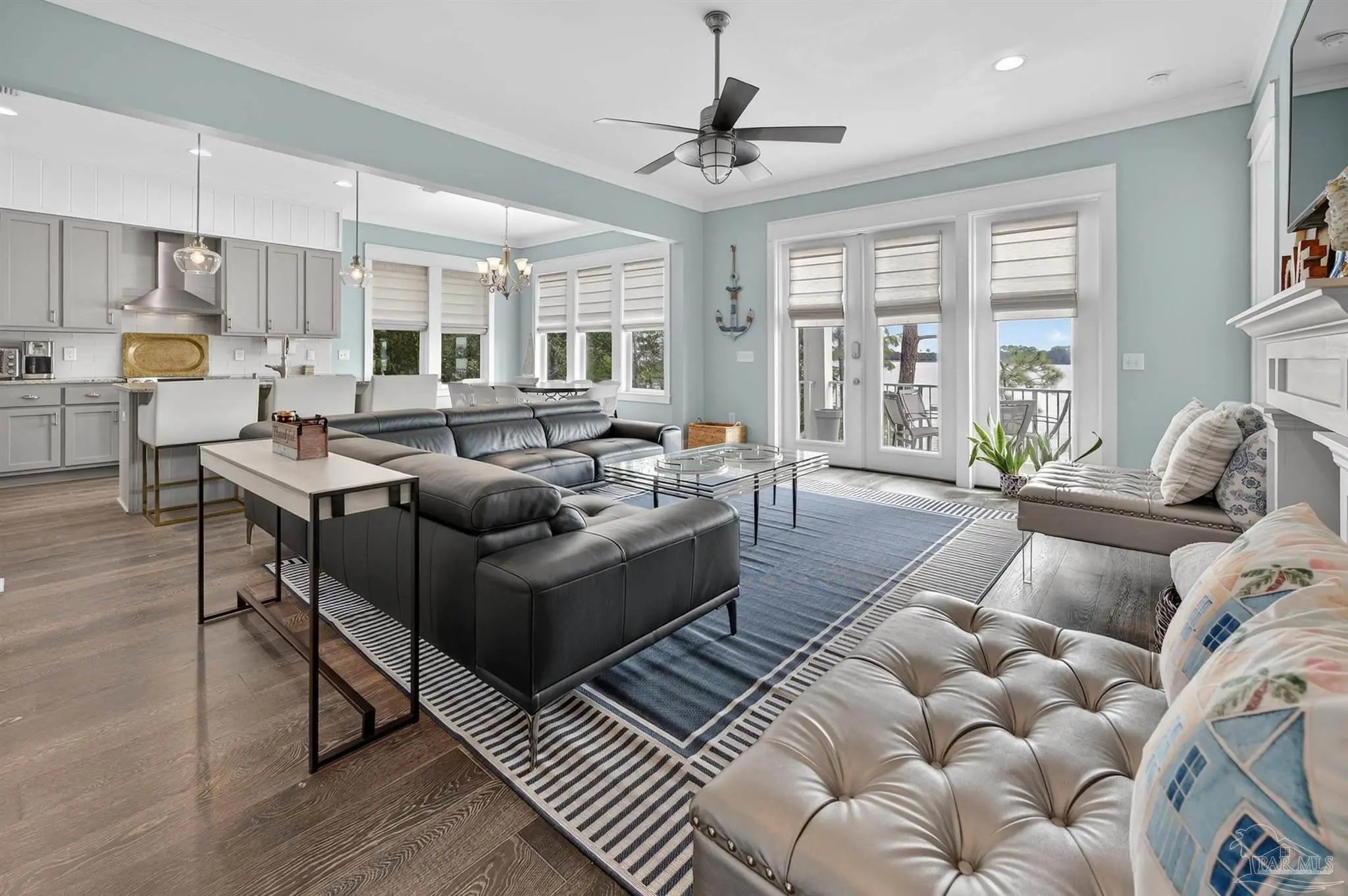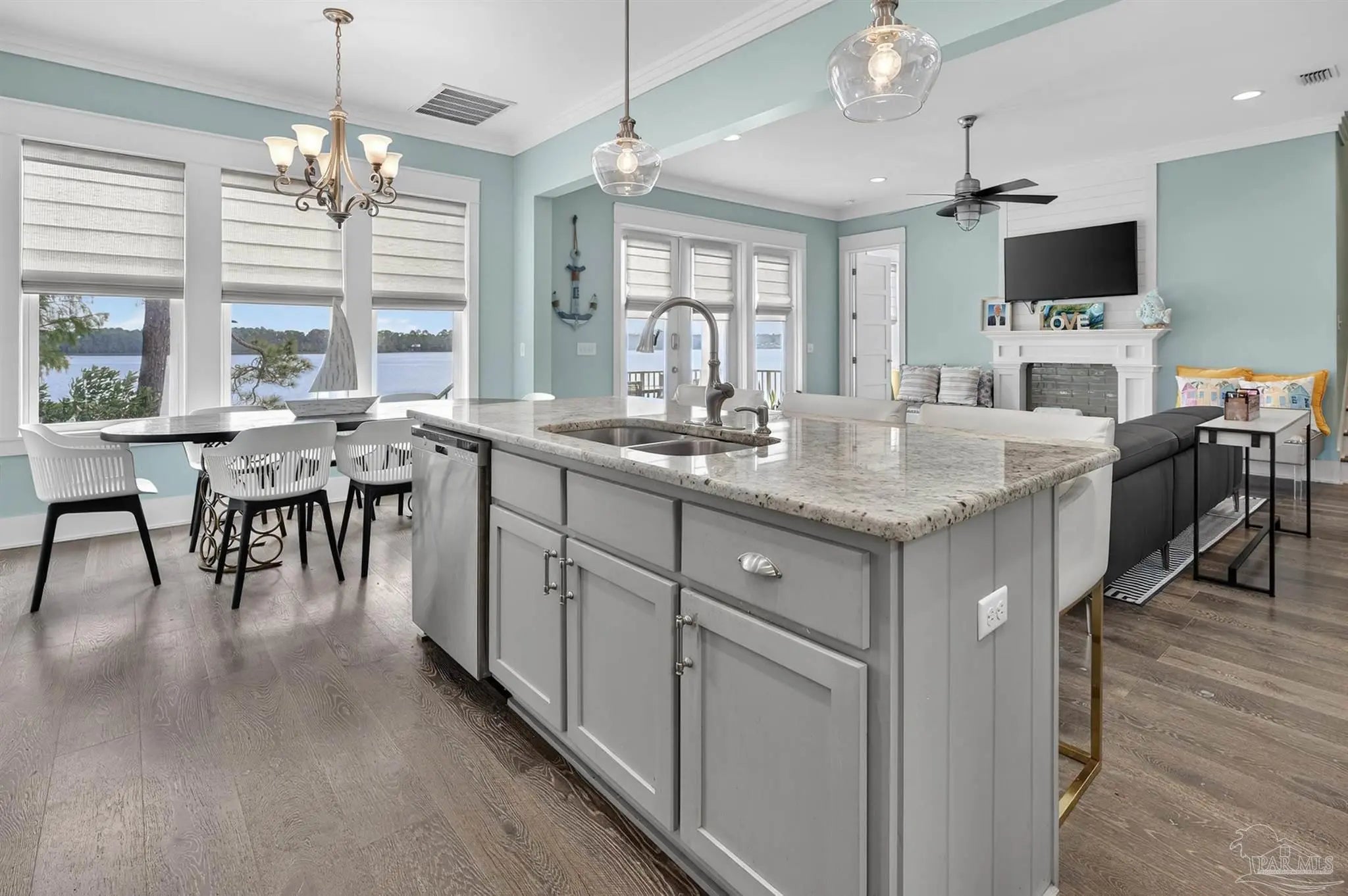 Welcome to 2975 Holley Point Rd in Navarre, FL, where coastal charm meets modern convenience. This lovely waterfront home spans 2,242 sf and offers quality craftsmanship combined with style and comfort. With 3 spacious bedrooms and 2.5 bathrooms, this residence is designed to meet the needs of today's discerning homeowner or investor. The raised design of the home provides an inviting entrance into a beautifully laid-out interior with sweeping bay views. The open floor plan seamlessly connects the living spaces, creating an ideal environment for both relaxation and entertaining. High ceilings and large windows allow stunning water views and natural light to fill the rooms, while highlighting the home's thoughtful finishes and details. The expansive living area flows into a well-appointed kitchen complete with ample counter space and cabinetry, making it a dream for those who love to cook and entertain. The primary suite offers a private retreat with a view including an en-suite bathroom with tiled walk in shower and soaking tub, plus a large walk in closet, providing a serene space with a view to unwind at the end of the day. Outside enjoy a delightful constant breeze, large oak trees and a gently sloping lawn leading to a private dock with an 8000 lb. boat lift right on East Bay! Watch dolphins and ospreys, launch kayaks and paddleboards or fish for dinner from the dock of your private oasis. This is the best of FL waterfront living! The ground level offers covered parking, a large storage room and an additional finished bonus space including full bath, currently used as extra sleeping room. There is room for a future elevator. Situated in the desirable Holley Point area, this property promises a lifestyle of tranquility and convenience with easy access to the interstate and just a short distance from the stunning beaches of Navarre. This home would make a perfect primary residence, second home or vacation rental - the possibilities are endless.