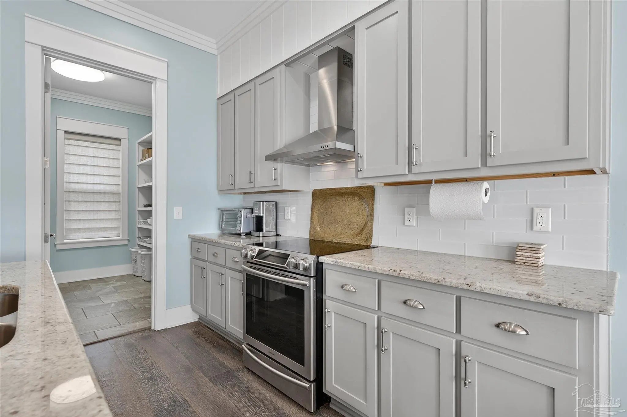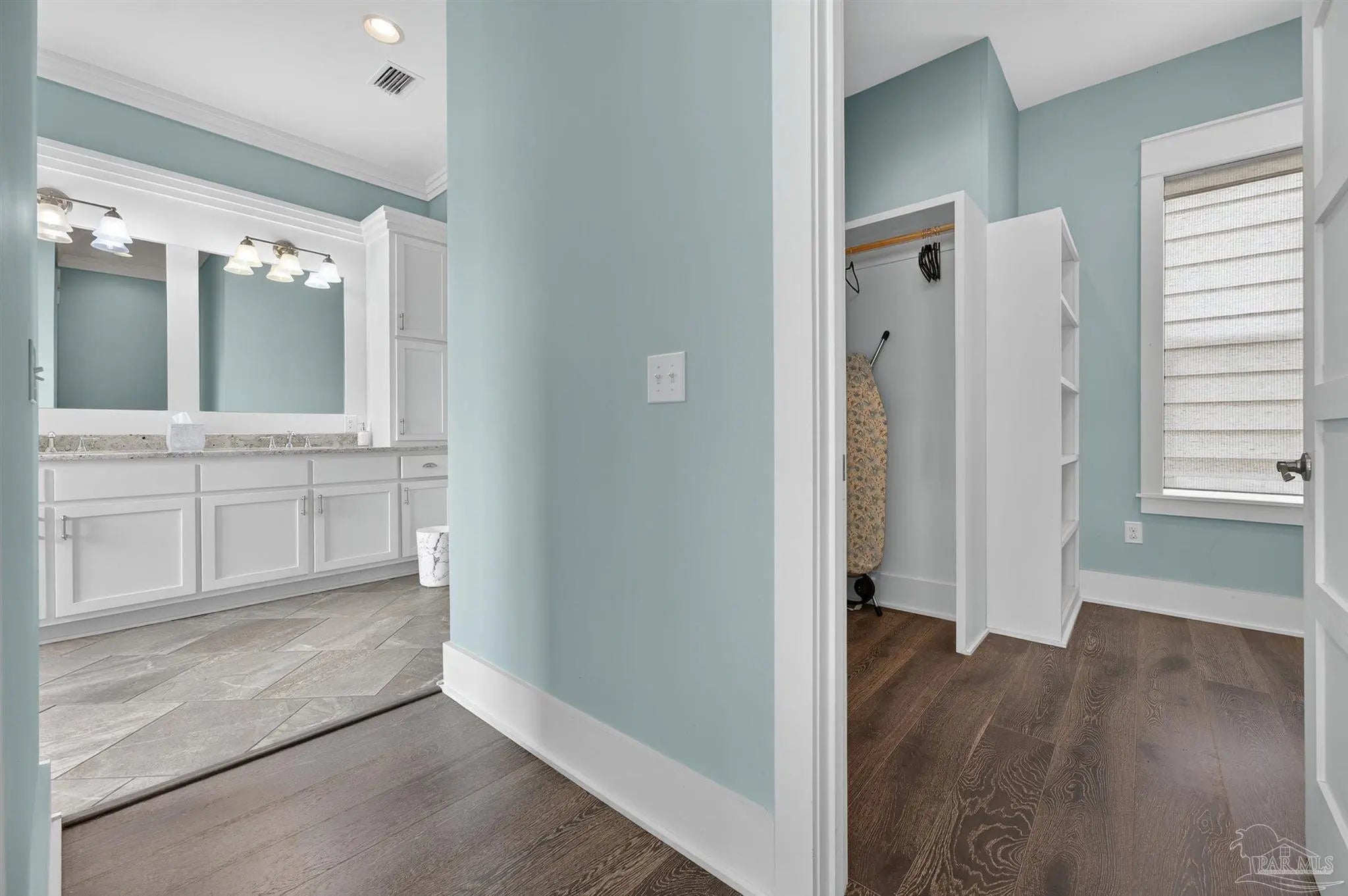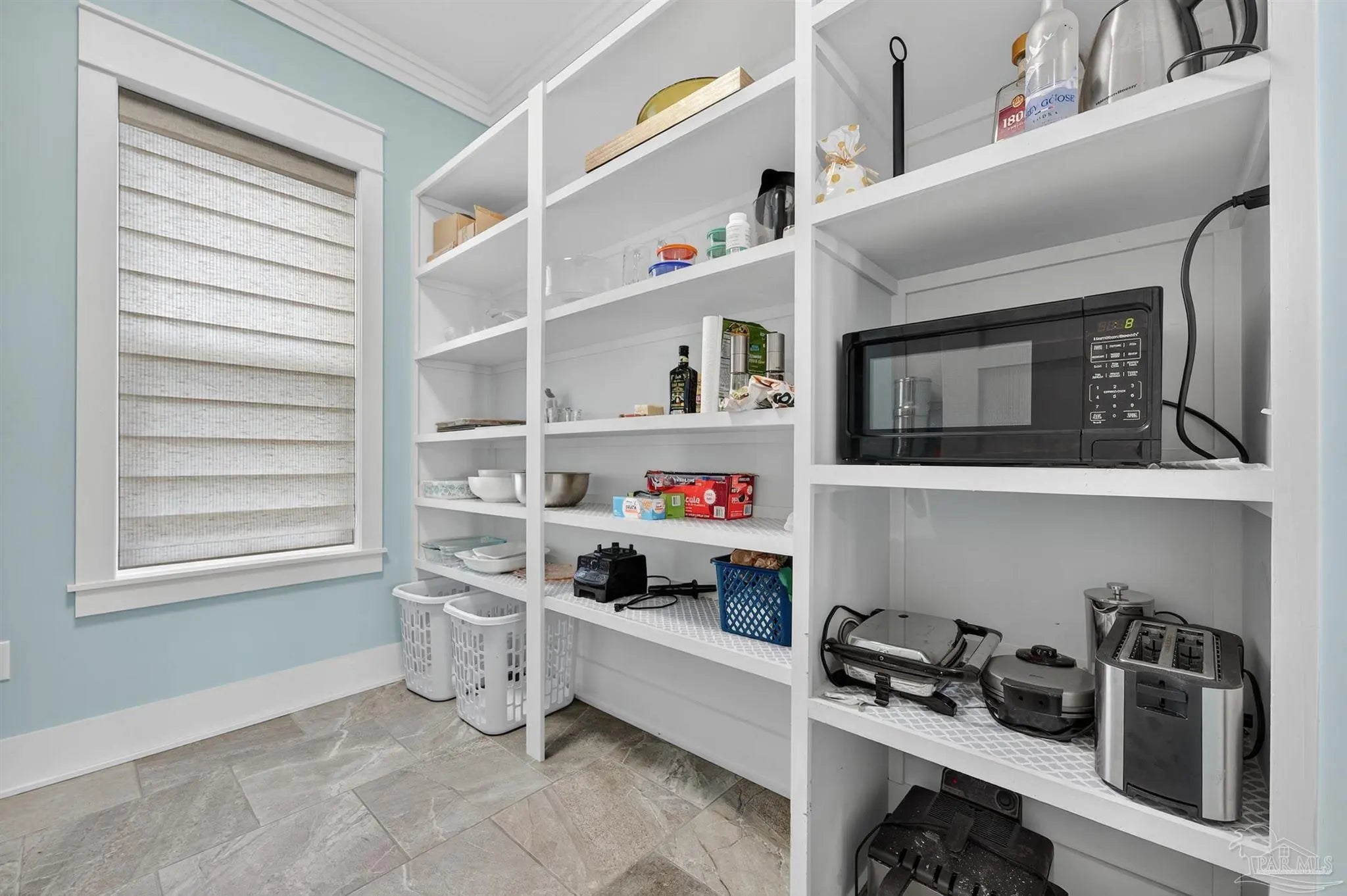 - Baseboards, Ceiling Fan(s), Crown Molding, High Ceilings, Recessed Lighting