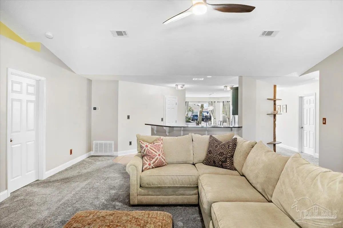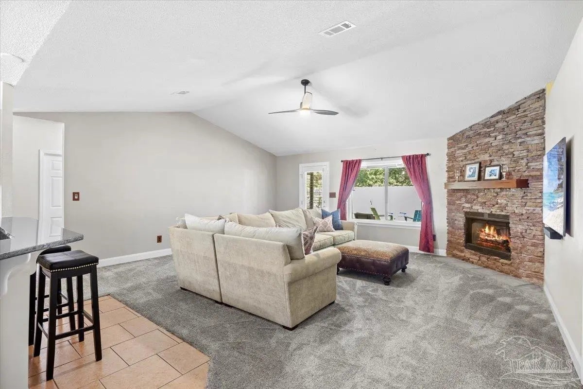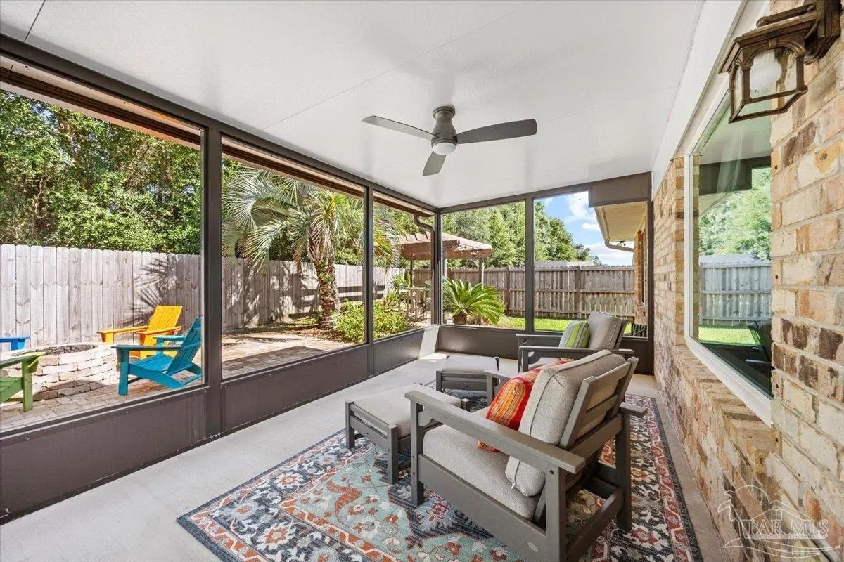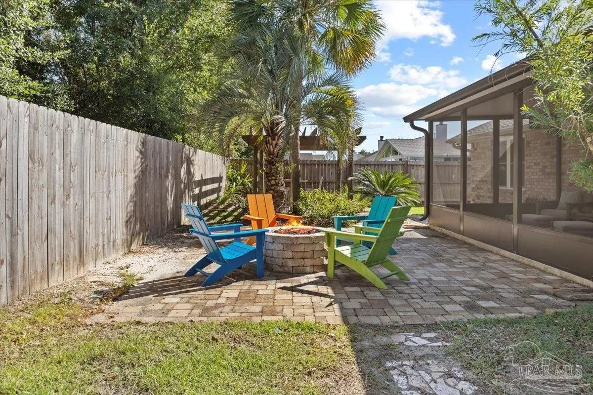 Welcome to this pristinely maintained 4-bedroom, 2-bath home, perfectly situated on a quiet cul-de-sac in one of the area’s most desirable coastal communities with no HOA. Designed with an open-concept layout, this residence offers an effortless blend of comfort, style, and functionality. The spacious primary suite, featuring his-and-hers walk-in closets, is thoughtfully positioned opposite the guest bedrooms to provide ultimate privacy. The generously sized family room is perfect for entertaining large gatherings yet intimate for cozy evenings by the gas fireplace. Step outside and discover phenomenal alfresco entertaining spaces, including a screened Florida room, pergola, gas fire pit, sprinkler system on a well and storage shed with electricity — all with ample room to add a pool. Your personal outdoor oasis awaits you and includes protected green space for additional serenity. This home offers the perfect blend of modern amenities and peace of mind, featuring impact windows and doors and a whole-house generator. Experience coastal living at its best — where quality, comfort, and safety come together seamlessly and just minutes from pristine sugar, white beaches, shopping, and NAS Pensacola!