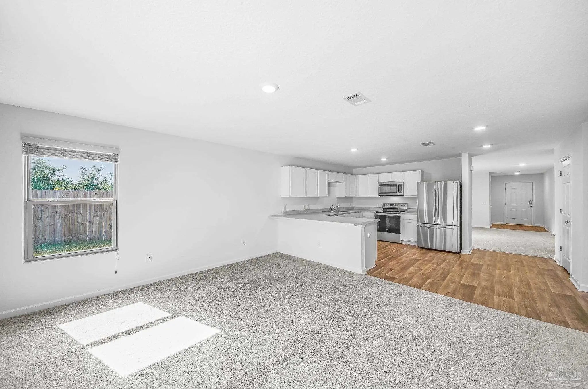 Welcome to your next home! This spacious 4-bedroom, 2-bath residence sits on a quiet new street, offering plenty of room to live, work, and entertain. Inside, you’ll find two living areas and a dedicated dining space, perfect for family dinners or hosting friends. The attached 2-car garage provides convenient access and extra storage. Step outside to a sizable backyard fully enclosed with a 6-foot privacy fence—ideal for relaxing, playing, or grilling. The kitchen is a chef’s dream, featuring abundant counter space, a large pantry, and premium appliances including a French door refrigerator, an oven with built-in air fryer, and a smart washer/dryer that sends alerts to your phone when laundry’s done. The primary bedroom offers a private bathroom and spacious walk-in closet for a true retreat. Tech-savvy touches continue throughout the home: a smart garage door opener with backup battery, and a front door with both key and keypad entry—no need to worry about losing keys while enjoying your walks. Conveniently located just 7 miles from the back gate and 10 minutes from the front gate of NAS Pensacola, commuting is a breeze. The home is not in a flood zone, and pets are welcome with owner approval. Don’t miss out—schedule your viewing today and see everything this home has to offer!