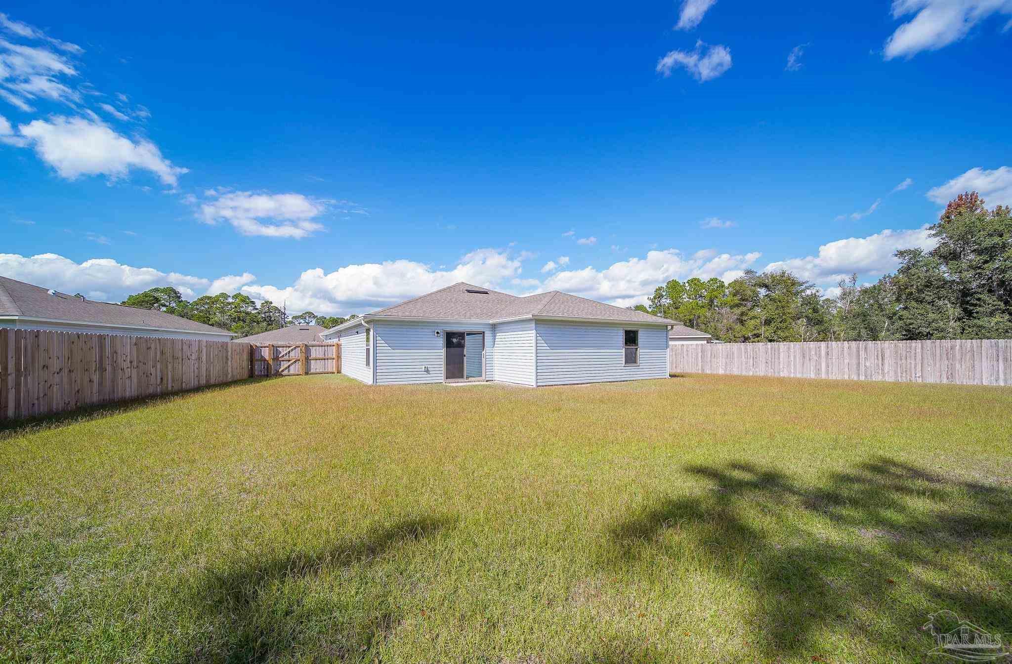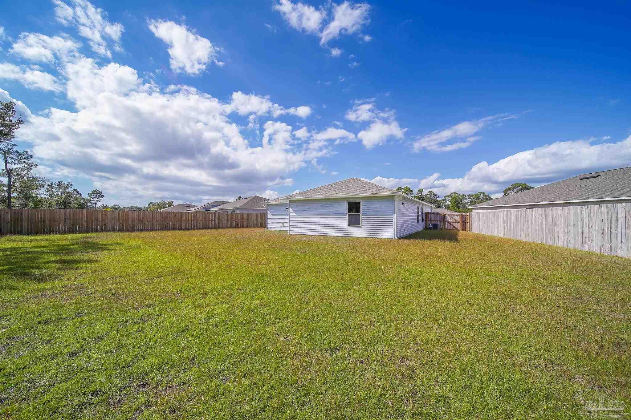 Welcome to your next home! This spacious 4-bedroom, 2-bath residence sits on a quiet new street, offering plenty of room to live, work, and entertain. Inside, you’ll find two living areas and a dedicated dining space, perfect for family dinners or hosting friends. The attached 2-car garage provides convenient access and extra storage. Step outside to a sizable backyard fully enclosed with a 6-foot privacy fence—ideal for relaxing, playing, or grilling. The kitchen is a chef’s dream, featuring abundant counter space, a large pantry, and premium appliances including a French door refrigerator, an oven with built-in air fryer, and a smart washer/dryer that sends alerts to your phone when laundry’s done. The primary bedroom offers a private bathroom and spacious walk-in closet for a true retreat. Tech-savvy touches continue throughout the home: a smart garage door opener with backup battery, and a front door with both key and keypad entry—no need to worry about losing keys while enjoying your walks. Conveniently located just 7 miles from the back gate and 10 minutes from the front gate of NAS Pensacola, commuting is a breeze. The home is not in a flood zone, and pets are welcome with owner approval. Don’t miss out—schedule your viewing today and see everything this home has to offer!
