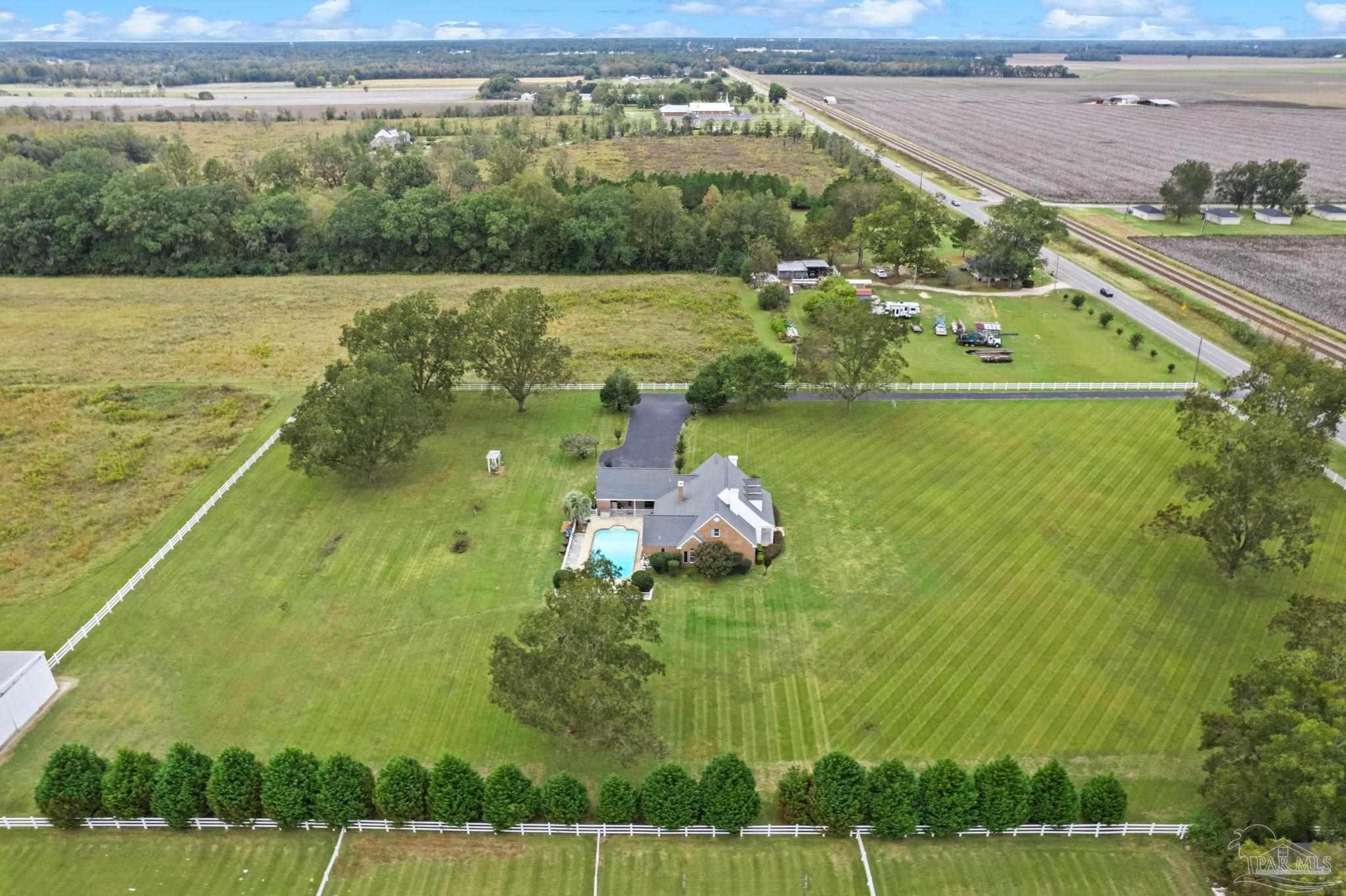 Elegant Brick Estate with Pool, Barn & 31.1± Acres - Experience refined Southern living on peaceful acreage just minutes from town. This timeless two-story brick estate offers generous living space indoors and out, featuring 5 bedrooms, 3 full baths, and a half bath conveniently located near the carport and the impressive 33,000-gallon in-ground pool. Quality upgrades bring comfort and confidence, including a new roof (2020), whole-house PEX plumbing with mana-block system, luxury vinyl tile flooring with lifetime warranty, and a 17-kW standby generator with separate 250-gallon propane tank. The main level includes 3 bedrooms, 2 full baths, a half bath, and inviting living spaces. A wood-burning fireplace with gas-log option anchors the family room. The kitchen features granite countertops, a walk-in pantry, and a bright breakfast area, complemented by a formal dining room. A spacious laundry room adds excellent functionality and storage. The primary suite offers double vanities, jetted tub, double closets, and patio access overlooking the pool. Upstairs are 2 additional bedrooms, a full bath with walk-in closet, and a flexible den ideal for media, play, or office use. Outside, the estate continues to impress. White vinyl fencing encloses approximately 5± acres around the residence, creating a polished park-like setting. The remaining acreage is suitable for farming, pasture, horses, or livestock, offering true versatility. Enjoy fig, plum, blueberry, scuppernong, and Elliott pecan trees throughout the property. A 30'×40' metal barn with underground power, water, and its own meter provides valuable workspace and storage. Properties combining meaningful acreage, privacy, and convenience are increasingly rare. For those seeking space, comfort, and a distinguished rural setting, this home delivers. Call now to schedule a showing!