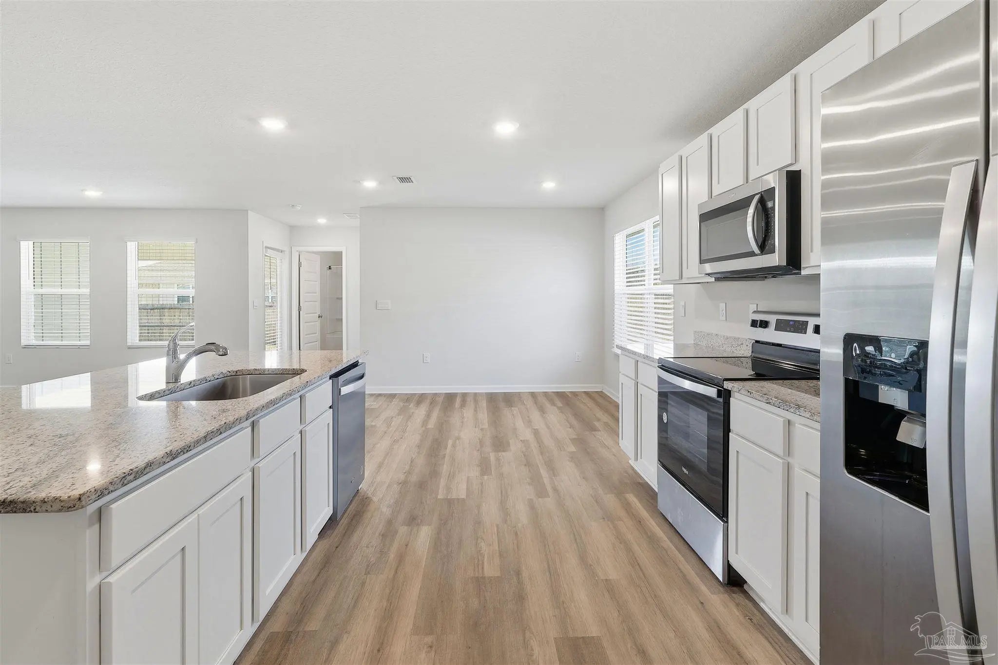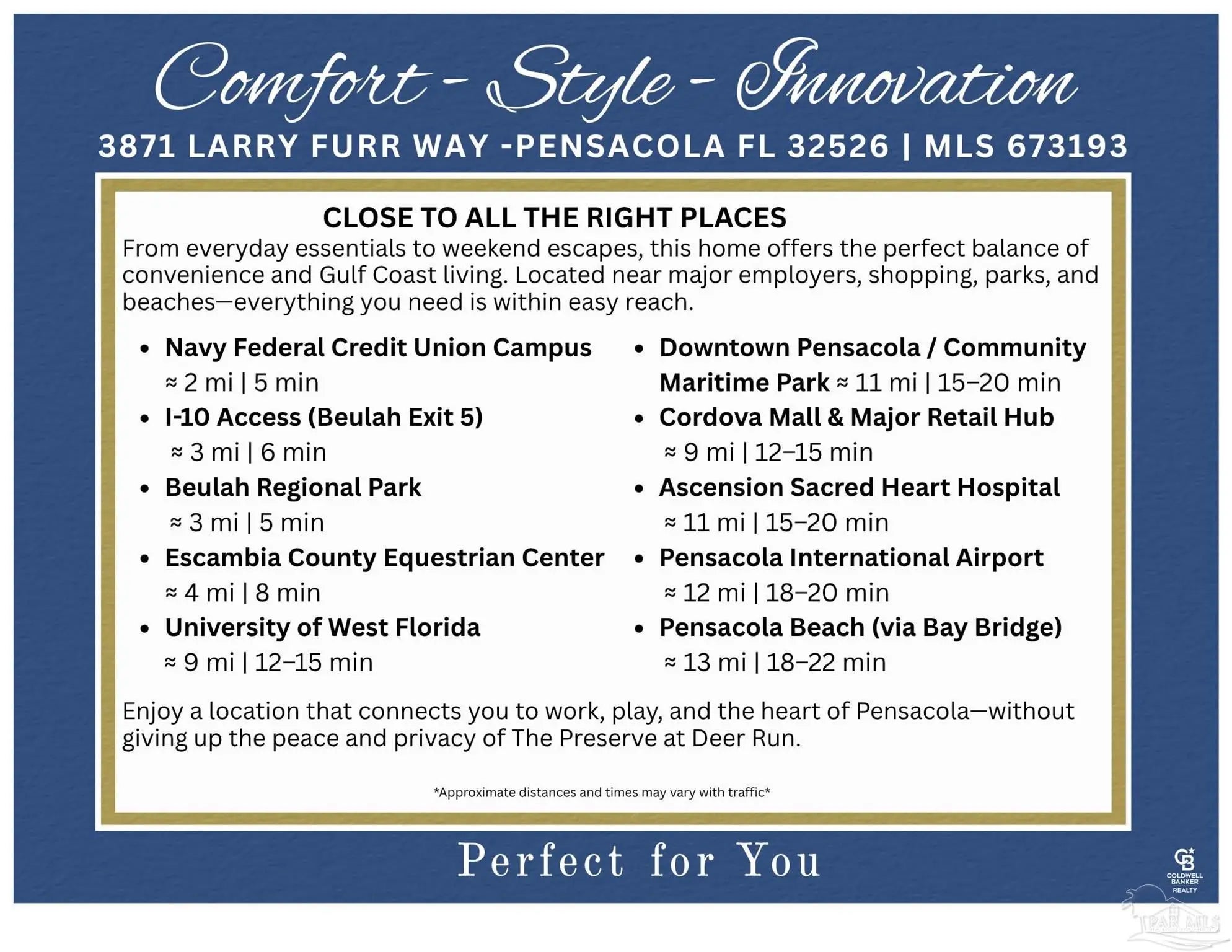 OPEN HOUSE coming in Jan 2026. Experience Florida’s Gulf Coast living at its finest in The Preserve at Deer Run. This desirable neighborhood, nestled beside a peaceful nature preserve, offers resort-style amenities including a sparkling pool, clubhouse, grilling area, and gazebo — all within walking distance of this move-in-ready 2023 home. Featuring five spacious bedrooms, the home blends comfort, style, and innovation. The open-concept living area invites gatherings with a seamless flow between the kitchen, dining, and family spaces — perfect for everyday living or holiday celebrations. The kitchen shines with granite countertops, stainless steel appliances, and a large island designed for the home chef at heart. Step outside to enjoy the fully fenced backyard and covered patio, ideal for morning coffee, or giving pets room to play. Luxury vinyl plank flooring adds warmth and durability, while the split-bedroom layout ensures privacy for family and guests. The primary suite offers a peaceful retreat with a spa-inspired bath, double granite vanity, walk-in shower, and generous closet. Smart Home Connect technology, keyless entry, hurricane protection, and energy-efficient design provide convenience and peace of mind. Located just minutes from Navy Federal Credit Union, NAS Pensacola, I-10, shopping, and beaches, this home delivers the perfect blend of quiet living and quick access to everything Pensacola has to offer.