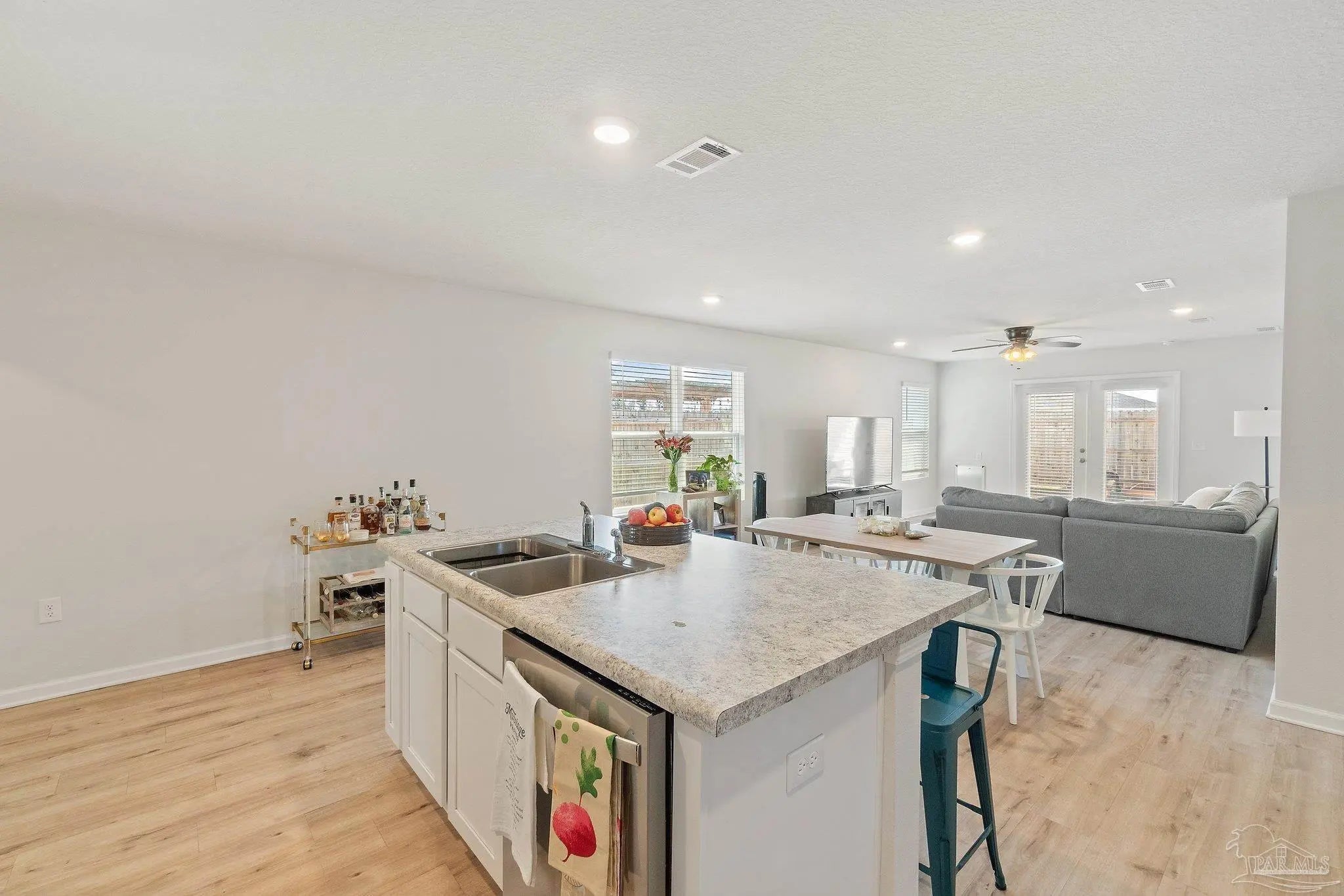 Open House Sunday March 22, 11-2pm! No waiting for completion, this home is move-in ready! This well-built newer home is located in a desirable, friendly neighborhood and offers the perfect blend of comfort and convenience. Featuring 3 bedrooms, 2 full baths, and 1,611 square feet of thoughtfully designed living space, this property is ideal for families relocating. The open floor plan provides effortless flow for both everyday living and entertaining. The kitchen includes a spacious island, modern finishes, and generous counter space—creating a functional centerpiece for the home. Additional features include a privacy fence for security, epoxy-coated garage floor for easy maintenance, storm door for added protection, and a built-in dog door conveniently placed by the double doors. Ceiling fans in all bedrooms and the living room enhance comfort throughout. Perfectly situated for commuters, this home offers quick access to I-10, Hurlburt Field, NAS Pensacola, and Whiting Field, as well as nearby Navarre, Gulf Breeze, and downtown Pensacola. Don’t miss this opportunity to own a move-in-ready home designed with practicality, comfort, and location in mind. Schedule your private showing today!