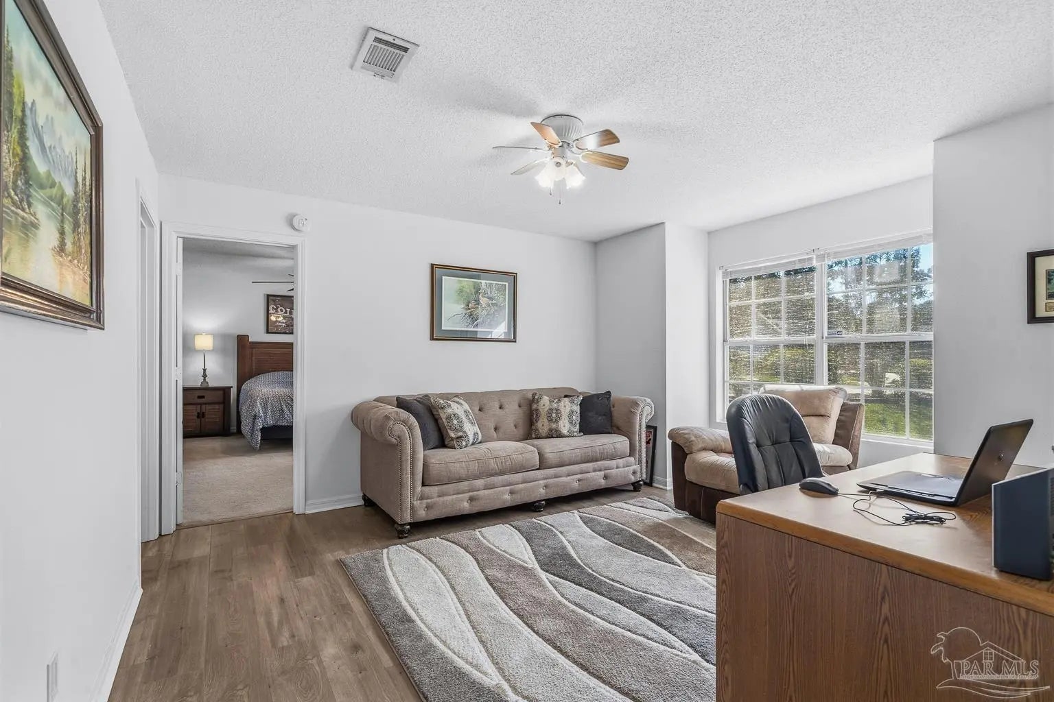 WOW!! LOW Assumable Rate- LOWER THAN NEW BUILDS! Make sure you check out this Beautiful & Spacious Waterfront Brick Home Near NAS Pensacola located on a quiet cul de sac. Kayak straight to Bayou Grande from your own backyard at this charming 3-bedroom, 2-bath home with a bonus room that can be used as an office or possibly converted into a 4th bedroom. This is a desirable split floor plan, this with spacious rooms including a huge master suite with two walk-in closets. Enjoy cozy evenings by the gas fireplace in the living room featuring a vaulted ceiling. Entertain & cook your favorite meals in the roomy kitchen complete with a breakfast bar island, breakfast nook, and a large pantry for extra storage. Additional highlights include a utility room with space for a freezer, a fenced backyard, and a deck overlooking the tranquil bayou and woods—an ideal spot for morning coffee or sunset relaxation. Conveniently located close to NAS Pensacola, VA Hospital, shopping, dining, and the beautiful Gulf Coast Beaches are only 15-20 minutes away. This home offers both comfort and lifestyle. Don’t miss your chance to make it yours! This Home is Move in Ready, up to date on maintenance & the Roof 2021 , HVAC 2022 , Water Heater 2019, New Garage door 2021, New Sliding door 2024 with new LVP Flooring in the living area & master bathroom.