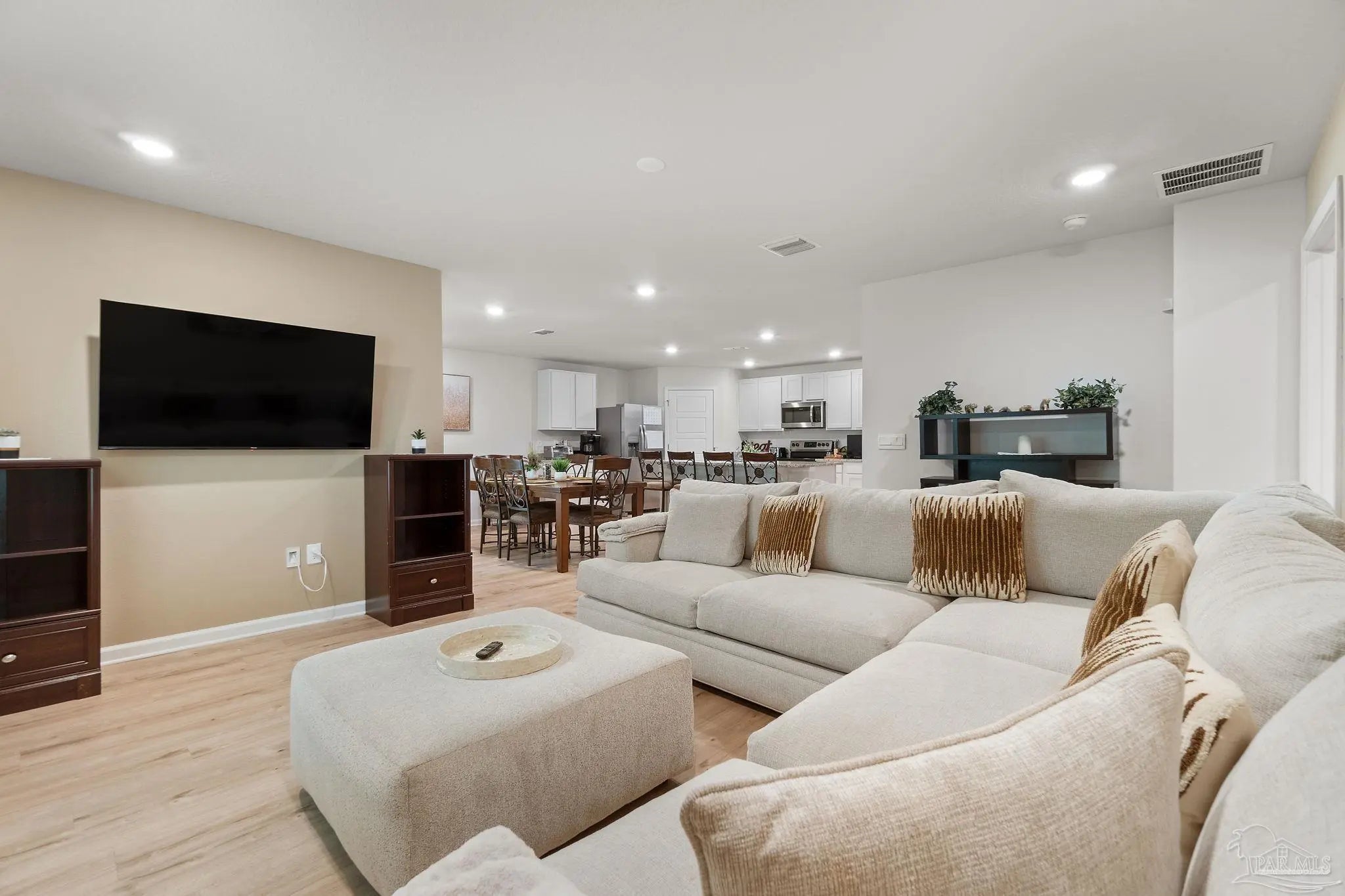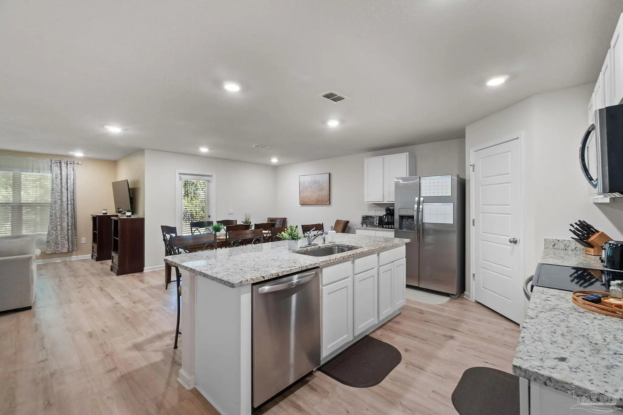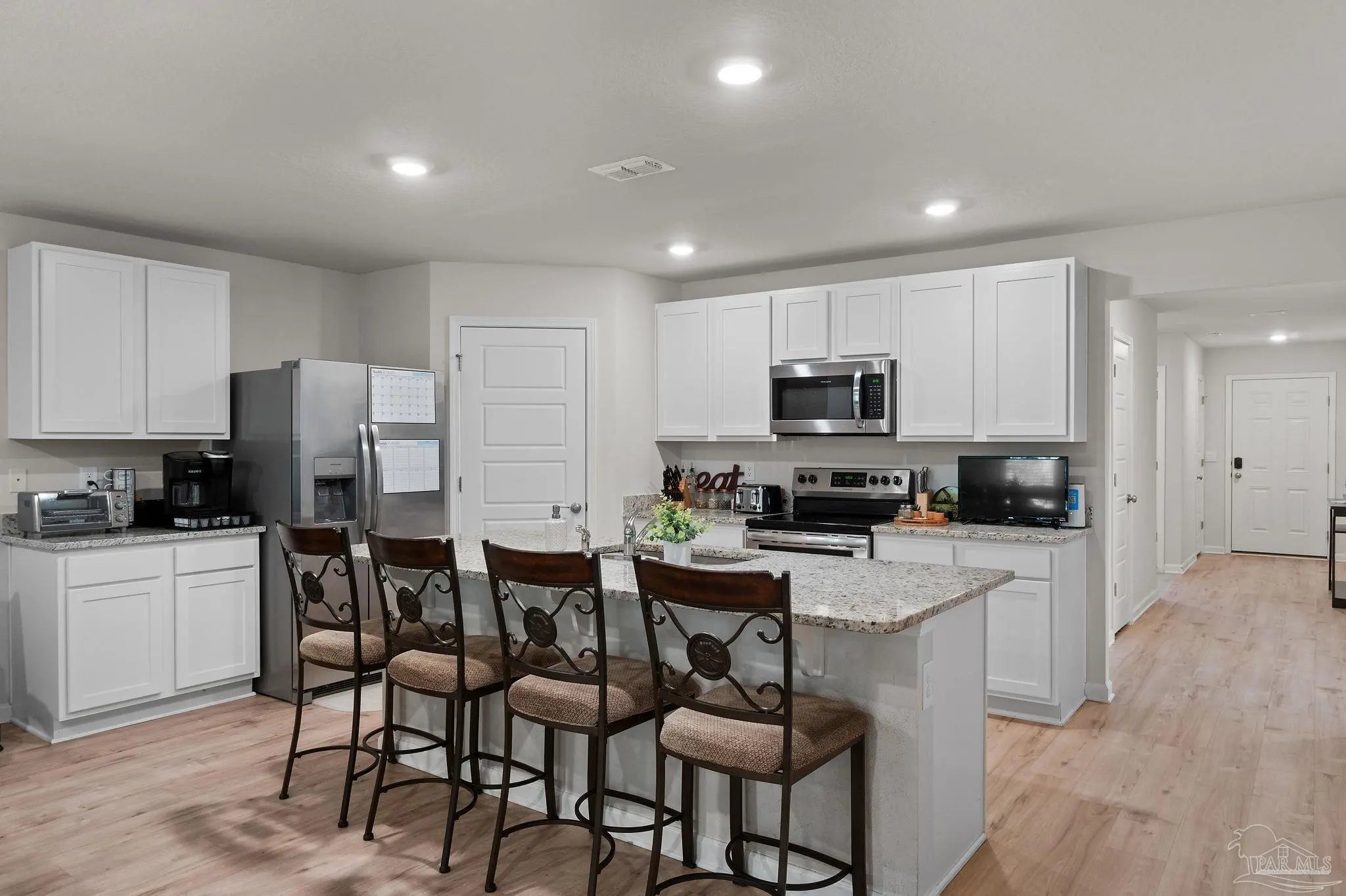Stunning 4-bedroom, 2-bath home sits right in the sweet spot of Pensacola and the heart of Beulah! Just minutes from Navy Federal, top-rated schools, the interstate, and local fun, this beauty is all about convenience and comfort. Step inside to an inviting open-concept layout with wood-look floors that flow through the living areas and cozy carpet in the bedrooms. The kitchen is a showstopper with endless counter space, stainless steel appliances, deep sinks, crisp white cabinetry, and a huge island perfect for barstools and laughter. The split floor plan gives everyone their own space with three separate bedroom wings offering plenty of privacy for family or guests. The master suite is a peaceful retreat with a large walk-in closet, dual vanities, a spacious shower, and extra linen storage. Whether you're hosting family, entertaining friends, or just relaxing at home, this one checks all the boxes for easy, modern living in one of Pensacola’s most desirable areas!