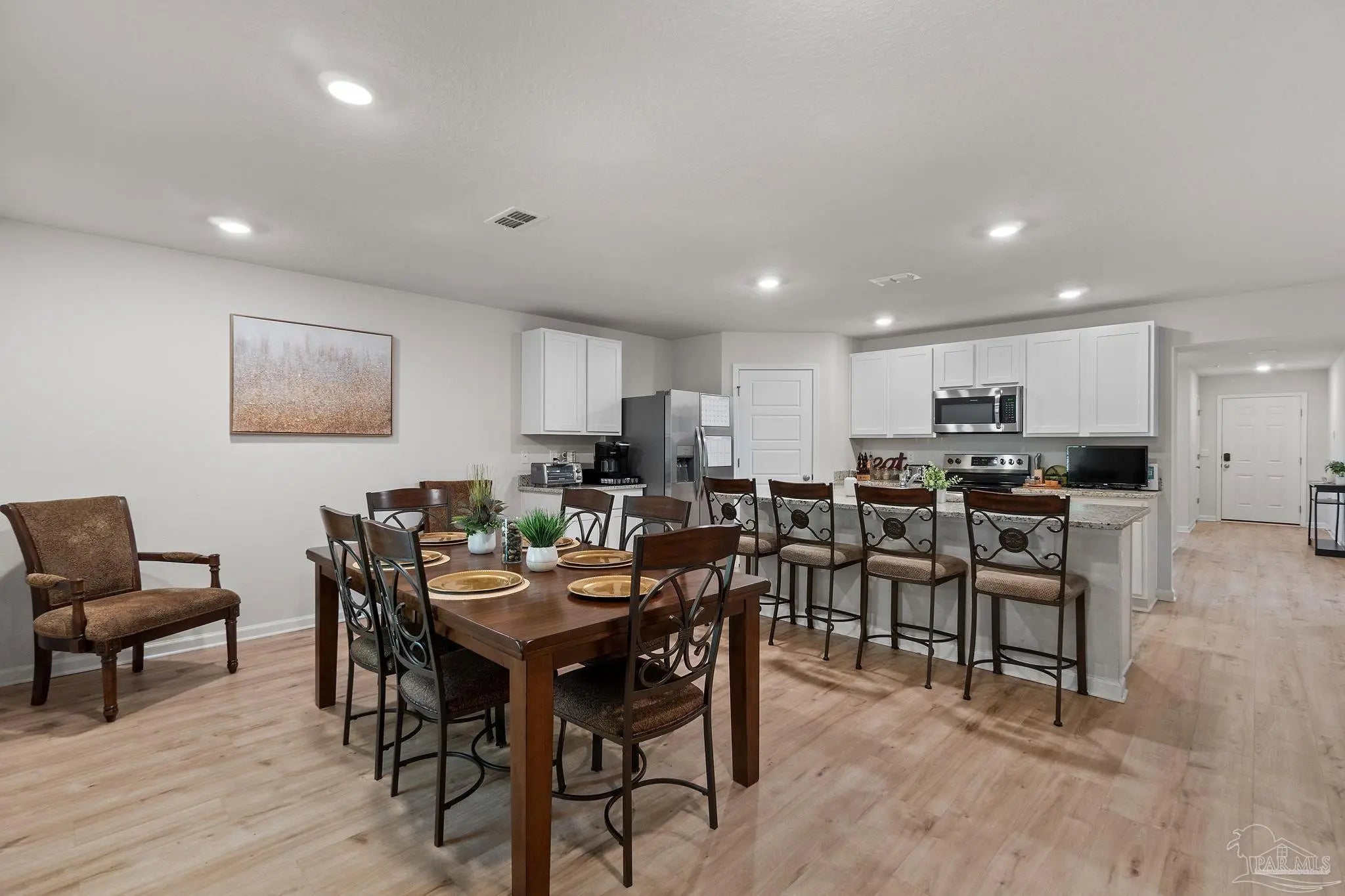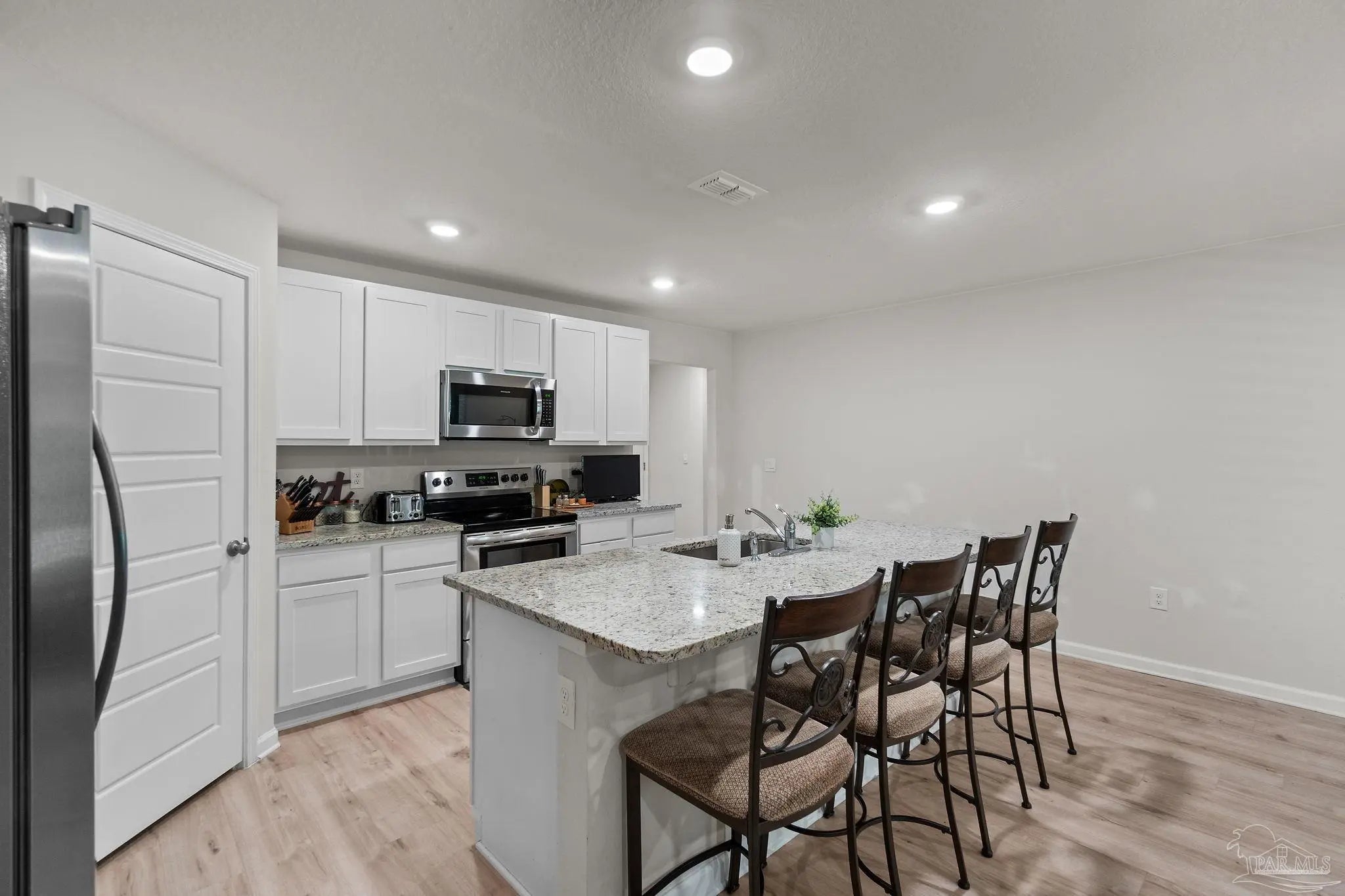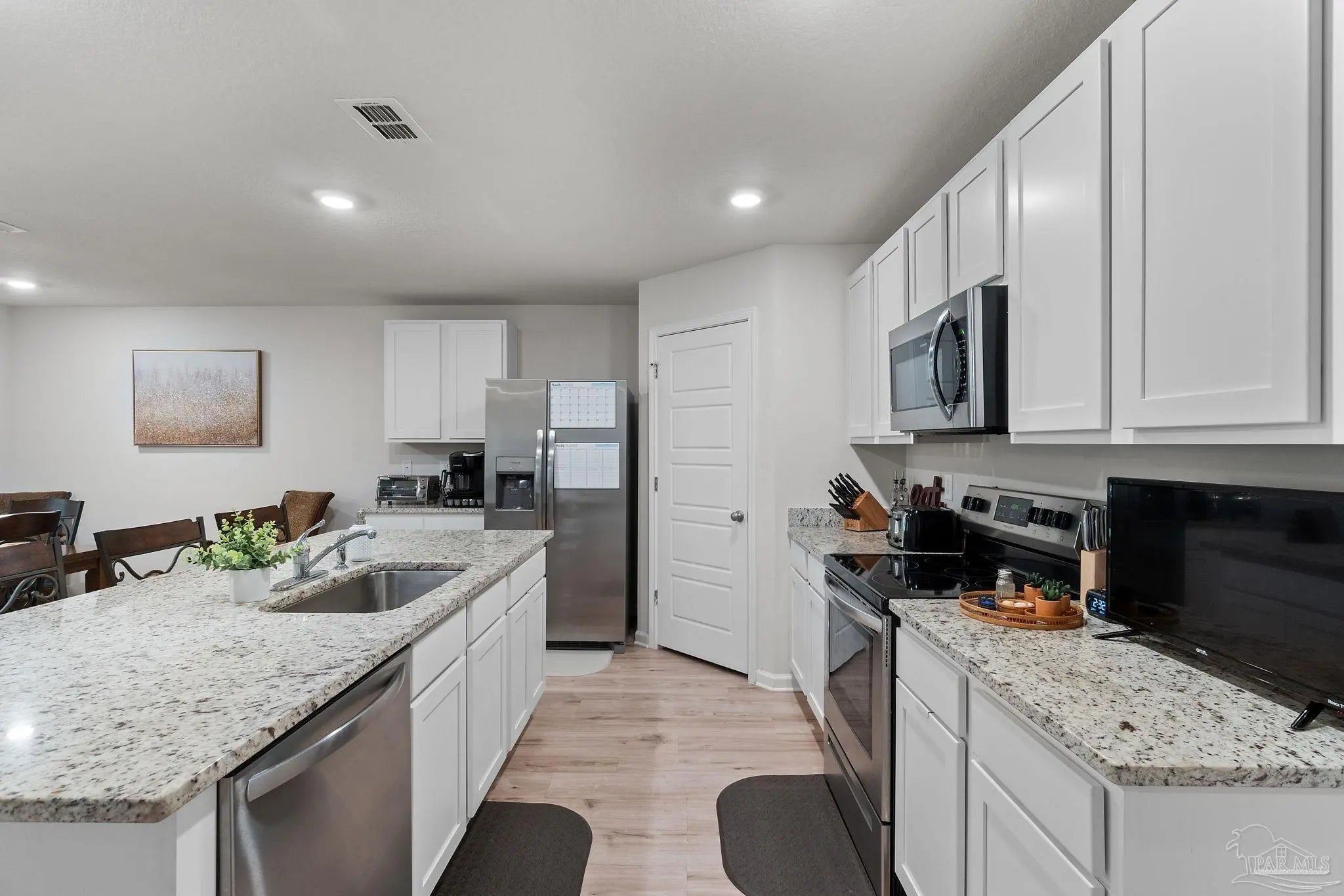 Stunning 4-bedroom, 2-bath home sits right in the sweet spot of Pensacola and the heart of Beulah! Just minutes from Navy Federal, top-rated schools, the interstate, and local fun, this beauty is all about convenience and comfort. Step inside to an inviting open-concept layout with wood-look floors that flow through the living areas and cozy carpet in the bedrooms. The kitchen is a showstopper with endless counter space, stainless steel appliances, deep sinks, crisp white cabinetry, and a huge island perfect for barstools and laughter. The split floor plan gives everyone their own space with three separate bedroom wings offering plenty of privacy for family or guests. The master suite is a peaceful retreat with a large walk-in closet, dual vanities, a spacious shower, and extra linen storage. Whether you're hosting family, entertaining friends, or just relaxing at home, this one checks all the boxes for easy, modern living in one of Pensacola’s most desirable areas!