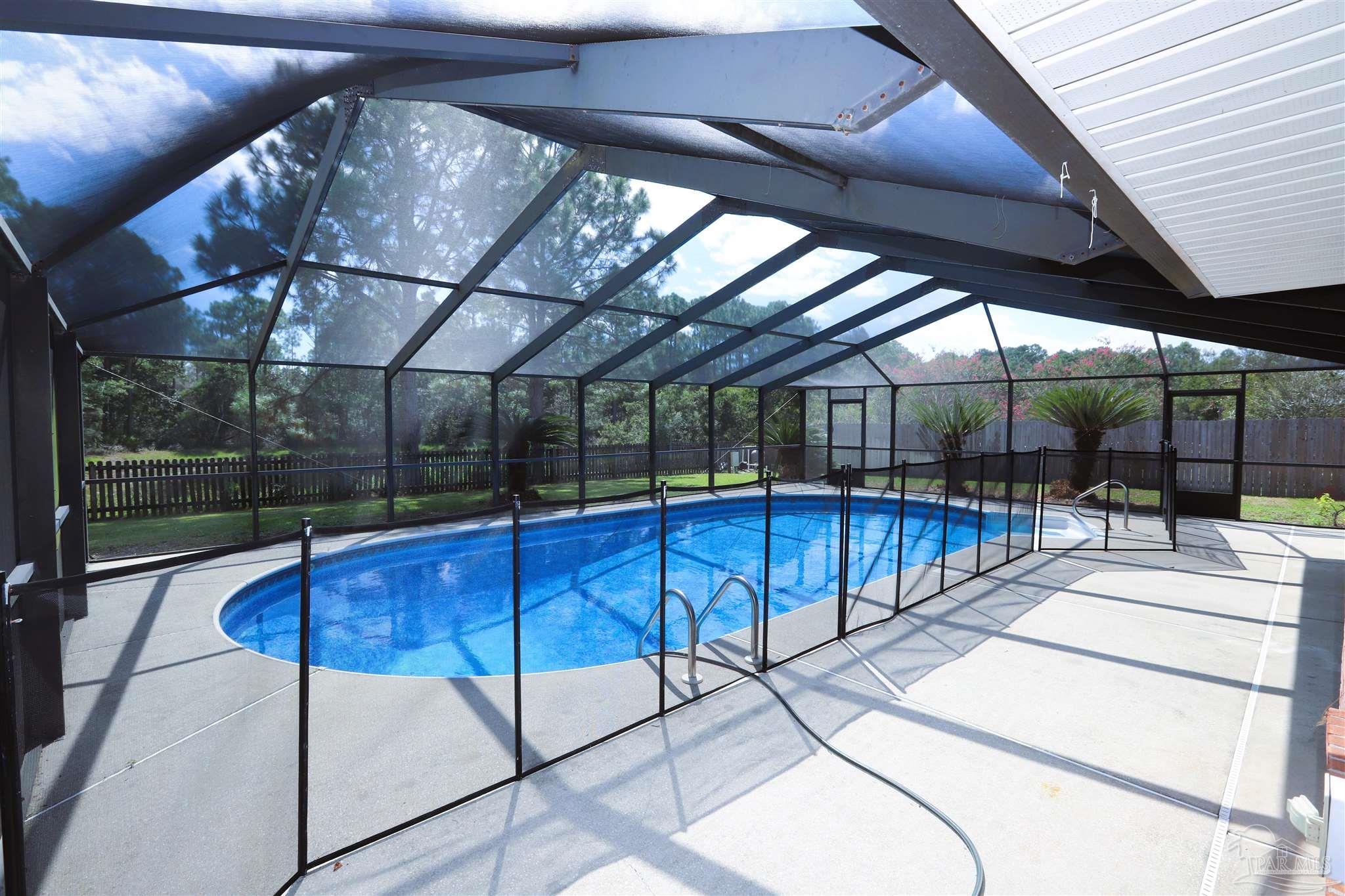 Come see this 4/2 well kept home in Perdido Bay Country Club Estates. The property features a Beautiful enclosed 18x36 in-ground pool. Light and bright split floor plan with neutral colors throughout, and brand new carpeting in the bedrooms. Formal dining room, an Airy kitchen with white cabinets and appliances, breakfast nook, and breakfast bar. Open great room that opens to the enclosed pool. Separate great room and living room. Master bathroom with double vanity, garden tub, walk-in closet and separate shower. Security system. Landscaped yard with a sprinkler system. Two-car garage with automatic garage door opener. Pool Service included in rental rate. Can be pet friendly with homeowner approval; No aggressive breeds. $300 non-refundable pet cleaning fee, per pet.