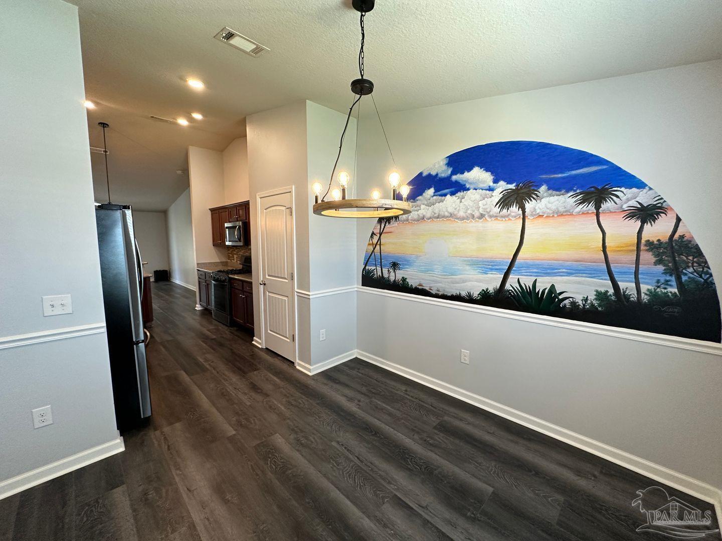This 3 bedroom 2 bath home located in Whisper Creek neighborhood has a split floor plan and sits on a large lot in a cul-de-sac. There is luxury vinyl plank flooring throughout the main living areas, with updated carpet in the secondary bedrooms and tile in both bathrooms. There is a gorgeous home office in the front of the home with white built-ins and a desk. The kitchen features granite countertops, ample cabinetry, and stainless steel appliances. The furnished appliances include a LG stainless refrigerator with ice & water dispenser, LG stainless gas oven with 5 burner cooktop, dishwasher, and a built in microwave. The living room room and all 3 bedrooms come furnished with mounted flat screen TVs and sound systems. The laundry room comes furnished with a washer and dryer for your convenience! The master suite is a true retreat, complete with a private en-suite bathroom and a large walk in closet. The bathroom has a double vanity with granite countertops and a walk in shower with a shower bench. Each additional bedroom showcases tasteful finishes, abundant natural light, and ample closet space as well as another full bathroom. Make your way through the French doors in the living room that lead out to the screened in back porch. ***lawn care is included in the rent!*** This home is pet friendly up to 2 dogs 70 lbs. or less. No cats. No restricted breeds. Prior approval and non refundable pet fee required. Tenant responsible for all utilities. All NFI Property Management Solutions residents are enrolled in the Resident Benefits Package (RBP) for an additional $40/month which includes liability insurance, move-in concierge service making utility connection and home service setup a breeze during your move-in, our best-in-class resident rewards program, on-demand pest control, and much more! More details upon application.