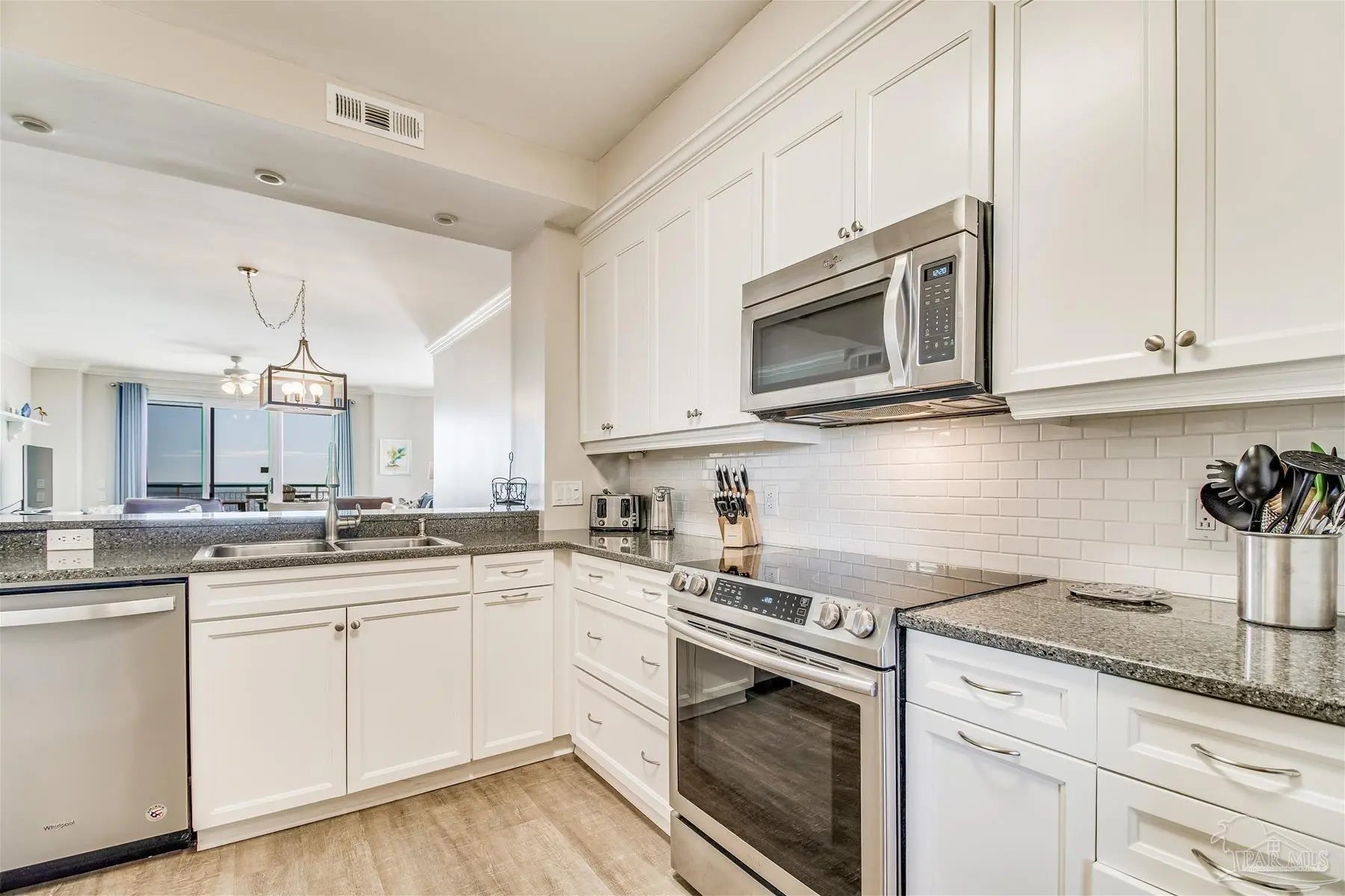 Experience coastal luxury living at its finest in this stunning gulf-front penthouse offering breathtaking sunset views and a lifestyle defined by elegance and relaxation. Perched above sugar-white sands and emerald waters, this beautifully updated residence features a spacious private balcony — the perfect place to unwind while taking in sweeping views of the Gulf of Mexico. Step inside to an open and airy layout highlighted by Luxury Vinyl Plank flooring throughout, creating a seamless flow and modern coastal aesthetic. The chef-inspired kitchen features granite countertops, stainless steel appliances, a coffee bar, and updated finishes, making entertaining and everyday living effortless. The primary suite is a serene retreat that opens directly to the balcony, so you can wake up to waves and warm sea breezes. The luxurious ensuite bath features a double vanity with quartz countertops, an oversized separate shower, and a stunning soaker tub with a Gulf-view backdrop — the ultimate oasis for unwinding. Guests will enjoy a beautifully updated guest bath complete with walk-in shower and quartz countertops. Located in a premier Gulf-front community, you’ll have access to top-tier amenities including two outdoor pools, an indoor pool, tennis courts, a fitness center, and a grilling area — ensuring both comfort and resort-style recreation. This penthouse is the perfect blend of modern sophistication and coastal charm — a rare opportunity to own one of the best views on the Gulf Coast. Welcome home to your private piece of paradise.