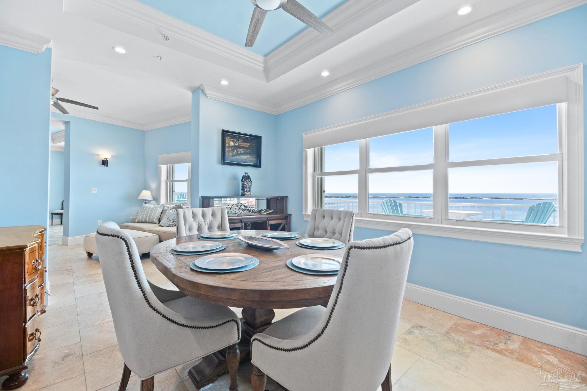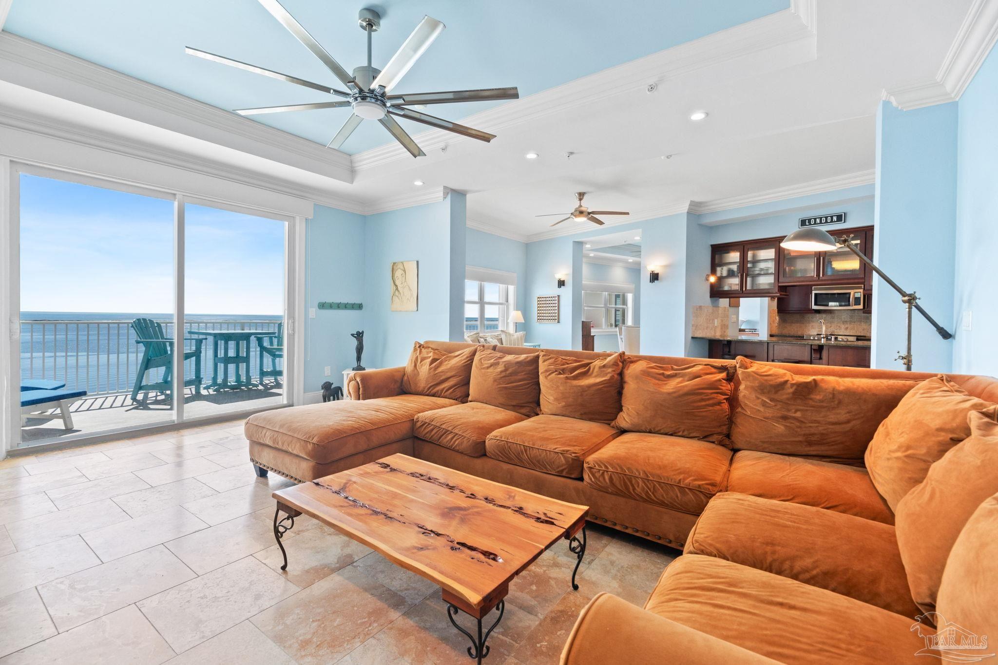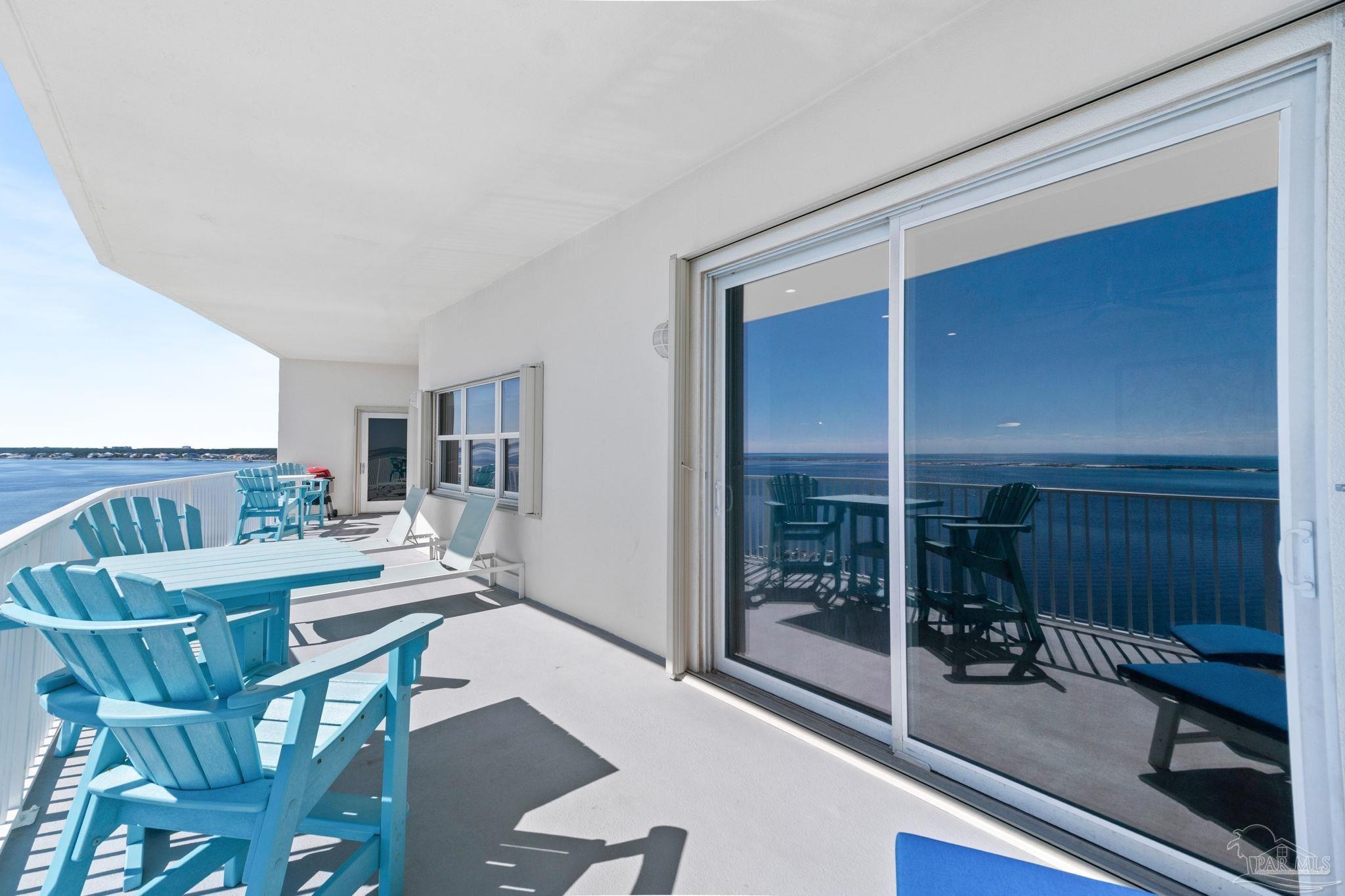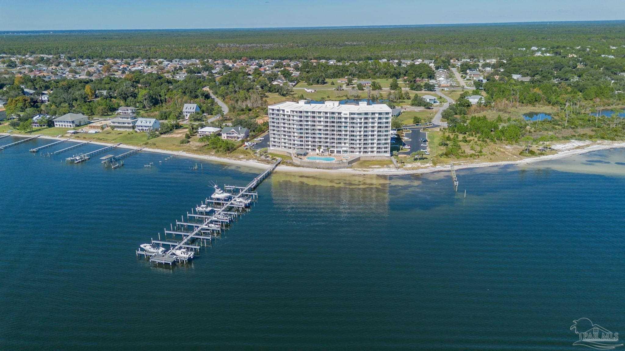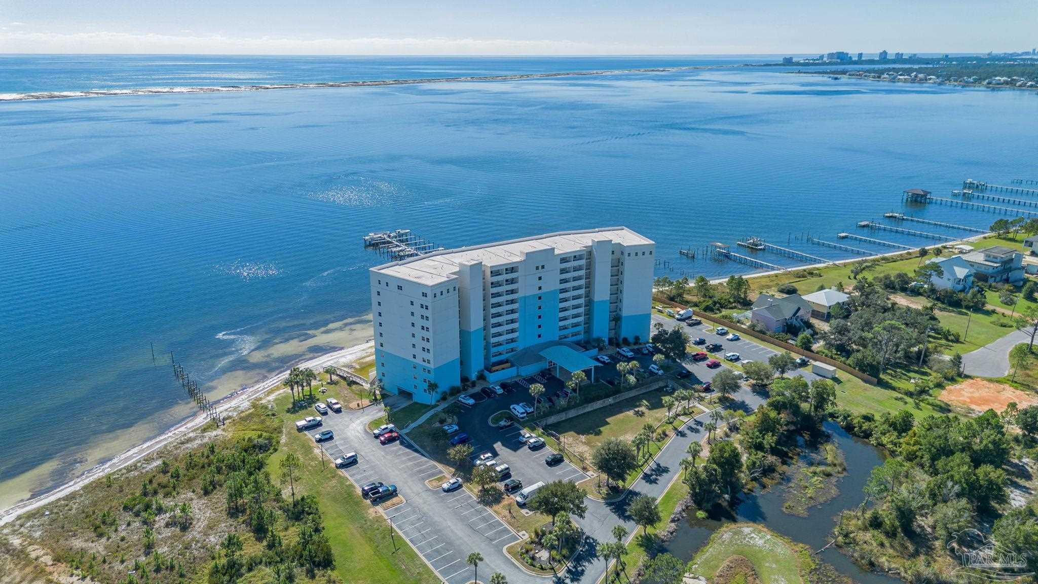 Experience breathtaking luxury in this stunning penthouse at the prestigious Harbour Pointe Condominiums! Have you ever dreamed of owning your own piece of paradise? This expansive waterfront condo offers some of the most spectacular views on the Gulf Coast, and even comes with its own private boat slip! Step into the penthouse through a welcoming foyer with beautiful tile flooring that flows seamlessly throughout the home. The primary suite immediately captures your attention with its breathtaking bay views, double-door closets, and a spa-inspired en-suite bathroom featuring a jetted tub, a tiled walk-in shower, and dual granite vanities, the perfect retreat for rest and relaxation. At the heart of the home, the kitchen features granite countertops, a breakfast bar, dark wood cabinetry, and stainless-steel appliances, including a smooth-top range. Just beyond, the formal dining room offers bay views, the ideal spot to enjoy your morning coffee, watch the Blue Angels fly by, or host unforgettable gatherings with friends. The open concept living area features sliders that lead to a generous balcony overlooking the sparkling waterfront. Whether you’re grilling, entertaining, or simply unwinding with a sunset view, this space embodies the essence of coastal living at its finest. You will also find three additional bedrooms, each spacious and inviting. One serves beautifully as an office or fourth bedroom, complete with its own full bath featuring a tiled walk-in shower and granite vanity. The other guest suites each offer private en-suite baths with tiled showers and granite countertops, providing comfort and privacy for all. Enjoy dolphins at play, boats gliding by, and endless evenings of serenity from your private slice of the sky. This is more than a home, it’s a lifestyle. What are you waiting for? Your waterfront dream penthouse is ready for you.