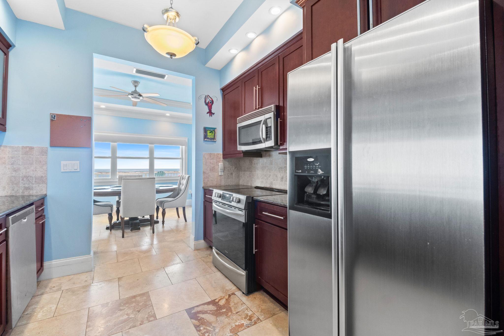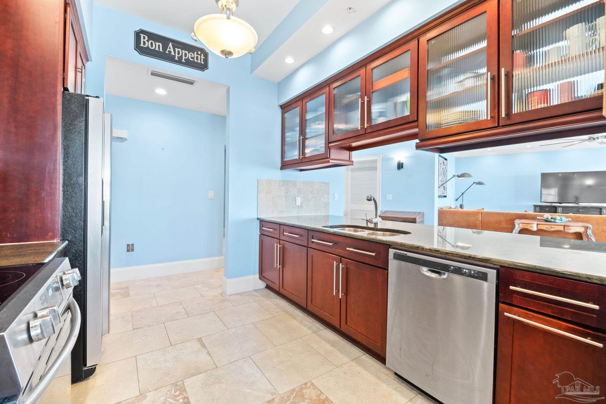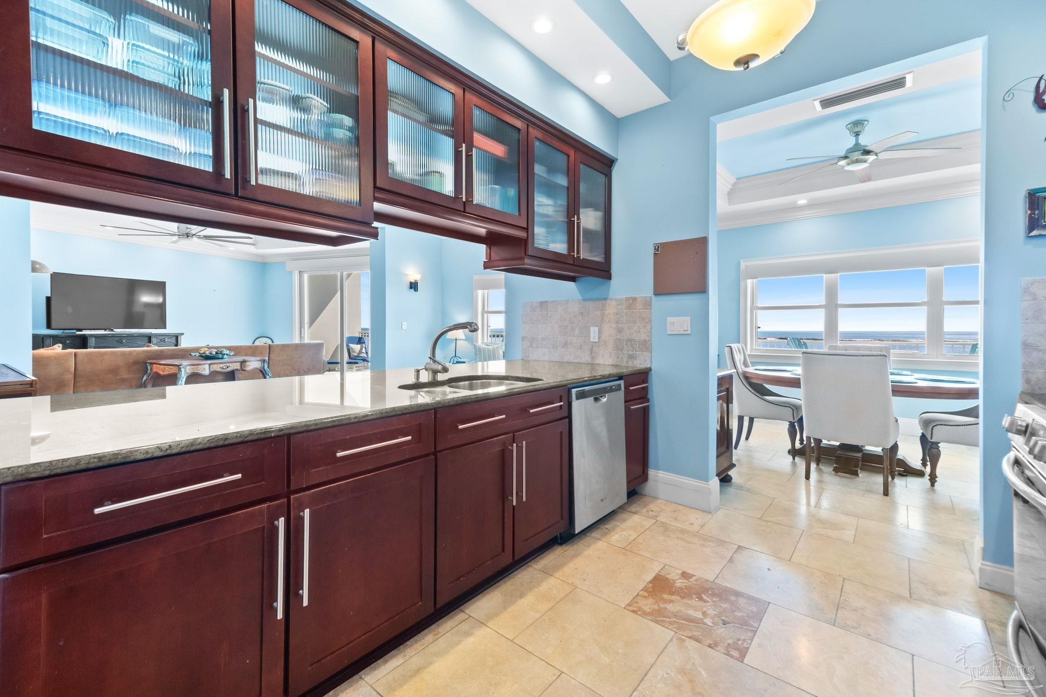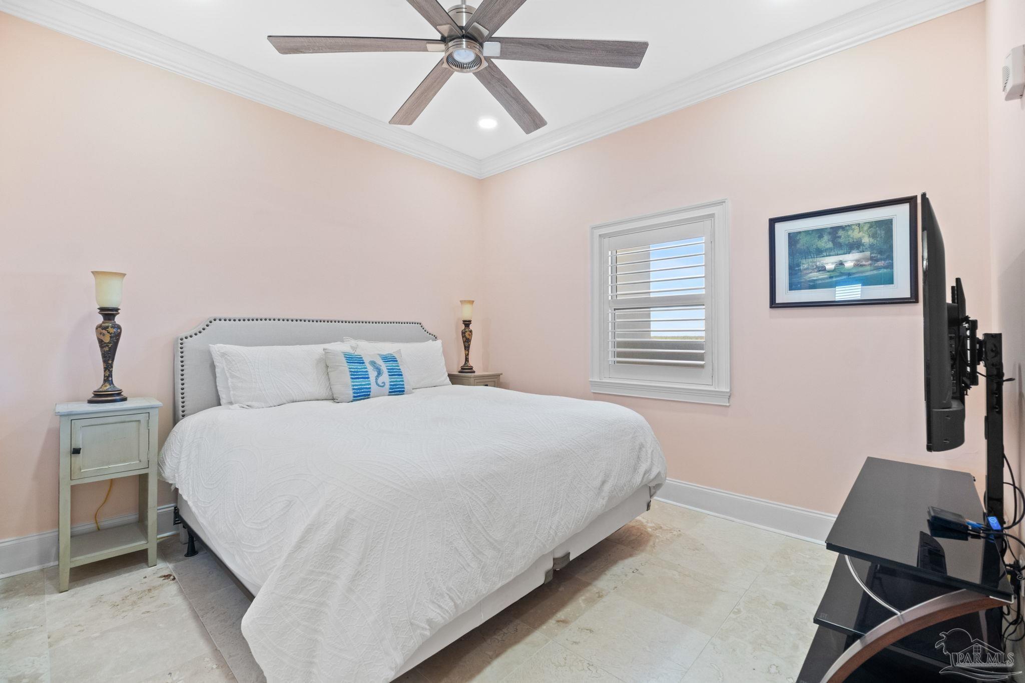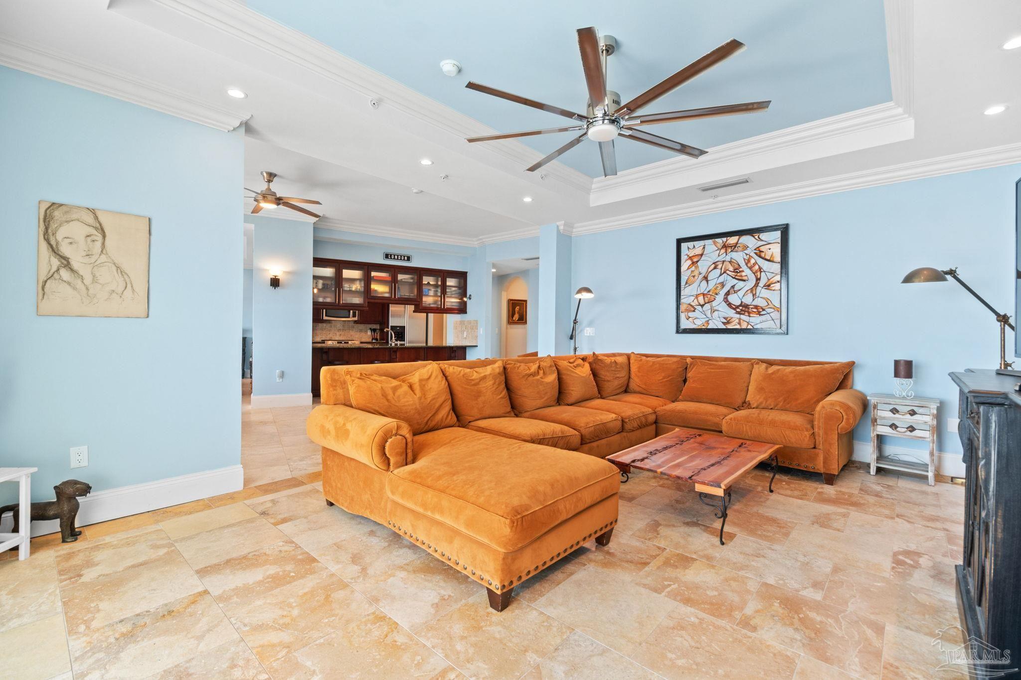 Experience breathtaking luxury in this stunning penthouse at the prestigious Harbour Pointe Condominiums! Have you ever dreamed of owning your own piece of paradise? This expansive waterfront condo offers some of the most spectacular views on the Gulf Coast, and even comes with its own private boat slip! Step into the penthouse through a welcoming foyer with beautiful tile flooring that flows seamlessly throughout the home. The primary suite immediately captures your attention with its breathtaking bay views, double-door closets, and a spa-inspired en-suite bathroom featuring a jetted tub, a tiled walk-in shower, and dual granite vanities, the perfect retreat for rest and relaxation. At the heart of the home, the kitchen features granite countertops, a breakfast bar, dark wood cabinetry, and stainless-steel appliances, including a smooth-top range. Just beyond, the formal dining room offers bay views, the ideal spot to enjoy your morning coffee, watch the Blue Angels fly by, or host unforgettable gatherings with friends. The open concept living area features sliders that lead to a generous balcony overlooking the sparkling waterfront. Whether you’re grilling, entertaining, or simply unwinding with a sunset view, this space embodies the essence of coastal living at its finest. You will also find three additional bedrooms, each spacious and inviting. One serves beautifully as an office or fourth bedroom, complete with its own full bath featuring a tiled walk-in shower and granite vanity. The other guest suites each offer private en-suite baths with tiled showers and granite countertops, providing comfort and privacy for all. Enjoy dolphins at play, boats gliding by, and endless evenings of serenity from your private slice of the sky. This is more than a home, it’s a lifestyle. What are you waiting for? Your waterfront dream penthouse is ready for you.