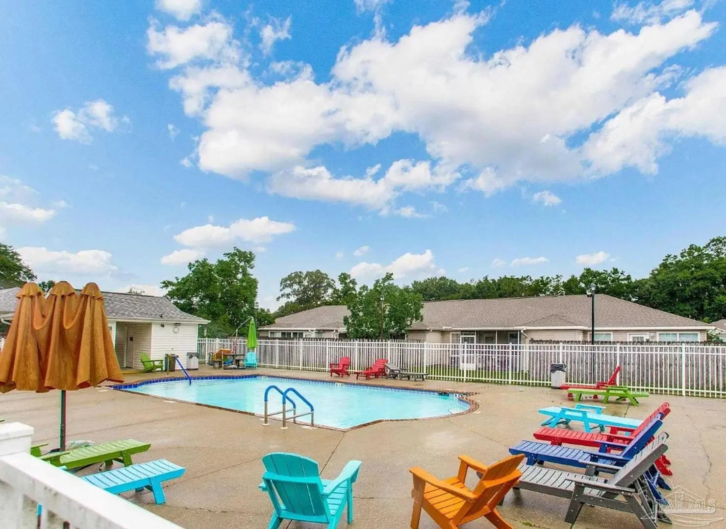 Welcome to this inviting 2 bedroom, 2 bathroom townhome located in the Pine Forest Royale community. Perfectly situated near I-10, Publix, Navy Federal, and local dining, this home offers everyday convenience. Just beyond your back gate, you'll find the community swimming pool, covered pavilion, playground, and plenty of shaded green space perfect for enjoying the outdoors. Step inside to discover a bright, open concept kitchen with stainless steel appliances and a breakfast bar that flows into the spacious dining and living area, accented by cathedral ceilings for an airy, open feel. Brand new granite countertops have just been installed in the kitchen! Off the living room, a cozy sunroom with a storage closet opens to your private fenced backyard, an ideal spot for morning coffee or evening relaxation. The master bedroom features an ensuite bathroom with a vanity, stand up shower and walk in closet. The second bedroom is also a great size and comes with another full bathroom! The laundry room comes furnished with a washer and dryer for added convenience. Tenant responsible for all utilities. This home is pet friendly for 1 small pet 20 lbs. or less. No restricted breeds. Prior approval & nonrefundable pet fee required. Ask us about our military special! This move in ready townhome blends comfort, convenience, and community charm, making it the perfect place to call home!
