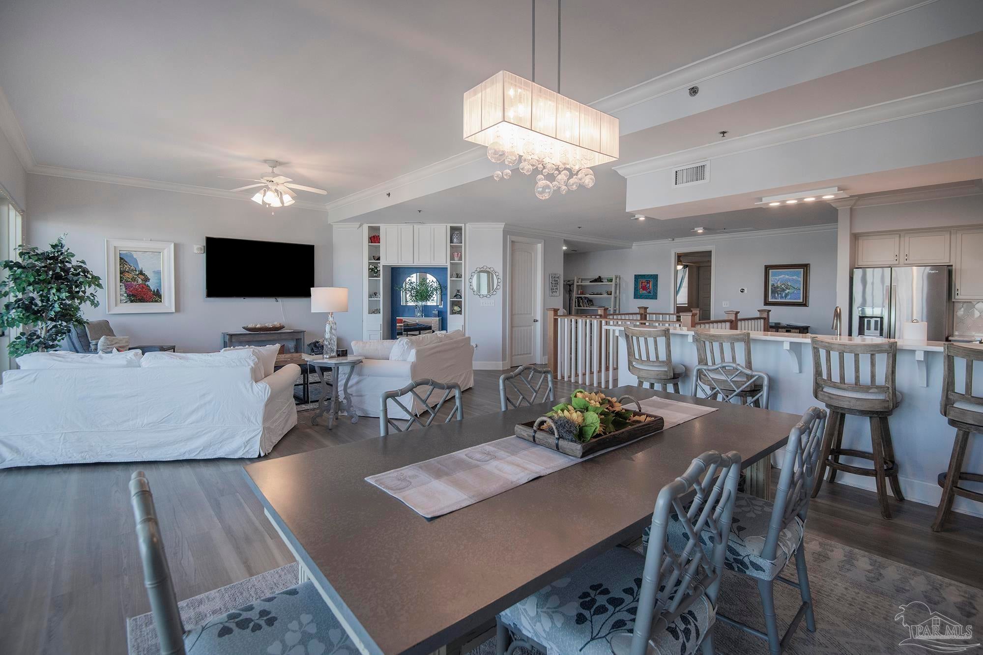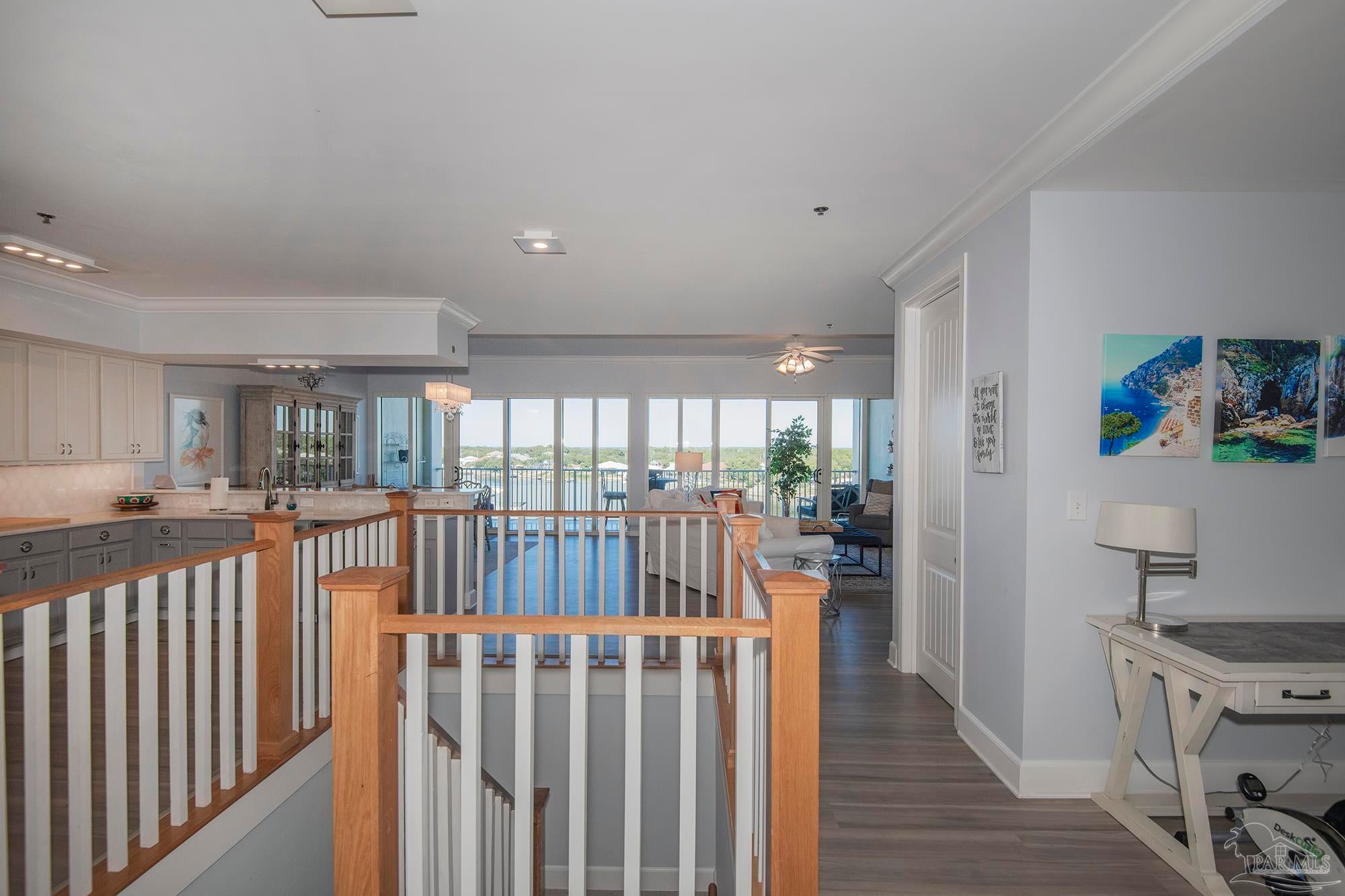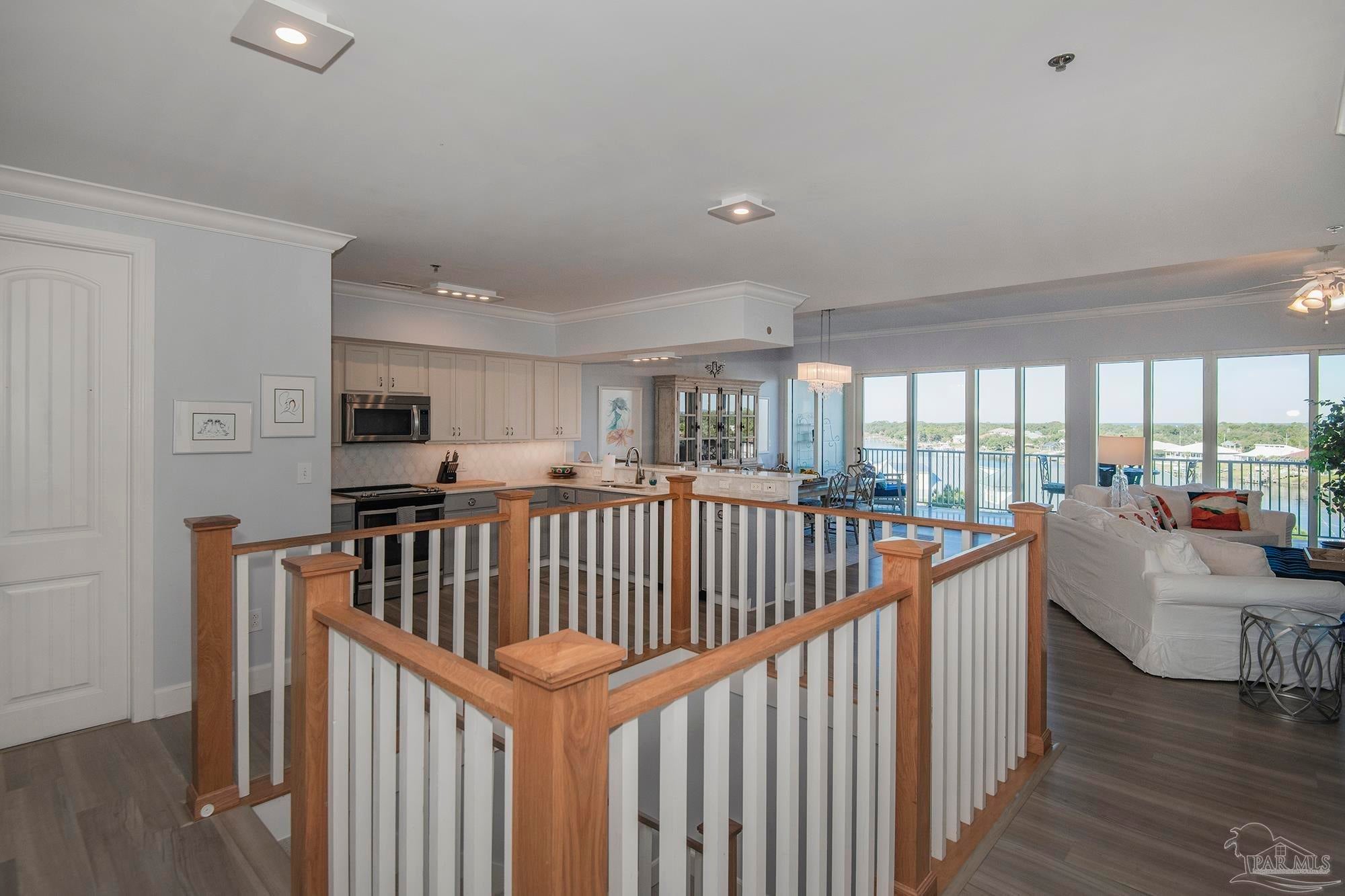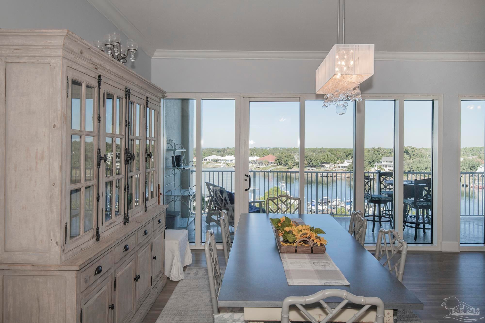 Luxury waterfront living at its best! This spacious two level, 5 bedroom, 5.5 bath condo offers stunning water views of the Intercostal Waterway from both floors. The open floor plan is ideal for entertaining or just everyday living. The spacious great room and dining area feature expansive windows and doors that open to a large north-facing balcony for waterfront views and beautiful sunsets. The chefs kitchen provides abundant workspace, perfect for preparing everyday meals or hosting guests. You will also find a convenient office area for remote working. The main suite is on the upper level with a private entrance to the balcony/porch area on the front/south facing side of the condo. The main suite has multiple closets for storage, a luxury bath with double vanity, shower and whirlpool tub for relaxing. The lower level of the condo has 4 bedroom suites with private baths, two which access the second balcony overlooking the water. The laundry area is located on lower level as well as the foyer entrance to the condo. Both levels feature luxury vinyl plank flooring in living areas, 8 foot doors and wide baseboards. Offered fully furnished all you have to bring are your personal items. The community amenities include a beautiful pool and entertainment area overlooking the water, meeting room, media room with kitchen, fitness center, dock access and beach access. Enjoy everything about this amazing space, sunsets and sunrises from a 3100 square feet residence that could be your primary home, vacation getaway or investment property.