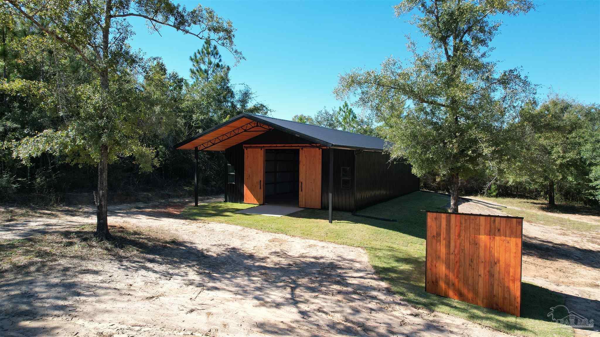 Cleared Acreage with New 30x60 Metal Barn, Power, Well, and RV Hookup — Ready for Your Dream Property! Enjoy the best of country living on this beautifully improved 15.9-acre parcel in Pace — already cleared, prepped, and camper-ready. A brand-new 30’ x 60’ enclosed metal barn with slab foundation, dual overhangs, and plumbing rough-ins provides ideal space for a workshop, storage, or equipment shelter. The property includes a new $14,000 well (installed 2023), power on site, and a 50-amp breaker with rock pad for your RV — everything you need to start enjoying the land immediately. With roughly 1 acre fully cleared and 4 acres selectively thinned, the property offers a great mix of open space and wooded privacy. You’ll also find fruit-bearing plants throughout, including seven varieties of blueberries, muscadines, persimmons, blackberries, and dewberries, along with abundant wildlife that make this a true nature retreat. With no HOA, ample space, and major improvements already in place, this property is perfect for a homestead, mini-farm, or private getaway. Bring your RV and your vision — this unique acreage is ready to enjoy from day one!
