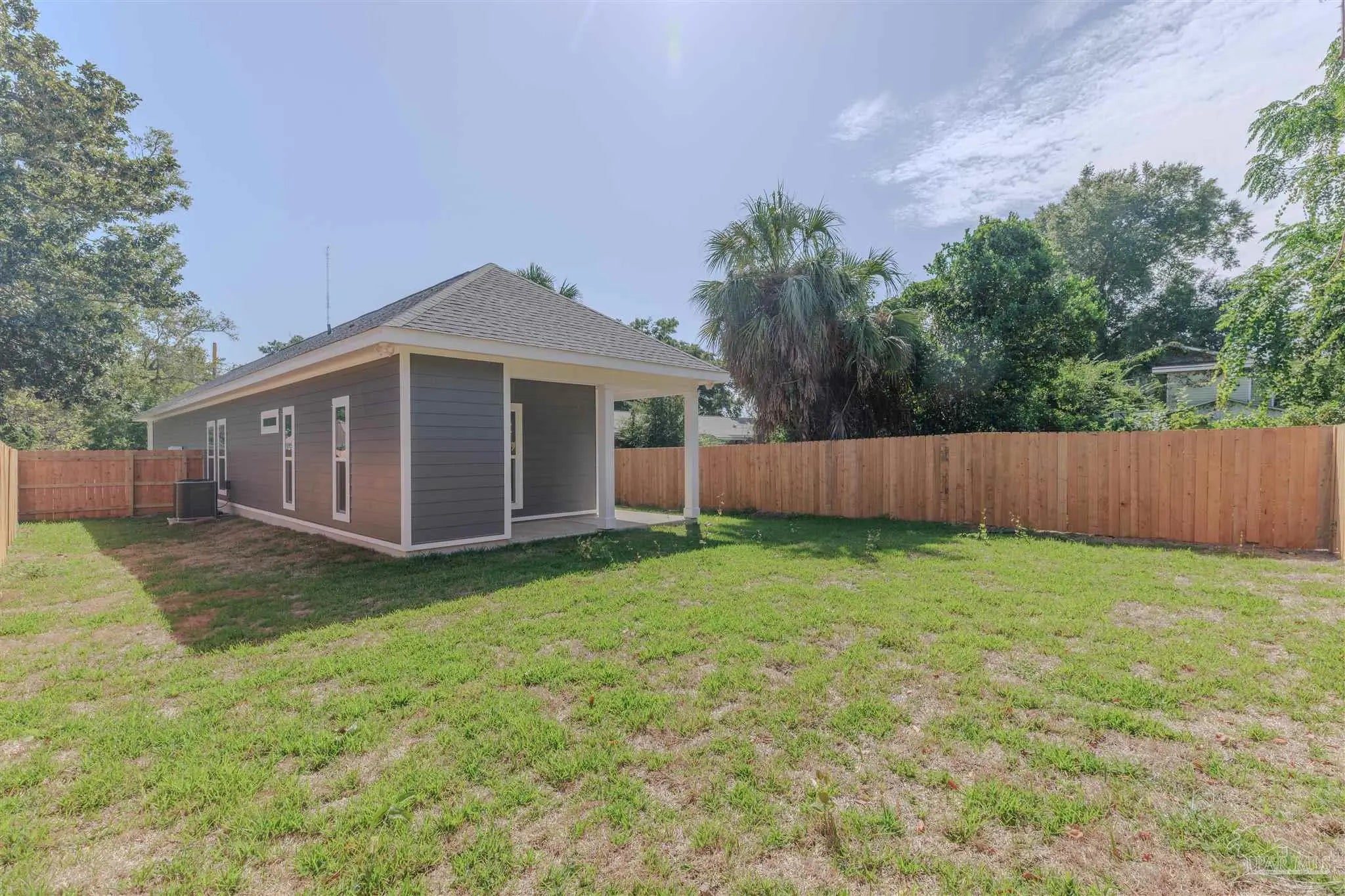 Experience the perfect blend of Southern charm and modern sophistication in this newly constructed Pensacola residence. Nestled just minutes from Downtown Pensacola, this thoughtfully designed 3-bedroom, 2-bath home offers 1,488 square feet of refined living space where every detail exudes quality and comfort. Step inside to discover an open-concept layout enhanced by luxury oversized waterproof LVP flooring that flows seamlessly throughout. The gourmet kitchen is a showpiece—featuring custom wood cabinetry, a center island ideal for entertaining, natural quartz stone countertops, and premium Whirlpool appliances. The owner’s suite is a private retreat, boasting a step-up ceiling design (from 9 to 10 feet), a spa-inspired walk-in shower, and a spacious custom closet. Every finish has been carefully curated to deliver both elegance and durability. Enjoy added touches of convenience and value, including a fully fenced backyard—a rare feature in new construction—and the freedom of no HOA restrictions. This home offers a lifestyle of timeless beauty and effortless sophistication—where Southern grace meets modern living. (Home is under construction, pictures are from identical build, only difference is exterior will be sage green).