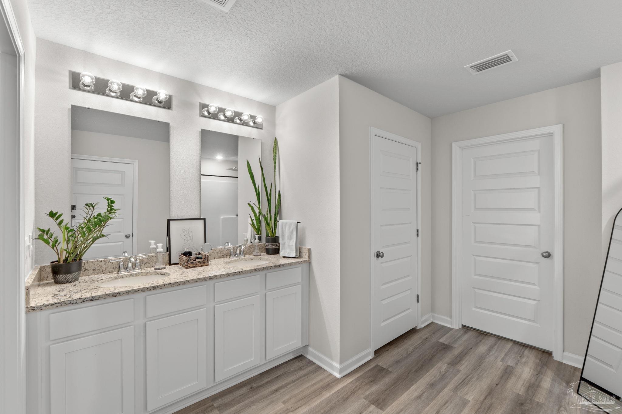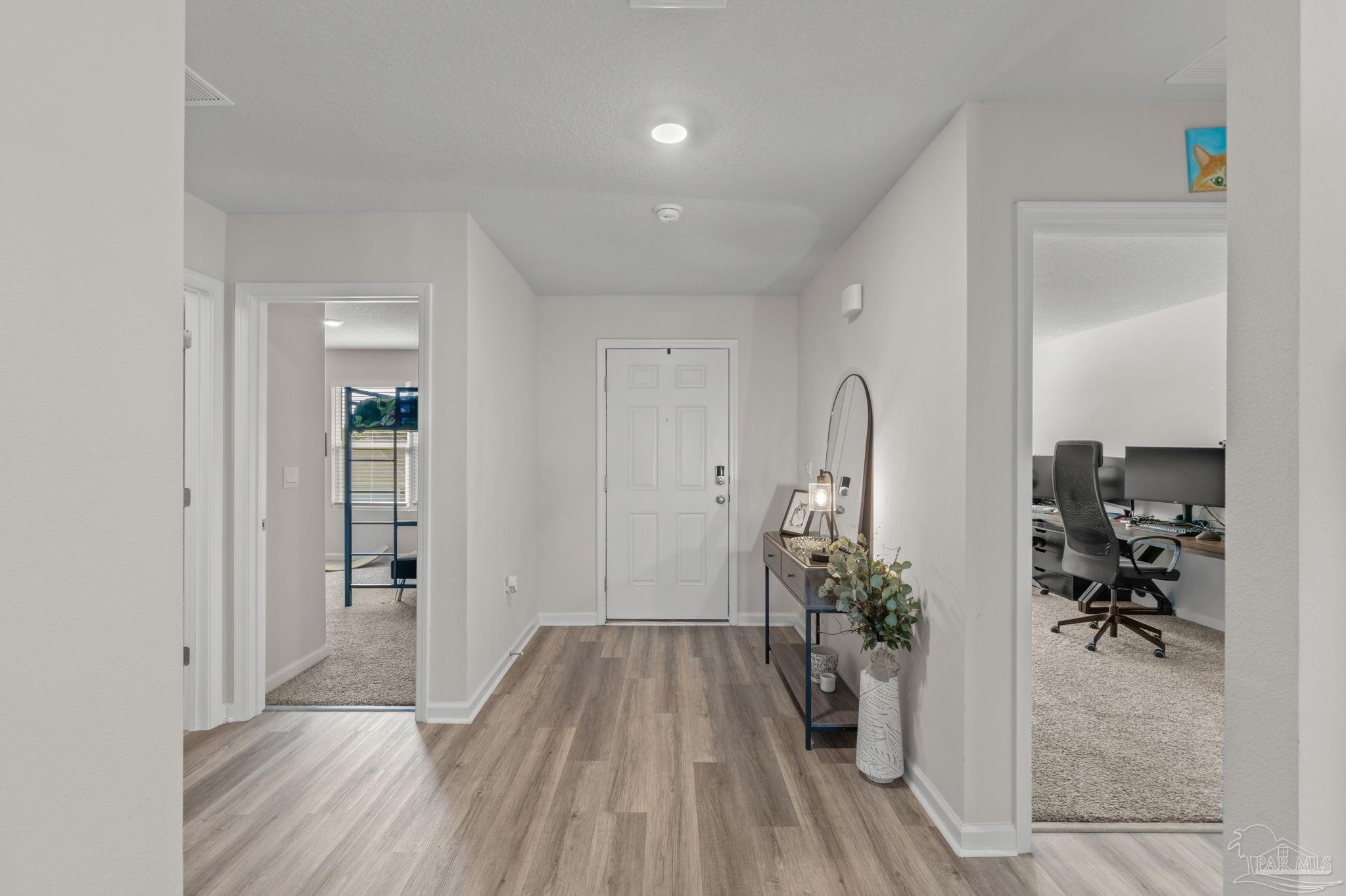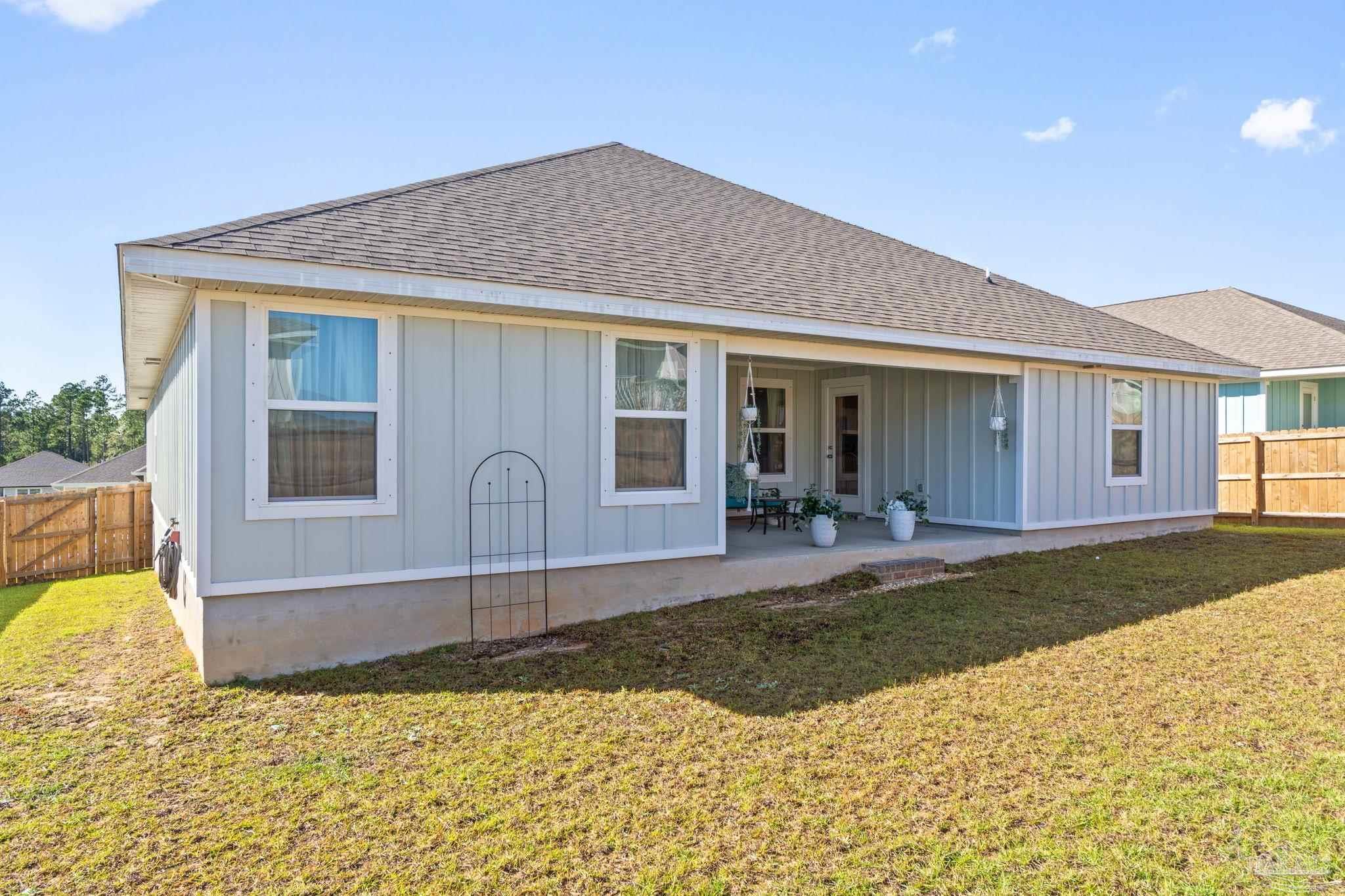 Modern Comfort Meets Everyday Luxury in Deer Run Built in 2023, this 5-bedroom, 3-bath home delivers style, space, and serenity in one of Beulah’s most desirable neighborhoods. From the moment you step inside, you’ll notice the bright, open layout and seamless flow between the living, dining, and kitchen areas, perfect for gatherings of any size. The kitchen is a true centerpiece with white shaker cabinetry, granite countertops, stainless-steel appliances, a large island bar, and a walk-in pantry. The split floor plan provides privacy for the spacious primary suite, featuring two generous walk-in closets and a spa-like bath with dual vanities and a glass-enclosed shower. Every detail feels elevated - from the luxury vinyl plank flooring and natural light throughout to the dream laundry room and smart-home features that add convenience and peace of mind. Outside, enjoy a covered back patio overlooking a large fenced yard, ideal for relaxing or entertaining. Located in the sought-after Deer Run community, you’ll have access to a neighborhood pool and clubhouse, with quick access to I-10, shopping, and the beaches beyond. Schedule your private showing today!