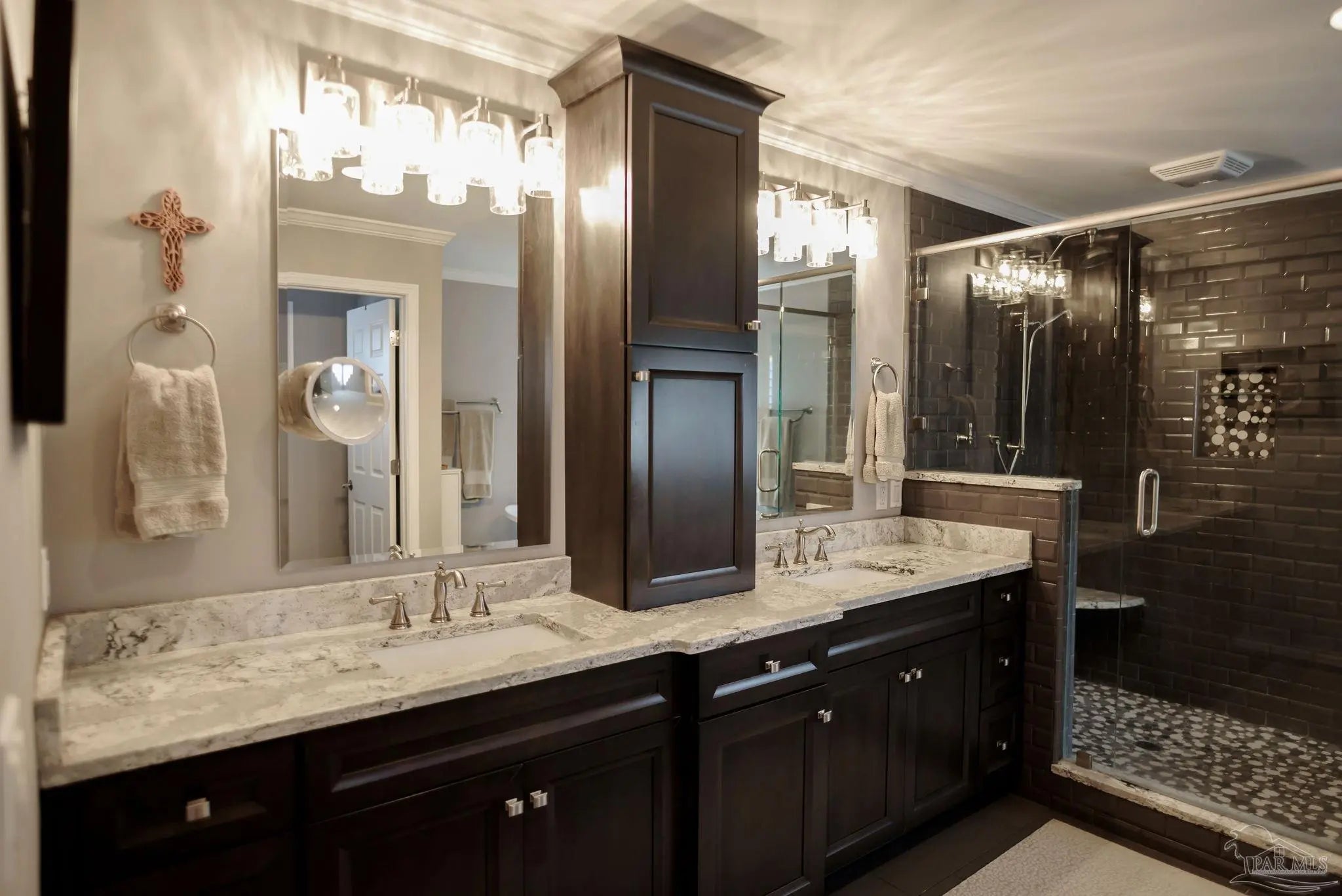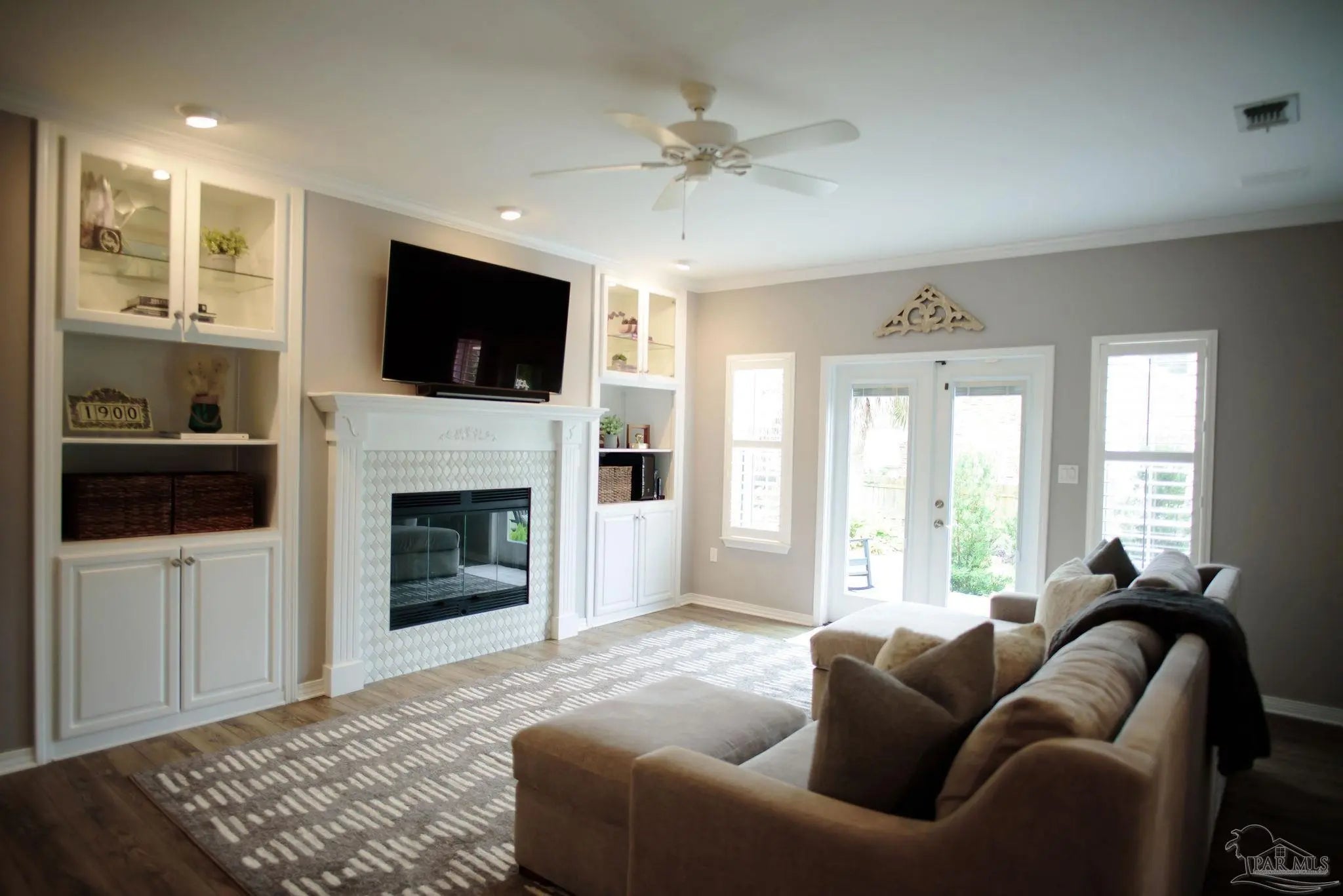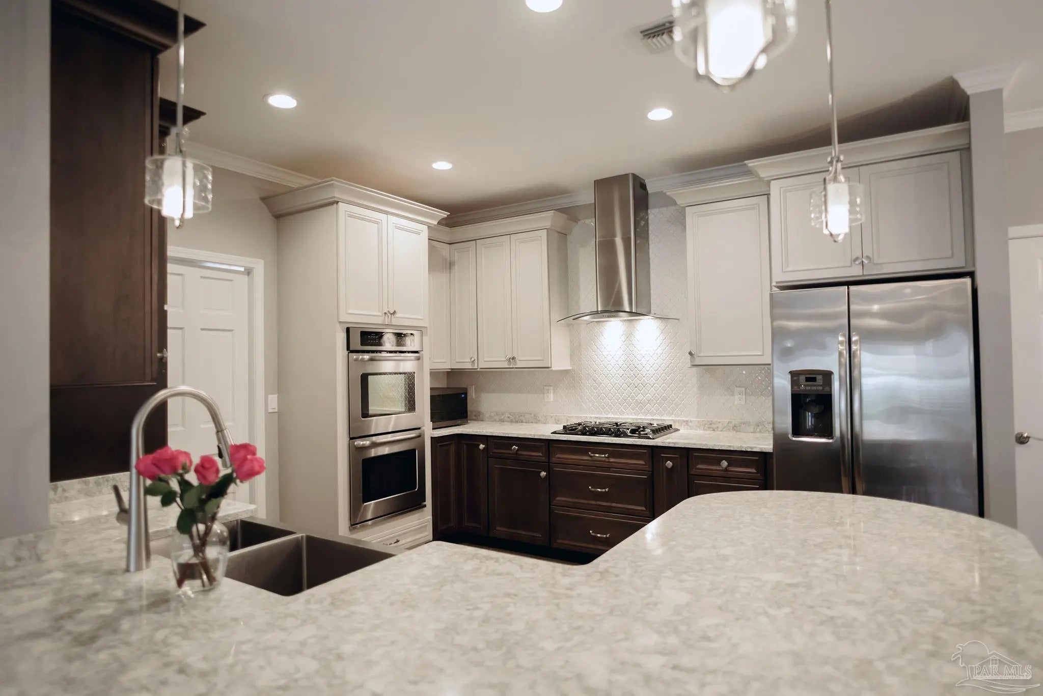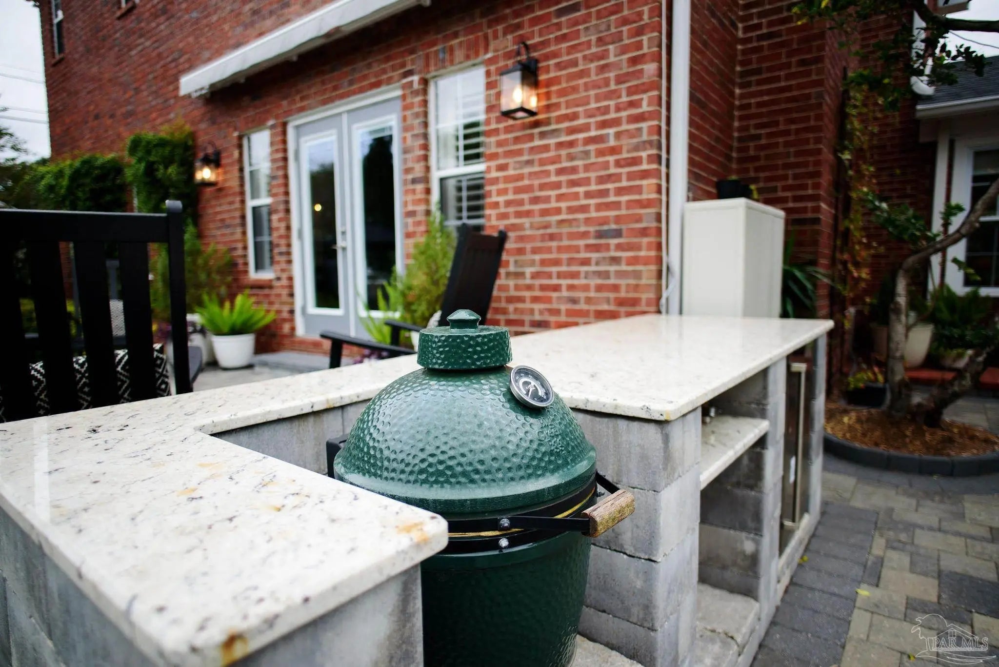 Welcome to this beautifully updated 4-bedroom, 3.5-bath home in the heart of East Hill, offering 3,380 sq. ft. of refined living space. Every detail has been thoughtfully renovated — including a brand-new roof and siding (Oct 2025) and a professionally designed backyard hardscape (2023). Step into the bright, open-concept kitchen featuring Cambria Quartz countertops, a gas cooktop, and sleek stainless-steel appliances. Just off the kitchen, a spacious dining room awaits — complete with a newly added dry bar (March 2025), perfect for entertaining. The kitchen flows seamlessly into a large family room with custom-built-ins and a striking fireplace, ideal for gatherings or quiet evenings in. Adjacent to the living room, a separate room currently serves as a generous home office, offering privacy and flexibility for remote work or creative pursuits. Upstairs, you'll find three spacious bedrooms plus a versatile bonus/media room that easily serves as a fourth bedroom. The luxurious primary suite includes a spa-like bathroom with a soaking tub, walk-in shower (tankless water heater added 2023) and dual quartz vanities. Enjoy year-round comfort in the charming brick sunroom — fully heated/air-conditioned (April 2025) and filled with natural light. Outside, the backyard is an entertainer’s dream: complete with an outdoor kitchen, hot tub, and gas fireplace. The yard is RV-ready with a 30-amp hookup and can be converted into a pool oasis if desired. Nestled in a warm, family-friendly neighborhood, this East Hill gem offers unbeatable access to the best of Pensacola. Take a leisurely stroll to Bayside Park or hop on your bike for a quick ride to downtown’s vibrant restaurants, breweries, and shops. With its perfect blend of elegance, comfort, and convenience, this home puts coastal living right at your doorstep. All that’s left to do is move in and start living your best life!