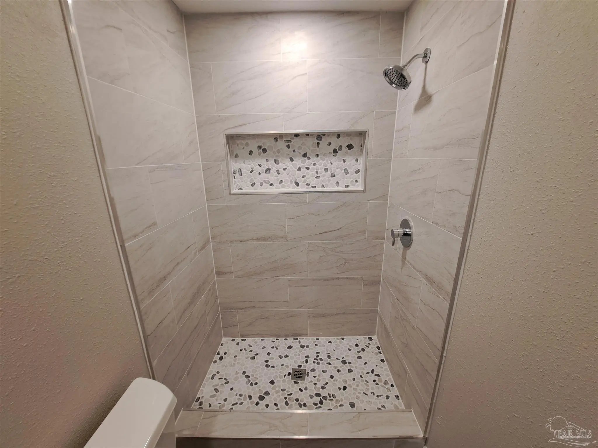 Introducing a beautifully renovated 3BR/2BA mobile home in Southwest Pensacola. This charming home offers a spacious kitchen with a breakfast bar, tiled backsplash, and a separate dining room—perfect for entertaining guests. The split-bedroom floor plan provides privacy, and the indoor laundry area with washer/dryer hookups adds convenience. The master bathroom features an oversized custom shower/tub combo, while the guest bathroom offers a custom walk-in shower. Additional highlights include recessed lighting, central heat and air, and ceiling fans throughout. Step outside to relax on the covered front deck or open back patio. Community amenities include a pool, dock, boat ramp, and storage area for large vehicles or boats. Pets may be considered with owner approval and a $325 non-refundable pet fee per pet (limit 1). Roommates, if accepted, must qualify individually.