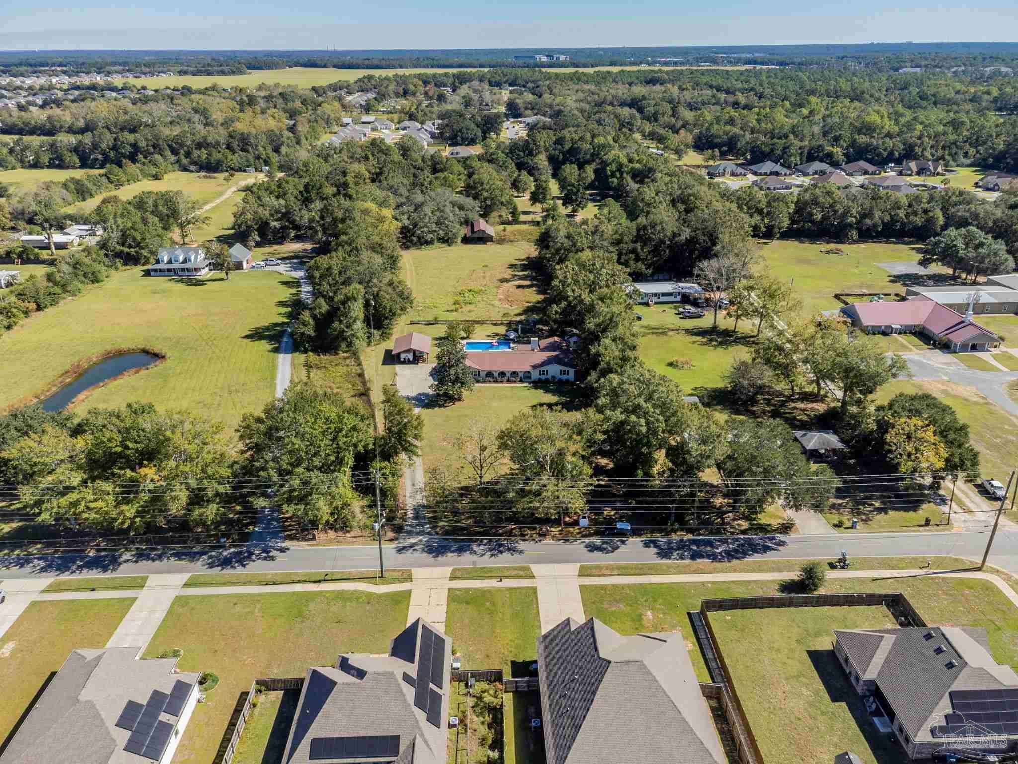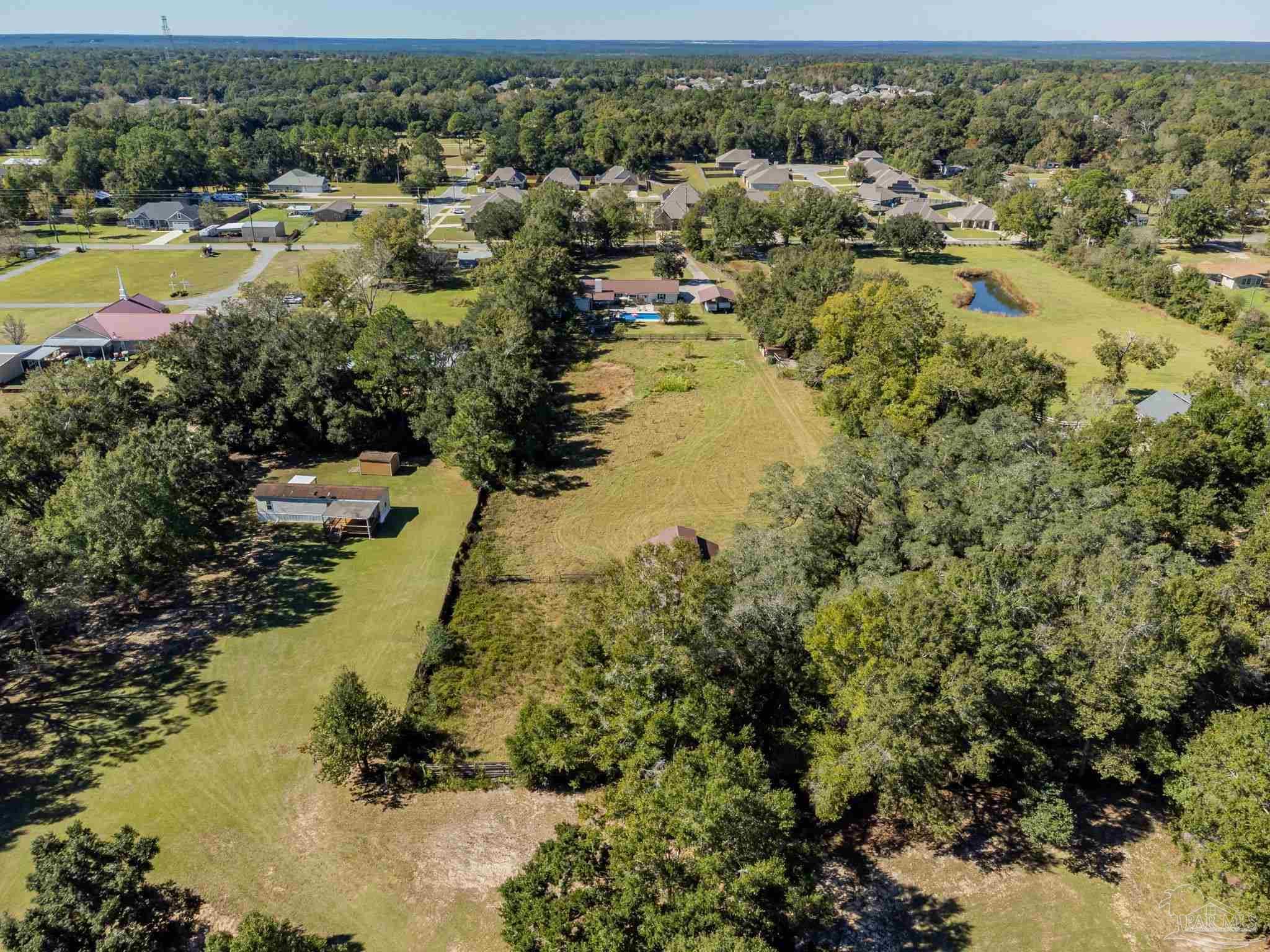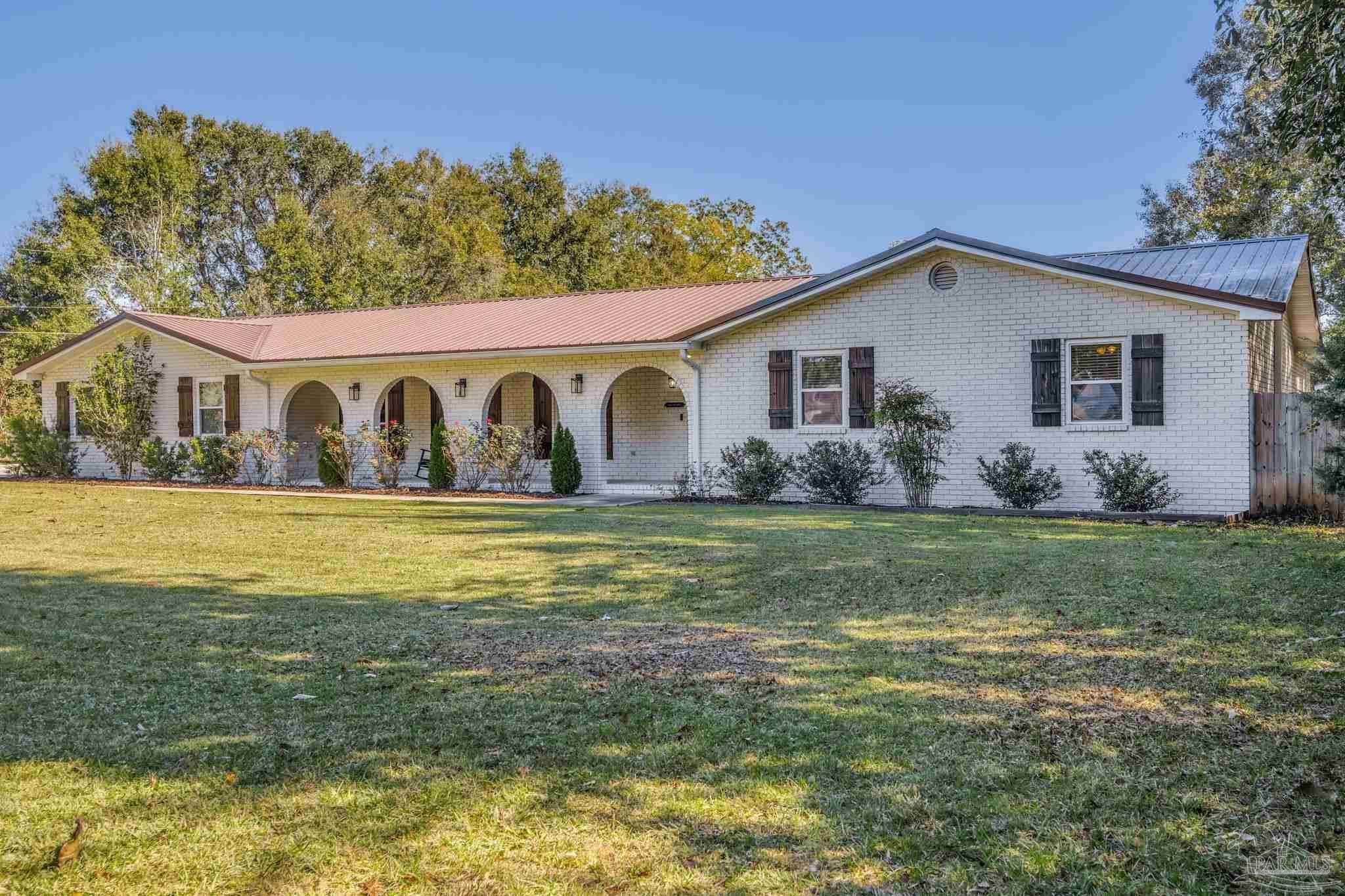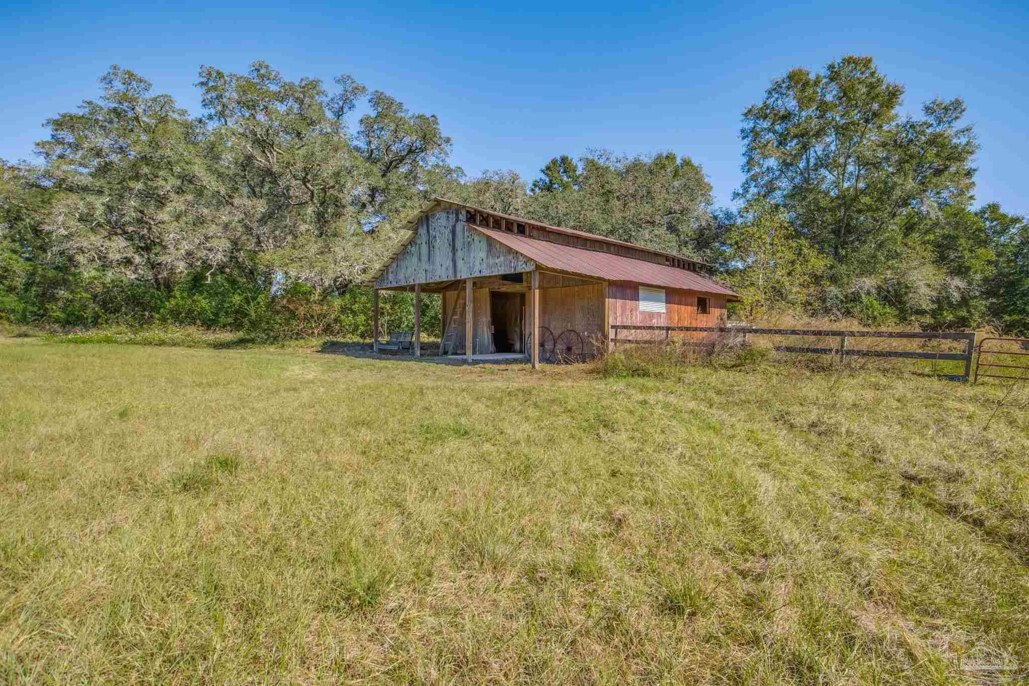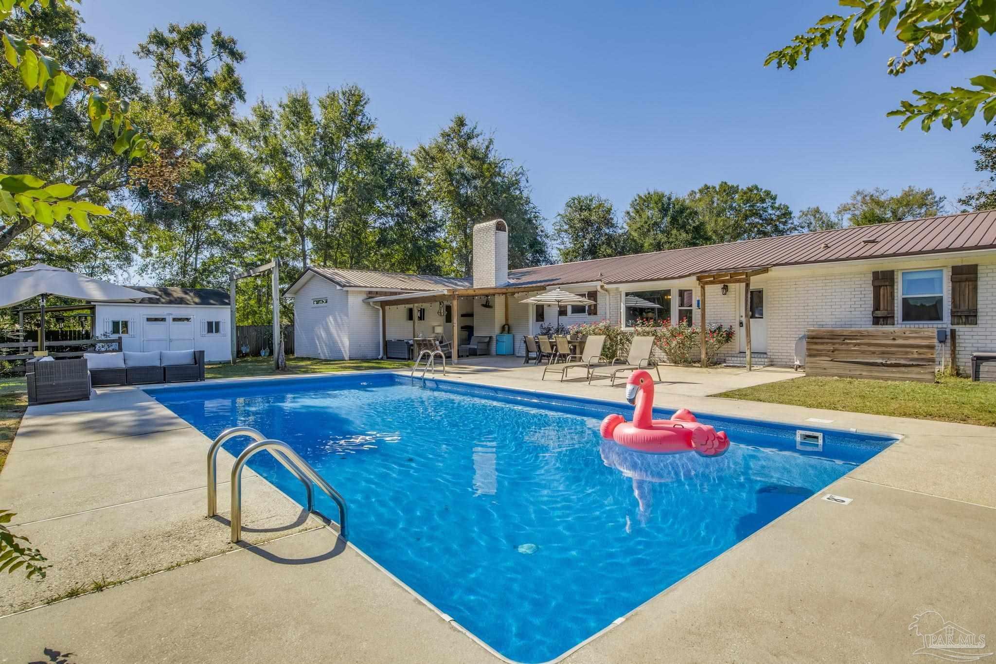 This 4-bedroom, 3-bath home is GORGEOUS and sits behind a private gate on 3.2 fully fenced acres. Enjoy peace, privacy, and country living just minutes from town. Updated with a new metal roof (2021), granite countertops, and both wood and electric fireplaces, this home blends comfort and charm. The primary suite features three walk-in closets, and the kitchen offers two pantries for extra storage. Outside is an entertainer’s dream with a new pool liner (2024), Bluetooth outdoor stereo, and plenty of space for gatherings. You’ll also find a two-car garage, three outbuildings, a pole barn, and a three-stall horse barn with a heated and cooled tack room. The land is stunning, with three fenced pastures, a large chicken coop, blueberry and blackberry bushes, rose gardens, pecan trees, and a meadow of wildflowers in spring. Enjoy sunrises over the pasture, fresh eggs daily, and visits from deer, hawks, and owls. Located in an A-rated school zone, just minutes from Navy Federal, the boat launch, and 30 minutes to Gulf Shores or Pensacola Beach. Complete with a Blink security system, this peaceful retreat has everything you could want for country living close to the coast.