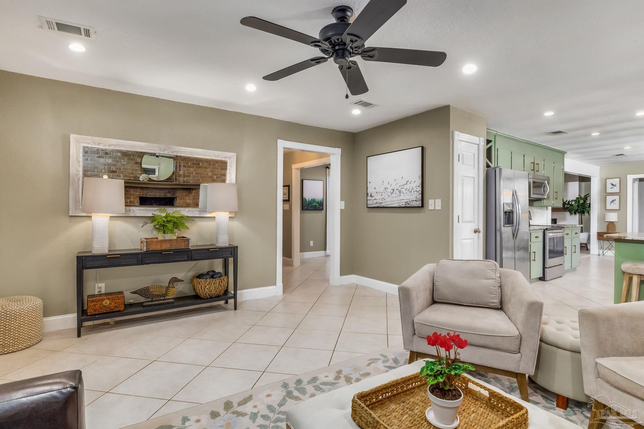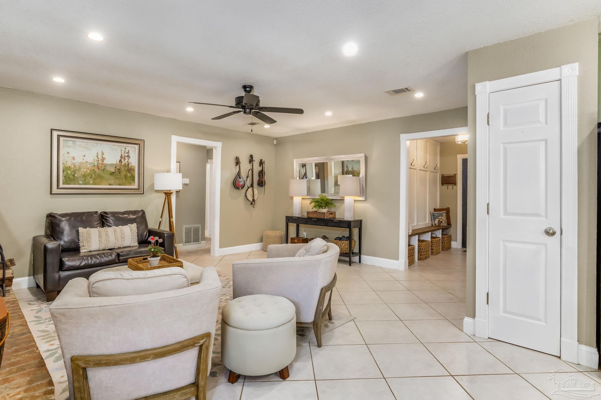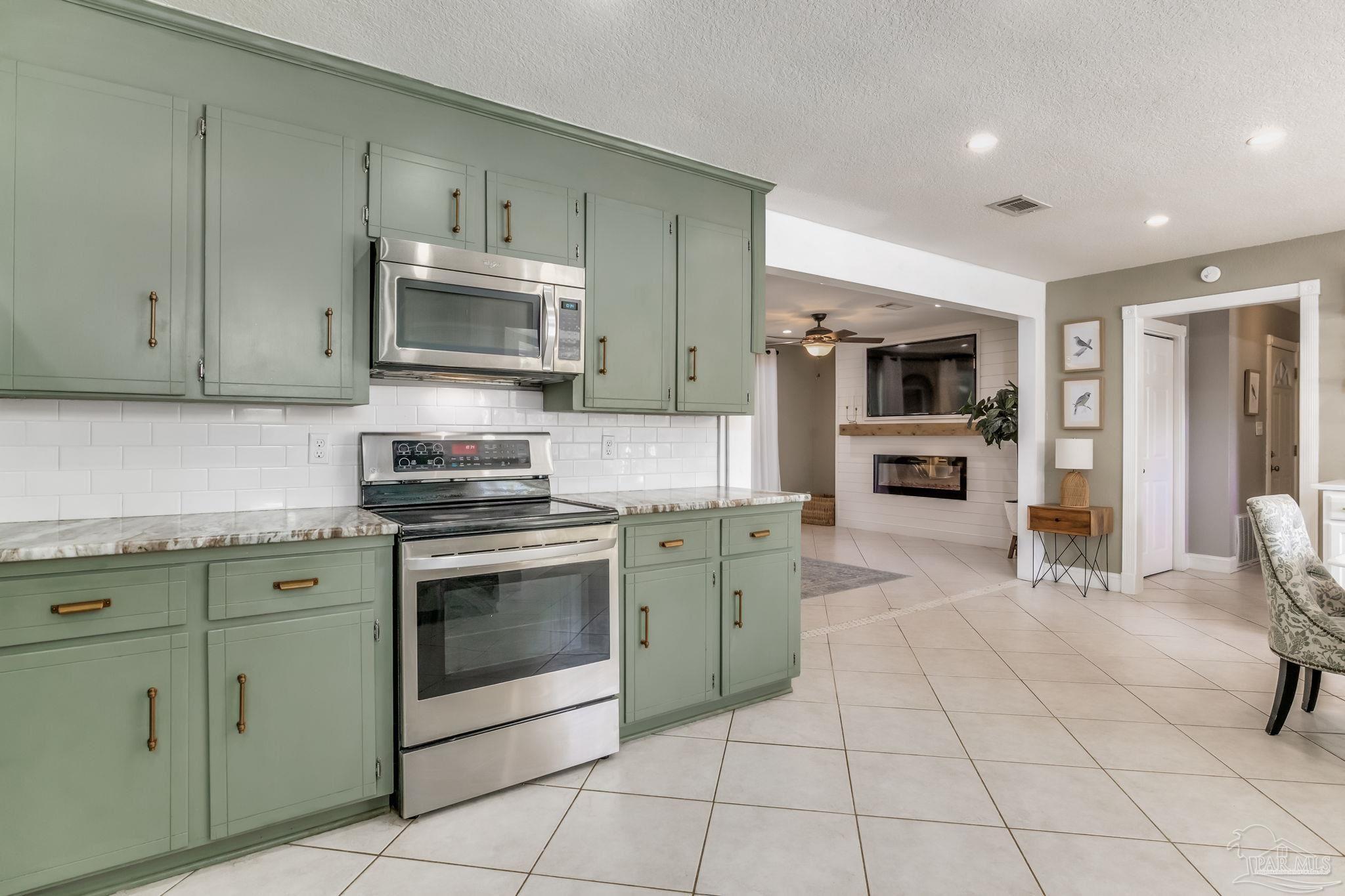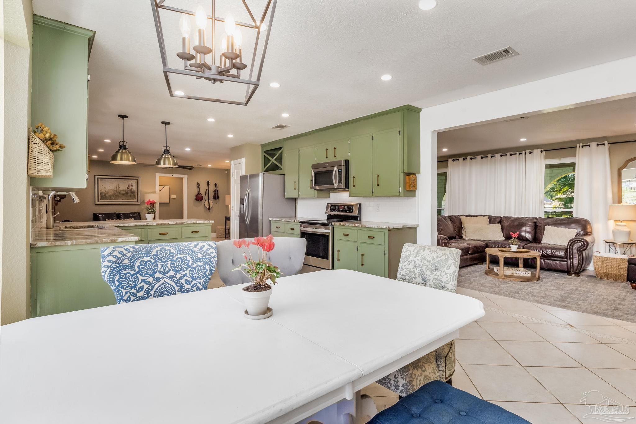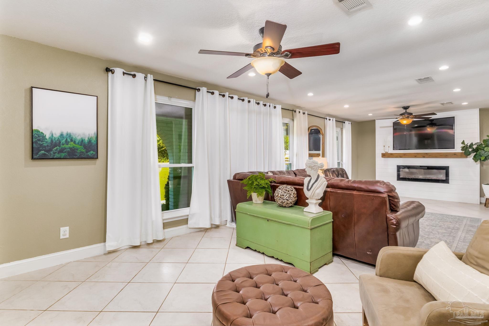 This 4-bedroom, 3-bath home is GORGEOUS and sits behind a private gate on 3.2 fully fenced acres. Enjoy peace, privacy, and country living just minutes from town. Updated with a new metal roof (2021), granite countertops, and both wood and electric fireplaces, this home blends comfort and charm. The primary suite features three walk-in closets, and the kitchen offers two pantries for extra storage. Outside is an entertainer’s dream with a new pool liner (2024), Bluetooth outdoor stereo, and plenty of space for gatherings. You’ll also find a two-car garage, three outbuildings, a pole barn, and a three-stall horse barn with a heated and cooled tack room. The land is stunning, with three fenced pastures, a large chicken coop, blueberry and blackberry bushes, rose gardens, pecan trees, and a meadow of wildflowers in spring. Enjoy sunrises over the pasture, fresh eggs daily, and visits from deer, hawks, and owls. Located in an A-rated school zone, just minutes from Navy Federal, the boat launch, and 30 minutes to Gulf Shores or Pensacola Beach. Complete with a Blink security system, this peaceful retreat has everything you could want for country living close to the coast.