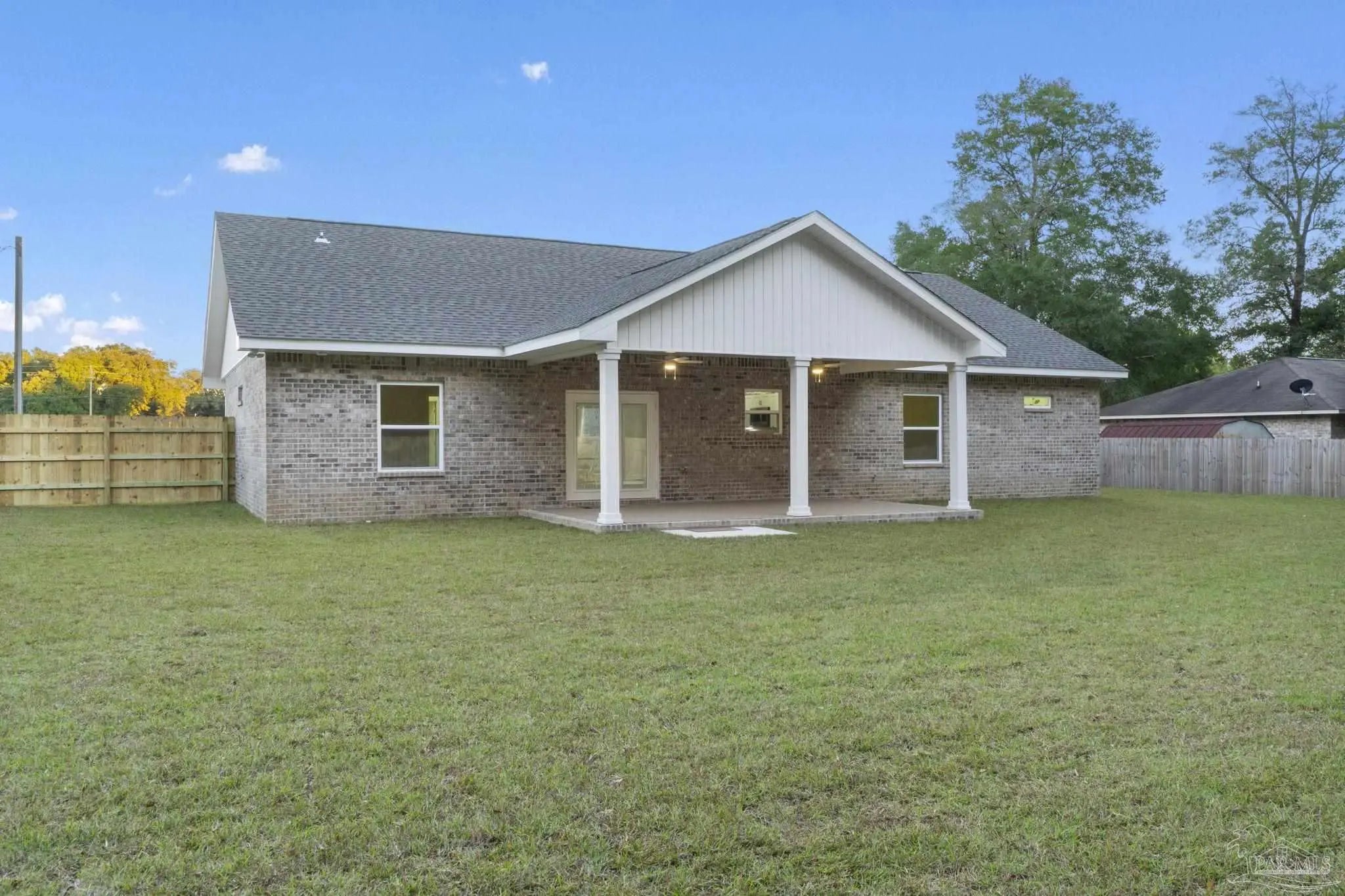 Welcome to this beautifully designed new construction brick home located in the heart of Milton. This 3-bedroom, 2-bathroom residence combines modern aesthetics with practical living spaces, making it a perfect fit for families or individuals seeking comfort in a serene environment. As you approach the property, you will appreciate the stylish brick exterior and inviting curb appeal. The home features an attached two-car garage, which is equipped with pull-down stairs leading to a spacious attic. This attic, complete with a ceiling fan, offers potential for conversion into a bonus room, enhancing the usable space of the home. Upon entering, you will be greeted by a thoughtfully designed split floor plan. The main bedroom suite boasts an ensuite bathroom that is a true retreat. Enjoy the luxury of a double vanity, complemented by elegant granite countertops, a separate shower, and a relaxing garden tub. A walk-in closet and a water closet provide ideal privacy and storage. The living area is accentuated by vaulted ceilings with decorative beams, contributing to a sense of spaciousness. Throughout the home, wood-look LVP flooring adds warmth and durability, seamlessly connecting the various living spaces. The kitchen is a stand-out feature, showcasing ample soft close cabinetry and modern appliances. Its open-concept design flows into a dining area, ideal for gatherings or quiet meals. Large windows illuminate the interior, allowing natural light to enhance the welcoming atmosphere. Stepping outside, the back covered patio features a ceiling fan for comfort during outdoor relaxation, while the generous yard space offers possibilities for landscaping, gardening, or play areas. This property exemplifies quality craftsmanship and modern living, making it a must-see for anyone seeking a new home in an sought-after location.