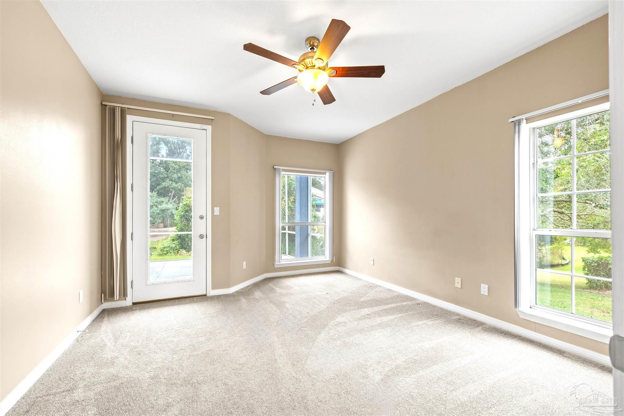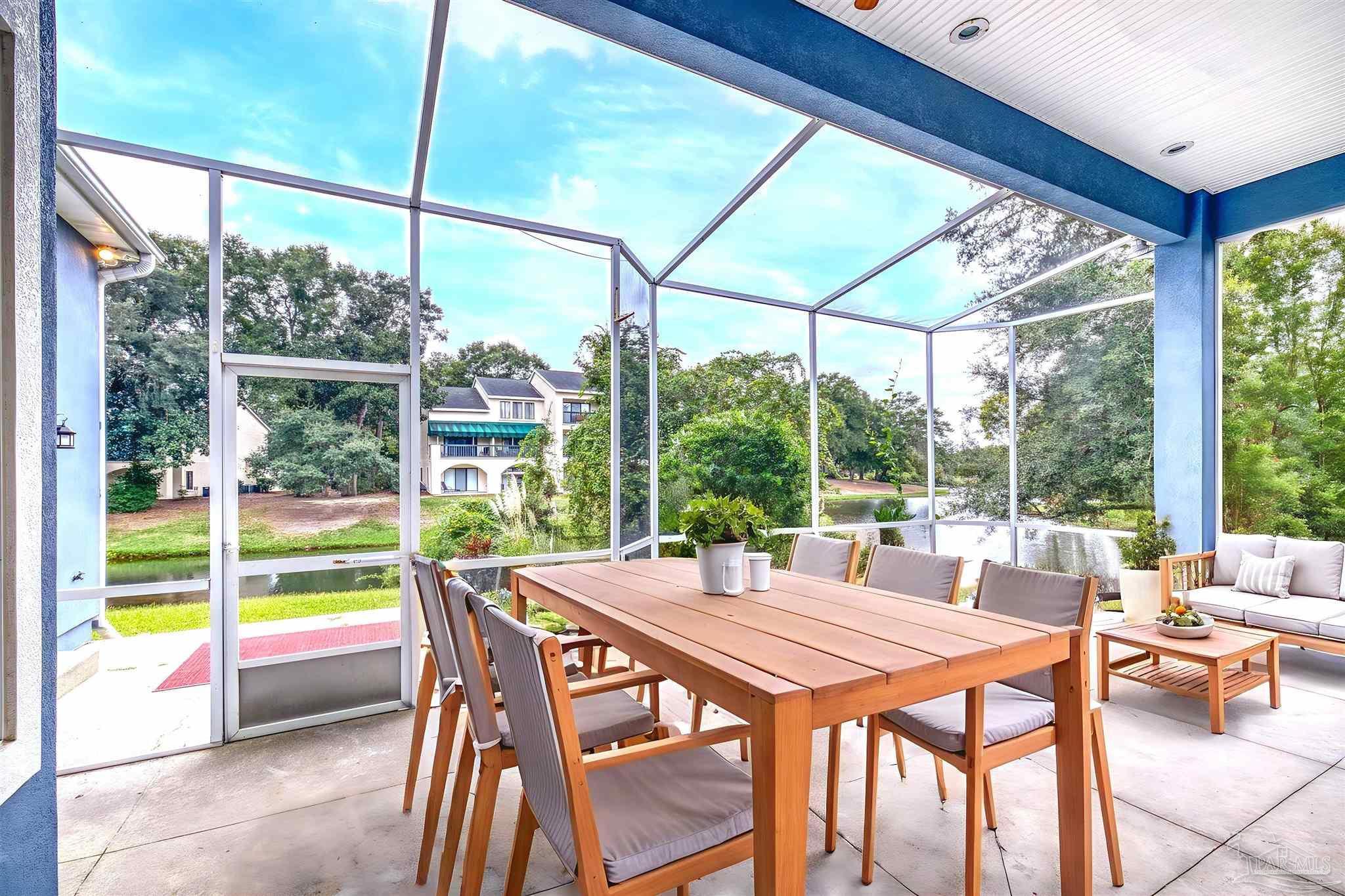 Where the tranquility of the water meets the refinement of resort living— welcome to 4314 Hidden Lakes Drive in the heart of Bluewater Bay. Gracing approximately 74 feet of private lake frontage, this three-bedroom, two-and-a-half-bath residence is perfectly poised along the shimmering waters of Hidden Lakes within a coveted golf and marina community, capturing the essence of the Emerald Coast lifestyle—graceful, relaxed, and effortlessly connected to nature. Residents of Hidden Lakes enjoy access to the championship golf course, tennis facilities, a full-service marina, and miles of walking and biking paths, all surrounded by the quiet beauty of mature trees and sparkling water views. Architecturally designed and built with quality 2×6 framing, this contemporary home pairs architectural integrity with everyday comfort. Inside, soaring 15-foot ceilings, expansive picture windows, and open living spaces invite natural light and frame panoramic lake vistas. A gas fireplace warms both gathering rooms, creating an inviting flow for entertaining or quiet evenings at home. The primary suite serves as a sanctuary with two walk-in closets, a spa-style bath featuring a soaking tub and separate shower, and a private steam sauna—a perfect finish to days spent on the course or the water. Additional highlights include generous storage above the garage, versatile living areas, and the opportunity to personalize this residence to your vision. The home’s covered and screened lanai extends the living space outdoors, offering a tranquil setting for entertaining. Overlooking the peaceful lake, it’s the perfect place to enjoy morning coffee, evening conversations, or sunset reflections surrounded by gentle breezes and shimmering water views. Set within one of Niceville’s most desirable enclaves, this home offers a lifestyle that feels both private and connected—a serene lakefront retreat where every day begins and ends with a view worth pausing for. New roof plus other updates